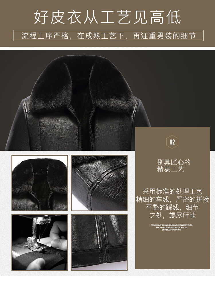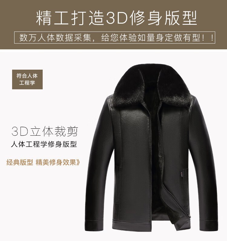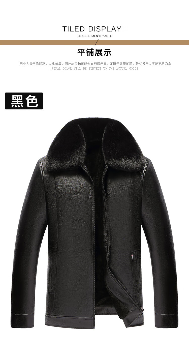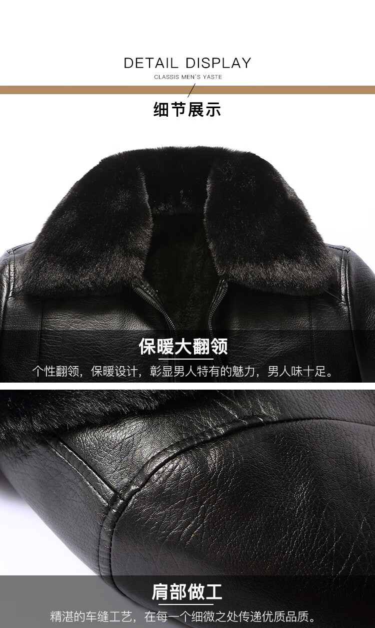 Source Factory Jacket Plus Velvet Thickened PU Leather Jacket CSqy Push Plus Velvet Collar Motorcycle Leather Jacket jd Black Fur Collar XL 54 Recommended 120-140Jin Jin is equal to 0.5 kg
