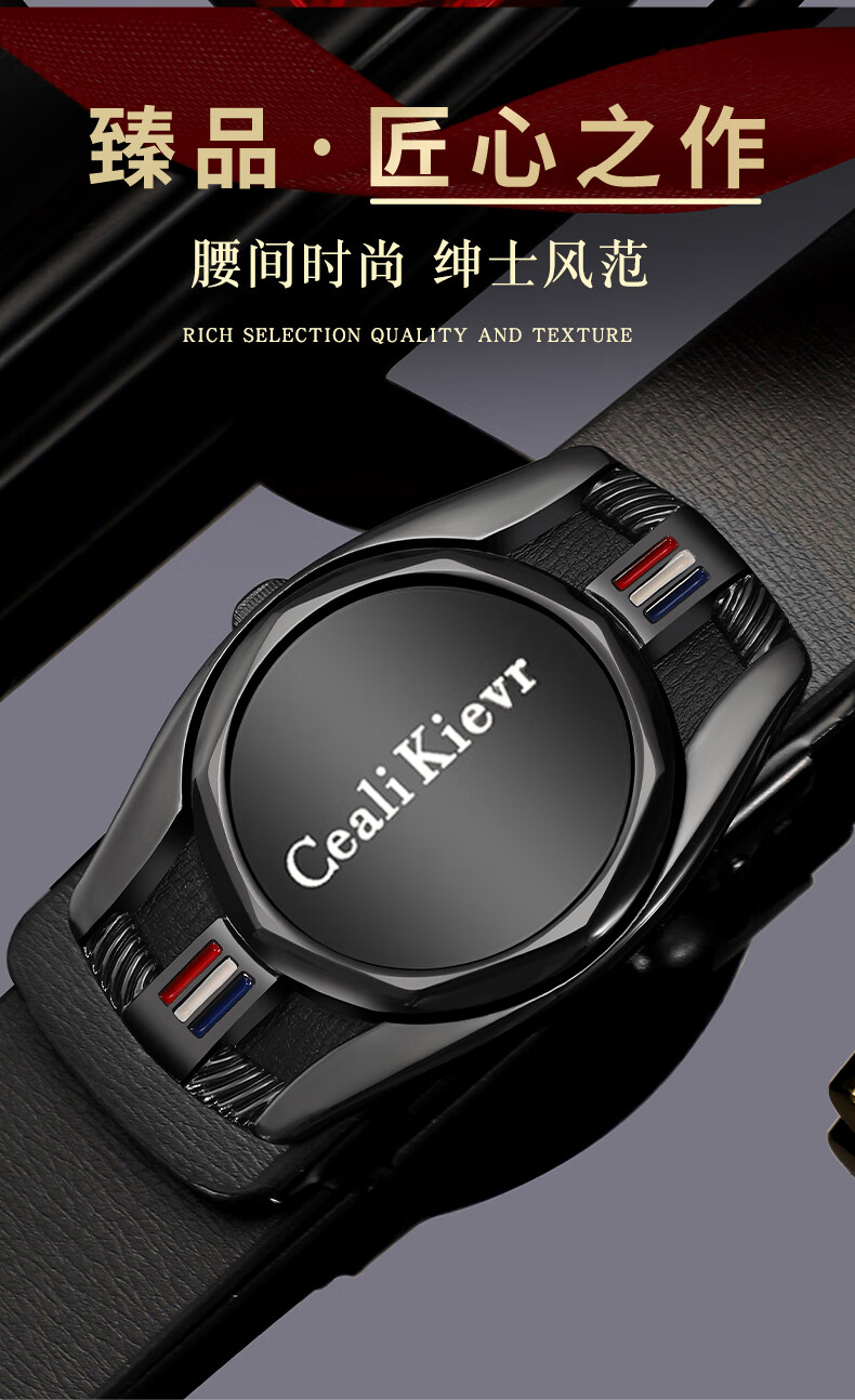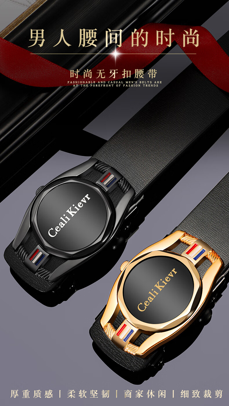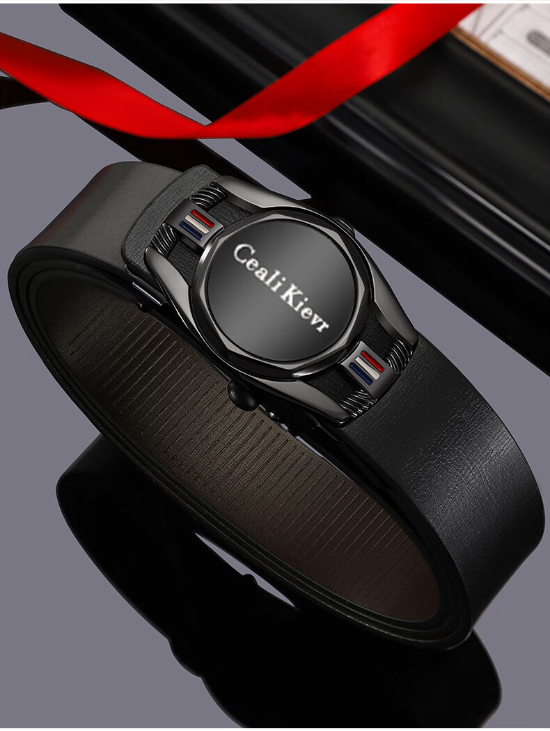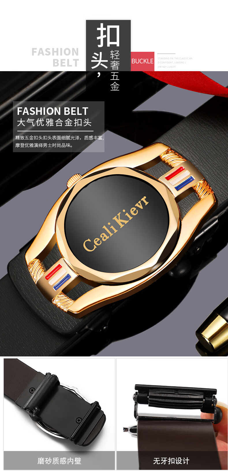 Men's fashion belt automatic buckle belt watch buckle toothless inner wear full card slot young people business trend versatile Ceali Kievr gun color buckle 120cm full card slot adjustable