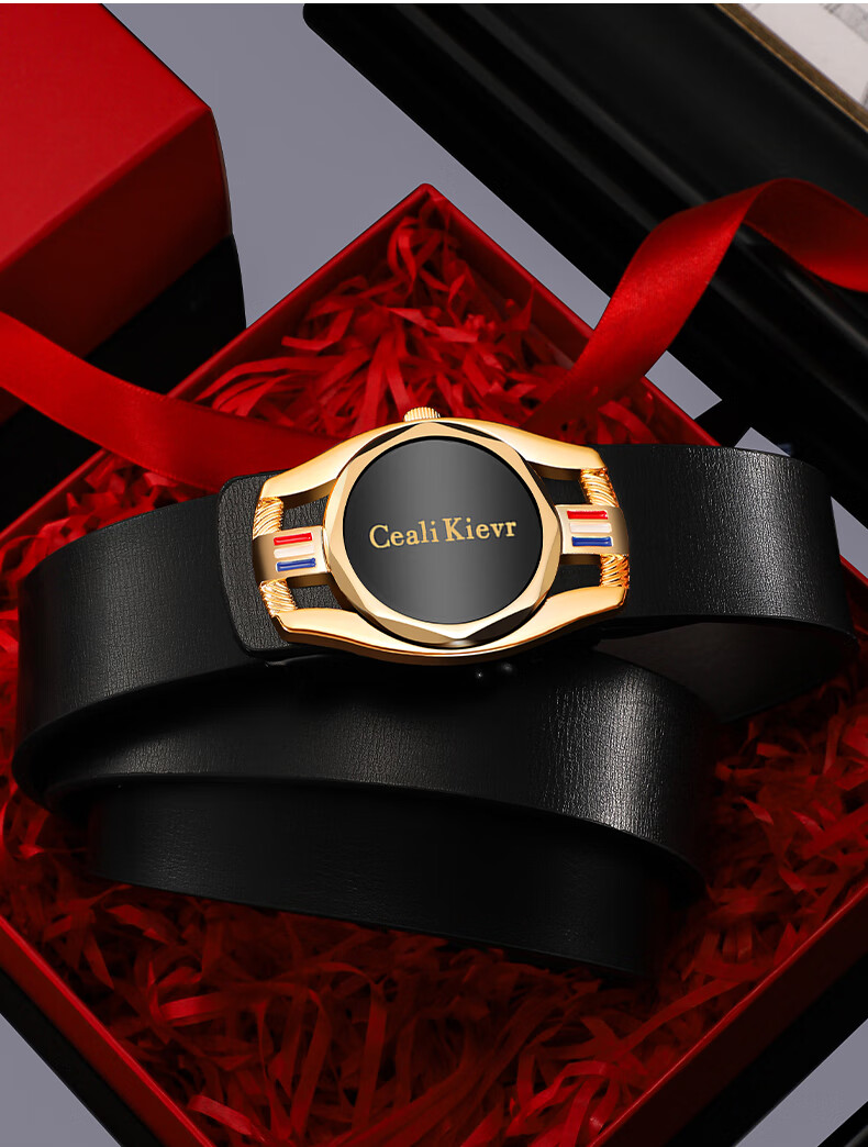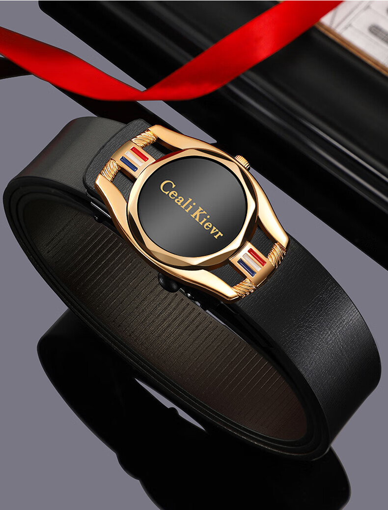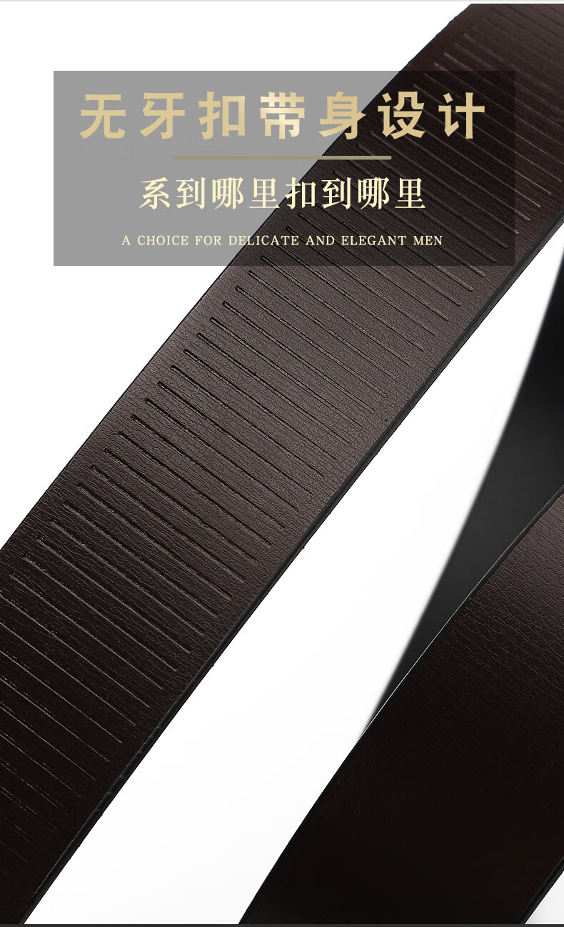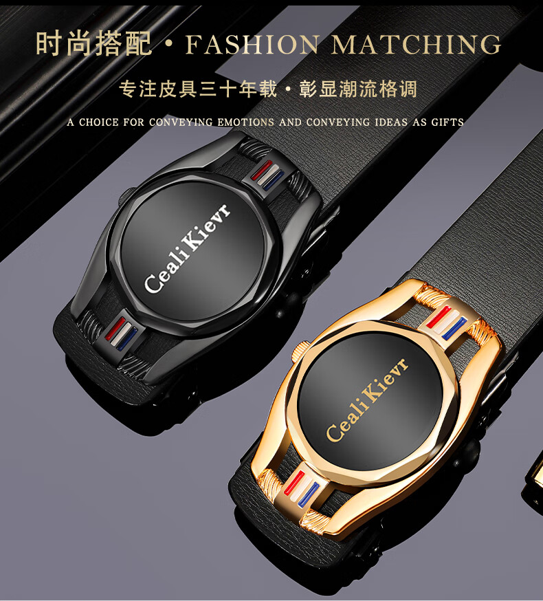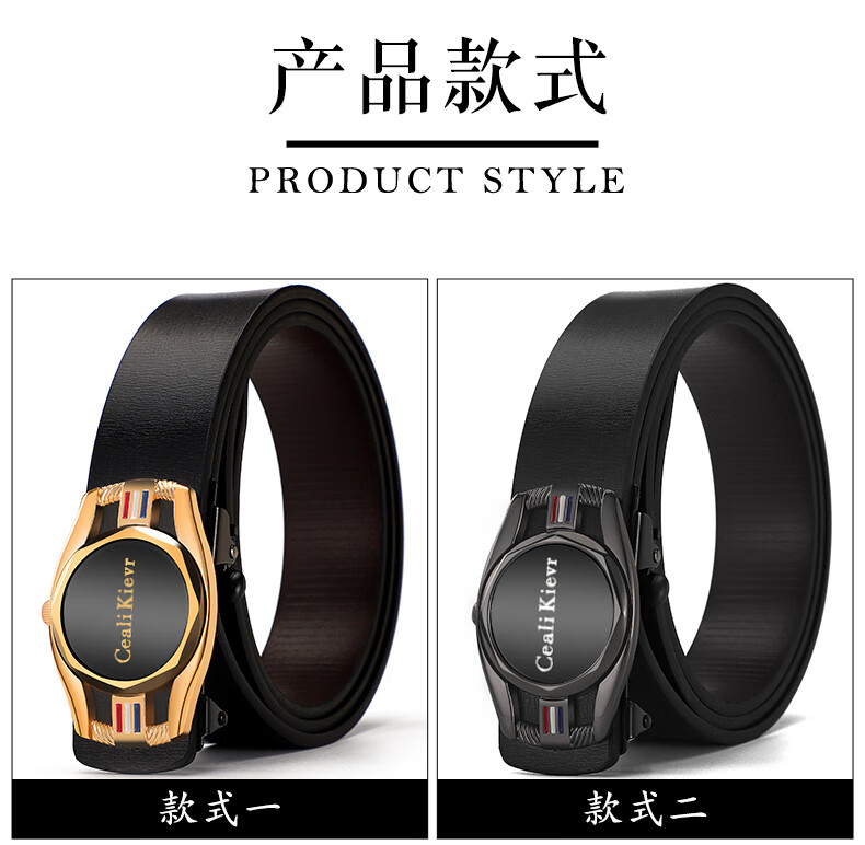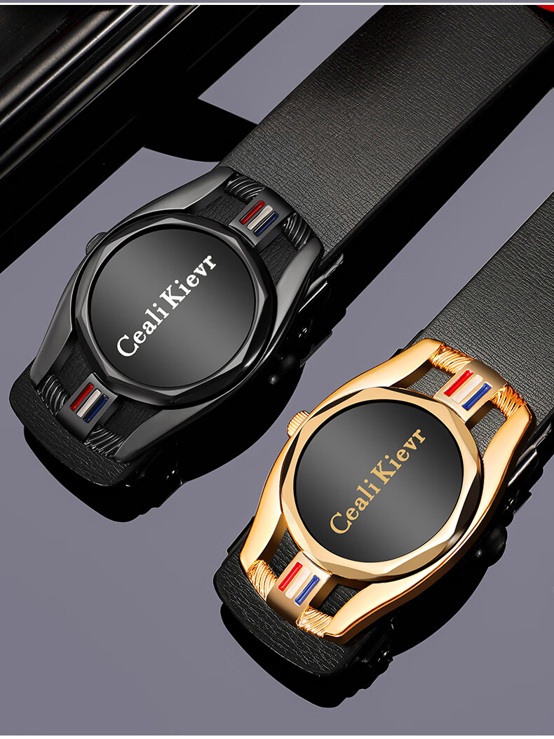 Men's fashion belt automatic buckle belt watch buckle toothless inner wear full card slot young people business trend versatile Ceali Kievr gun color buckle 120cm full card slot adjustable