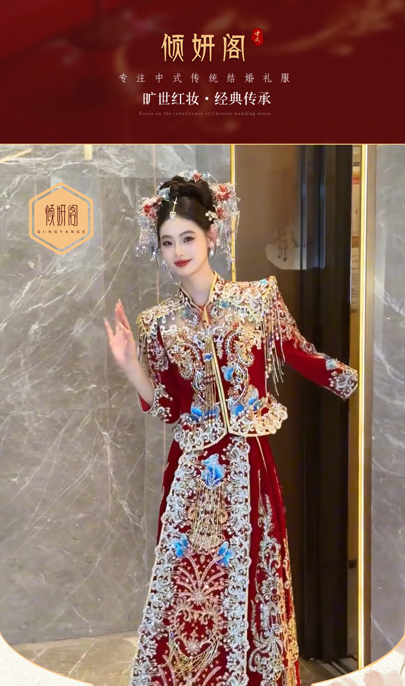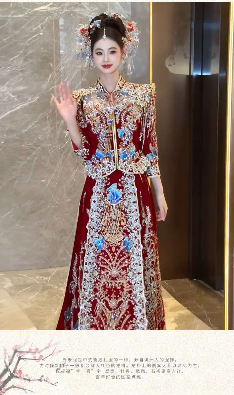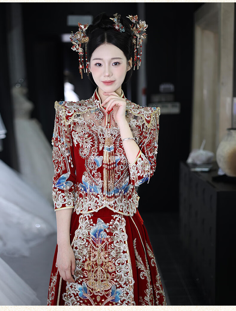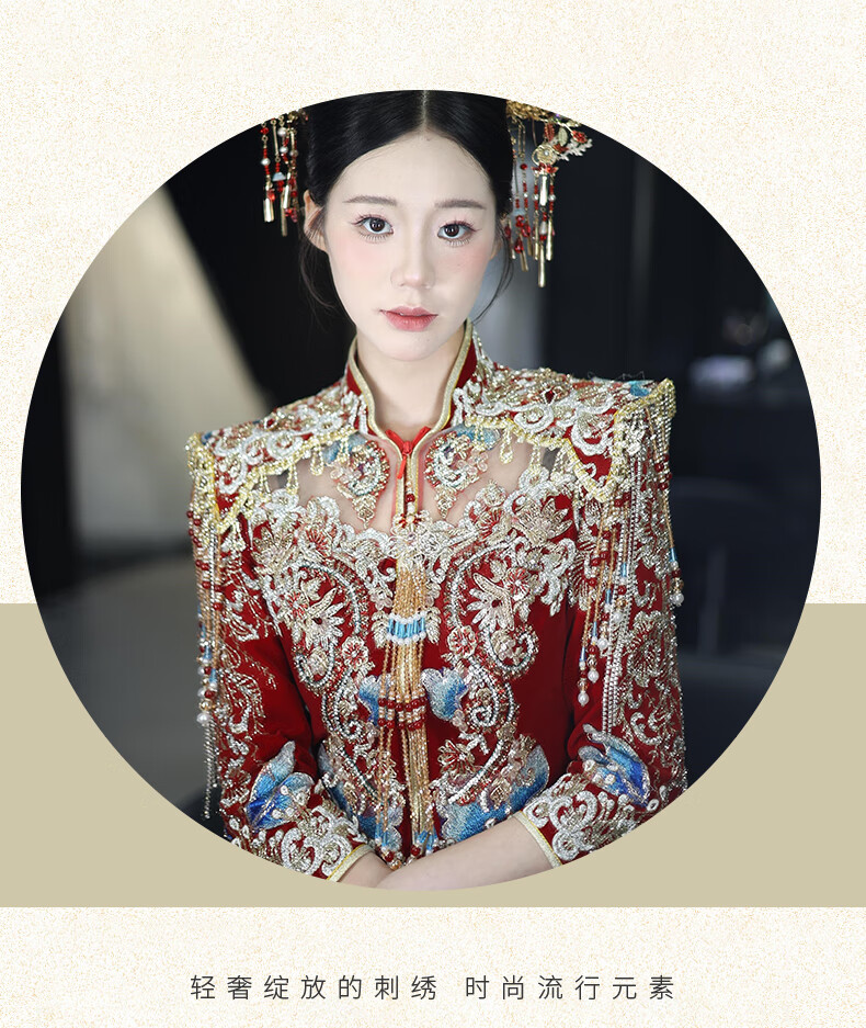 ROAR UTHAUG Velvet Xiuhe Wedding Clothes 2025 New Bride Wedding Dress Chinese Wedding Dress Heavy Industry Dragon and Phoenix Gown Wedding Clothes Red Xiuhe Clothing Free Earrings M