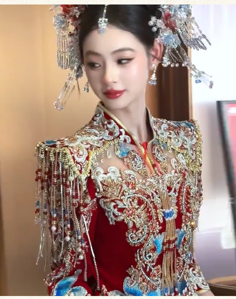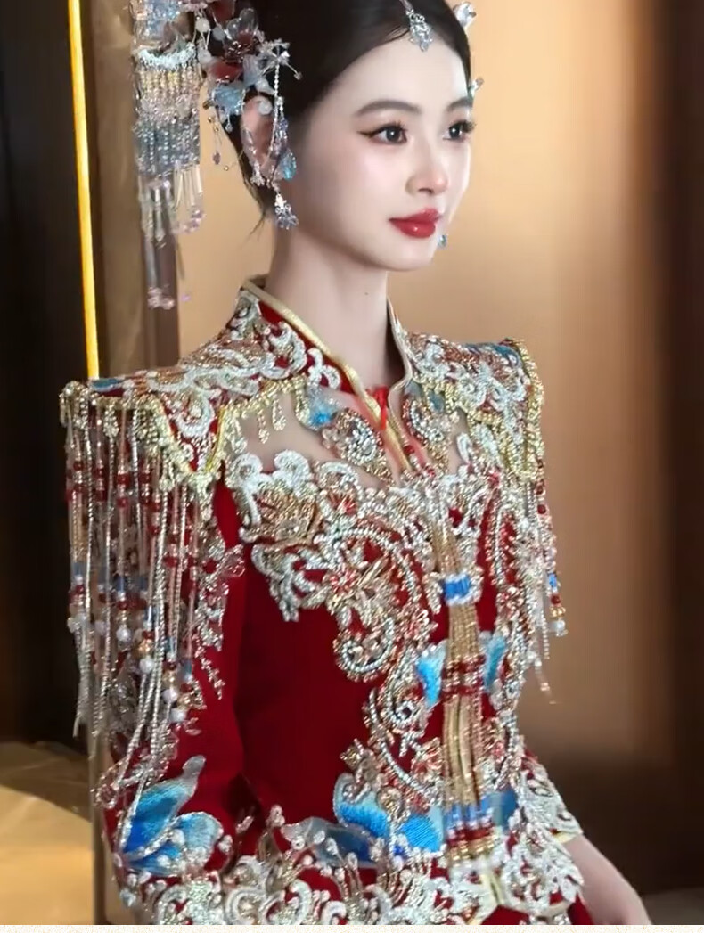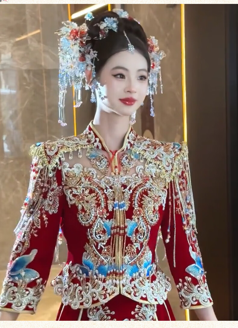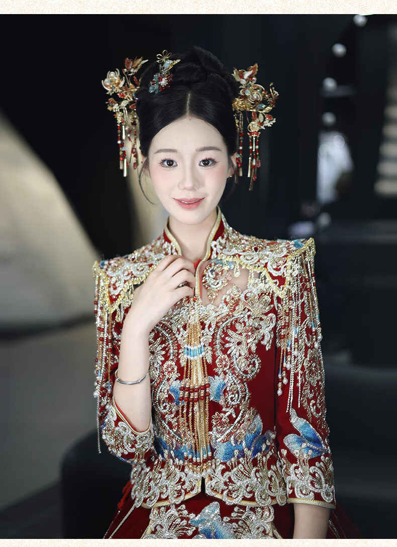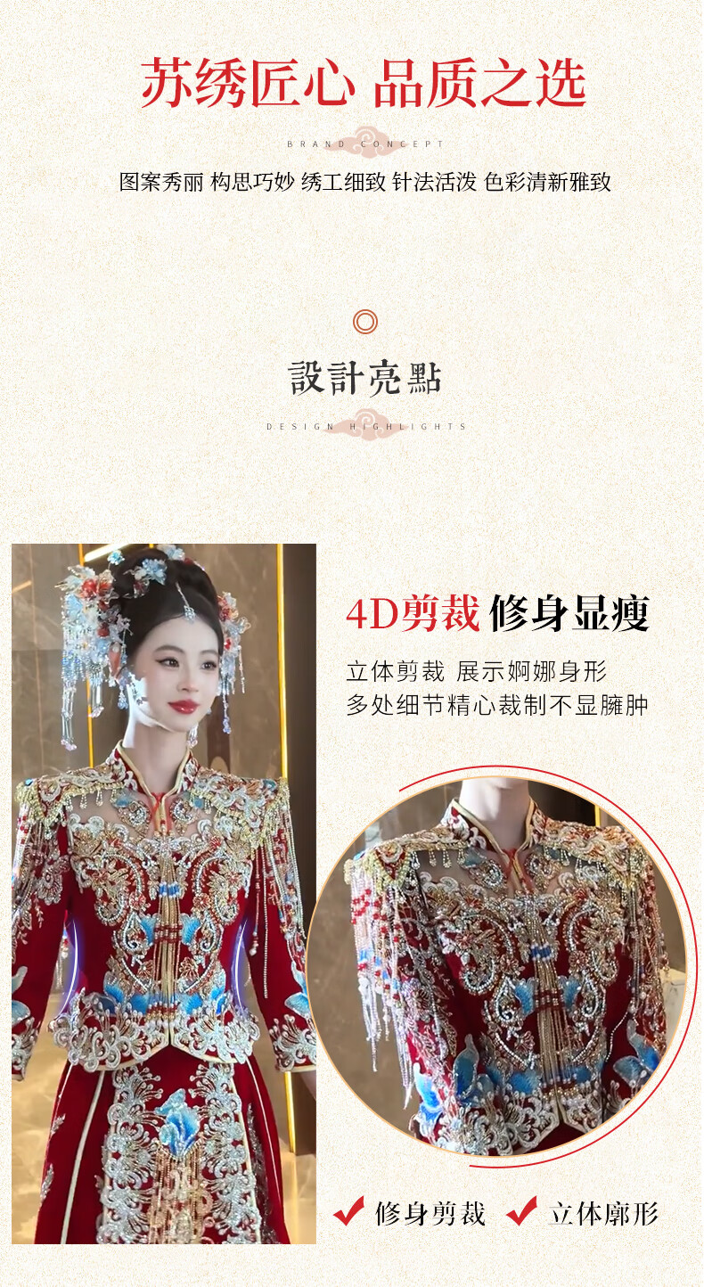 ROAR UTHAUG Velvet Xiuhe Wedding Clothes 2025 New Bride Wedding Dress Chinese Wedding Dress Heavy Industry Dragon and Phoenix Gown Wedding Clothes Red Xiuhe Clothing Free Earrings M