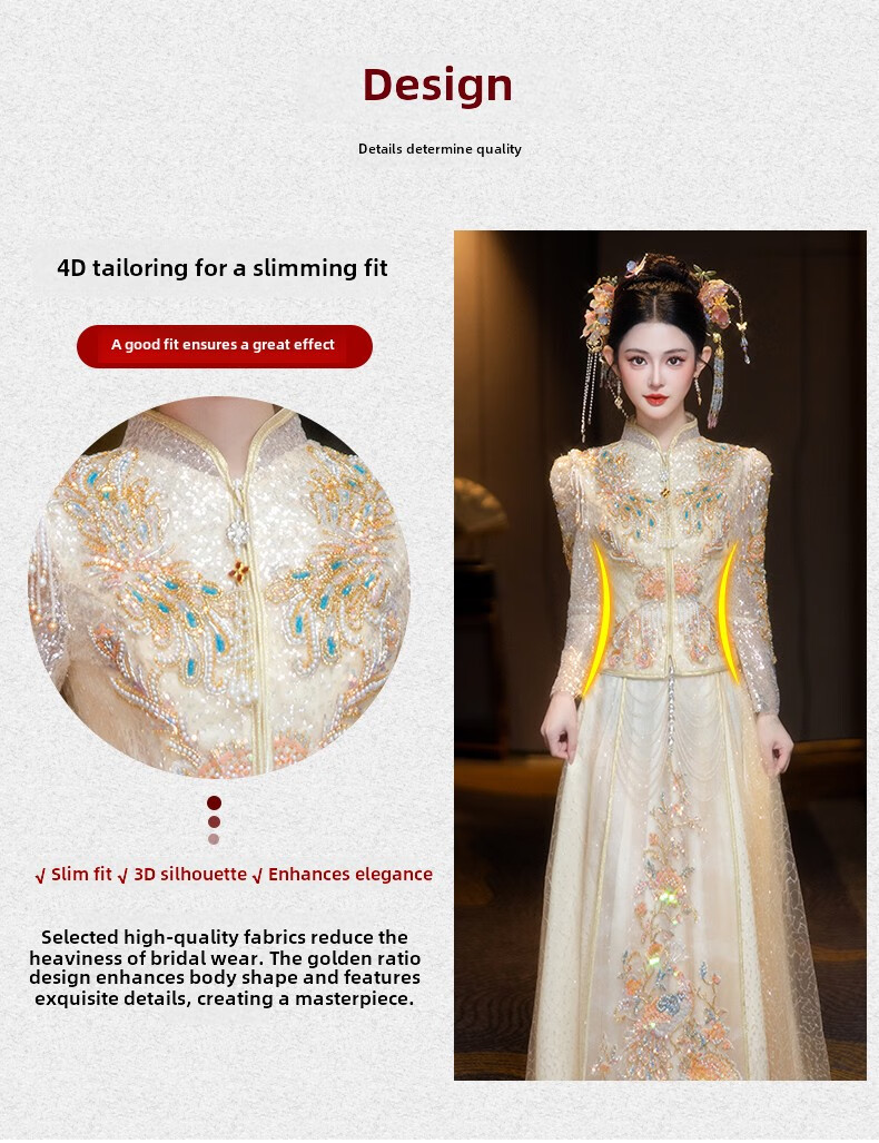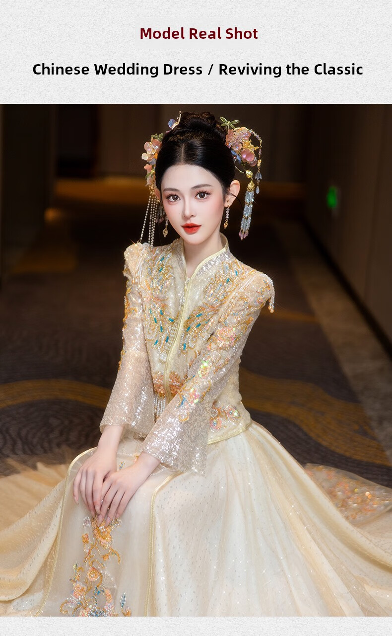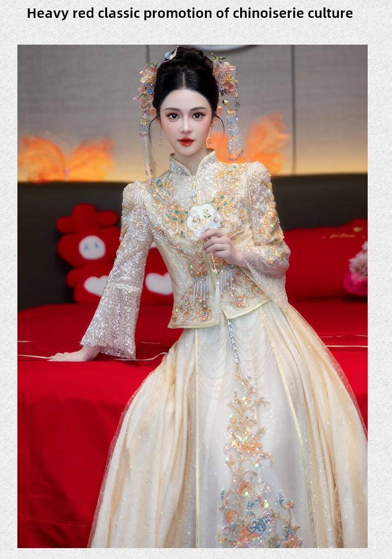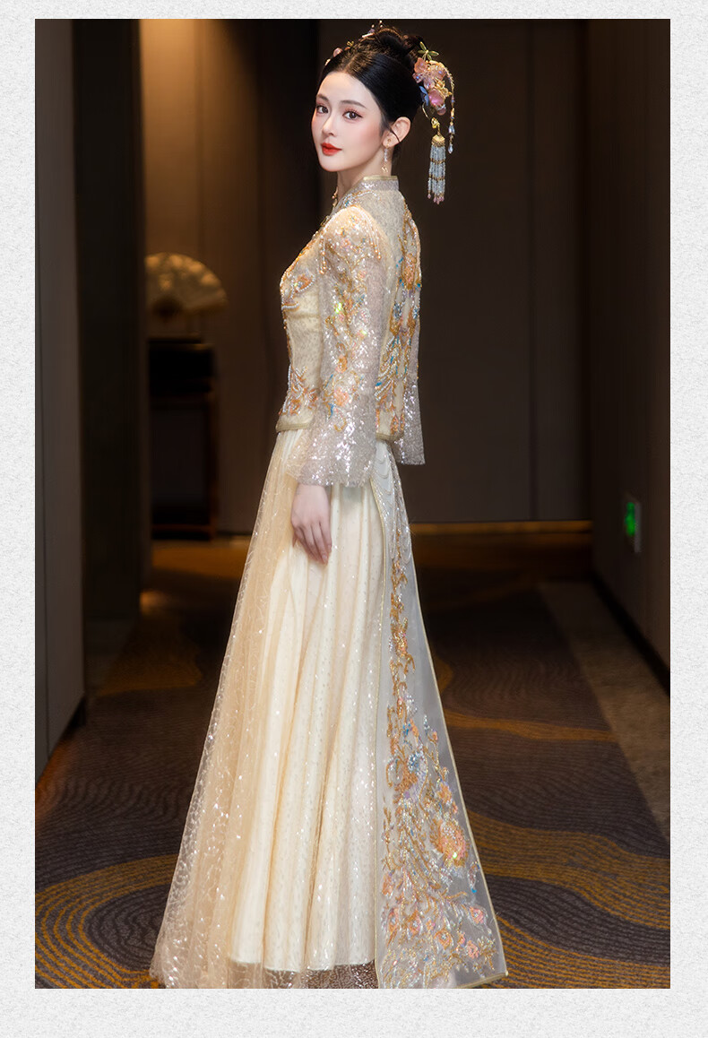 ROAR UTHAUG Champagne Show and Wedding Dress 2025 Bride New Wedding China Clothing Heavy Industry Ladies Toast Wear Champagne Colored Glass S