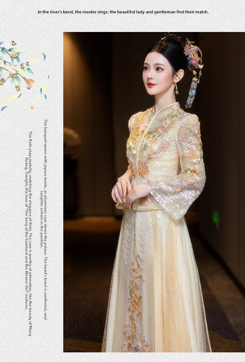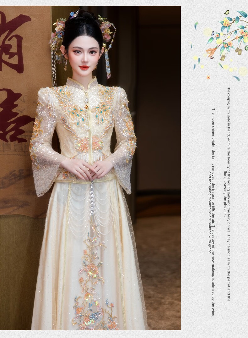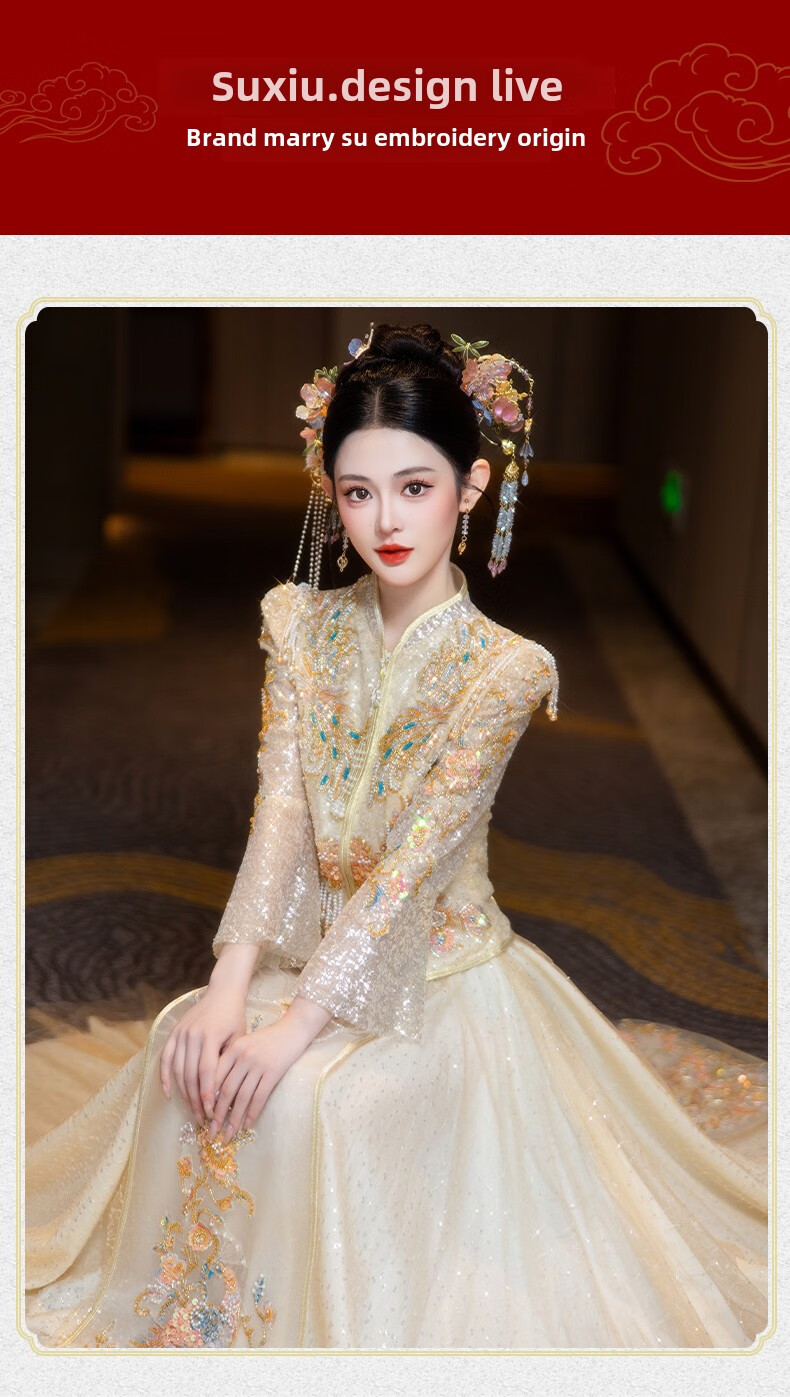 ROAR UTHAUG Champagne Show and Wedding Dress 2025 Bride New Wedding China Clothing Heavy Industry Ladies Toast Wear Champagne Colored Glass S