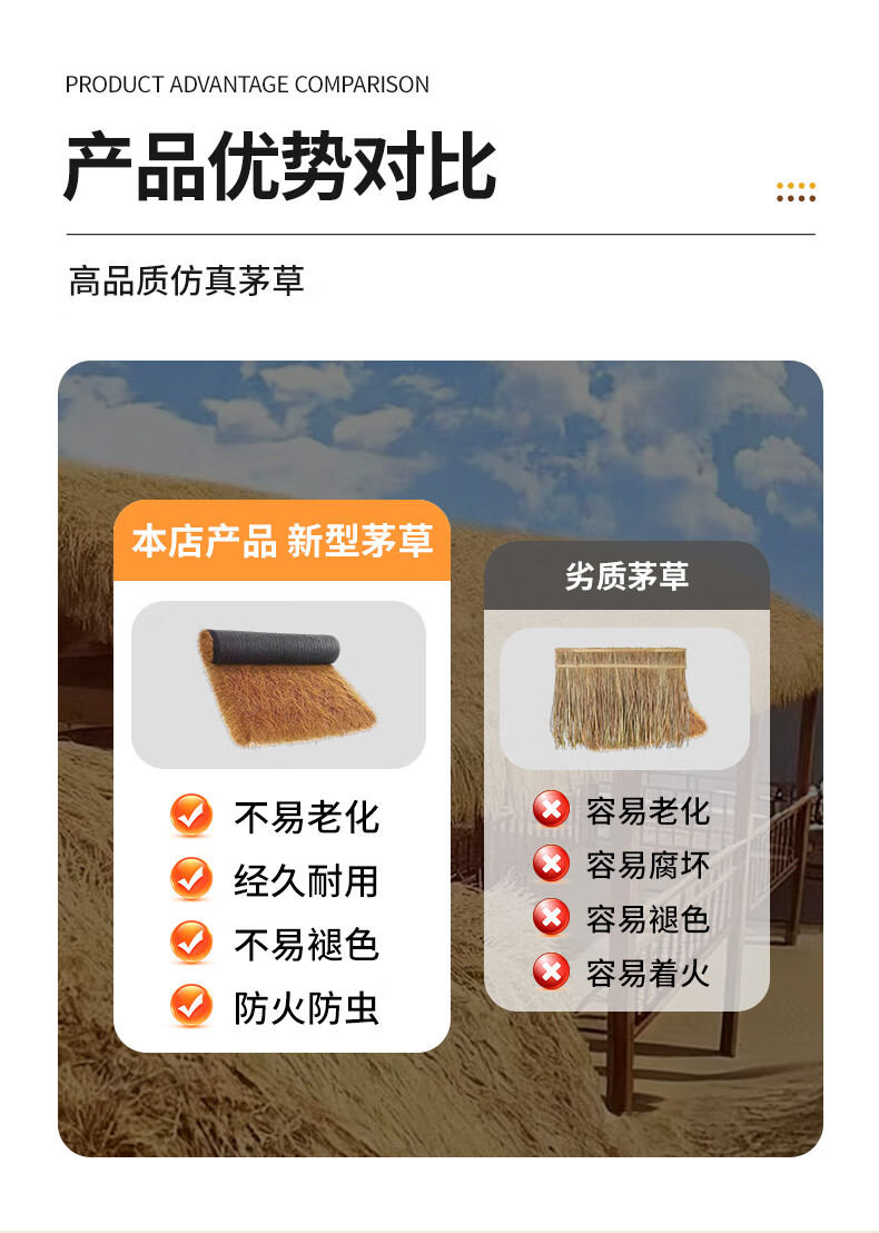 Simulated plastic thatch outdoor roof straw decoration B&B scenic farmhouse heat insulation and sun protection latex style 2 meters x 3 meters