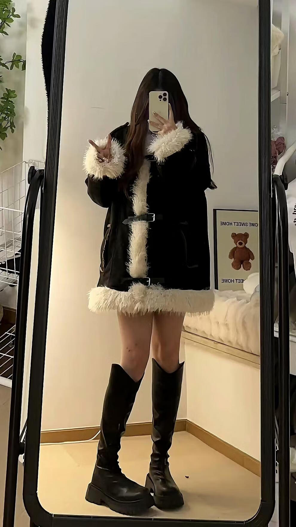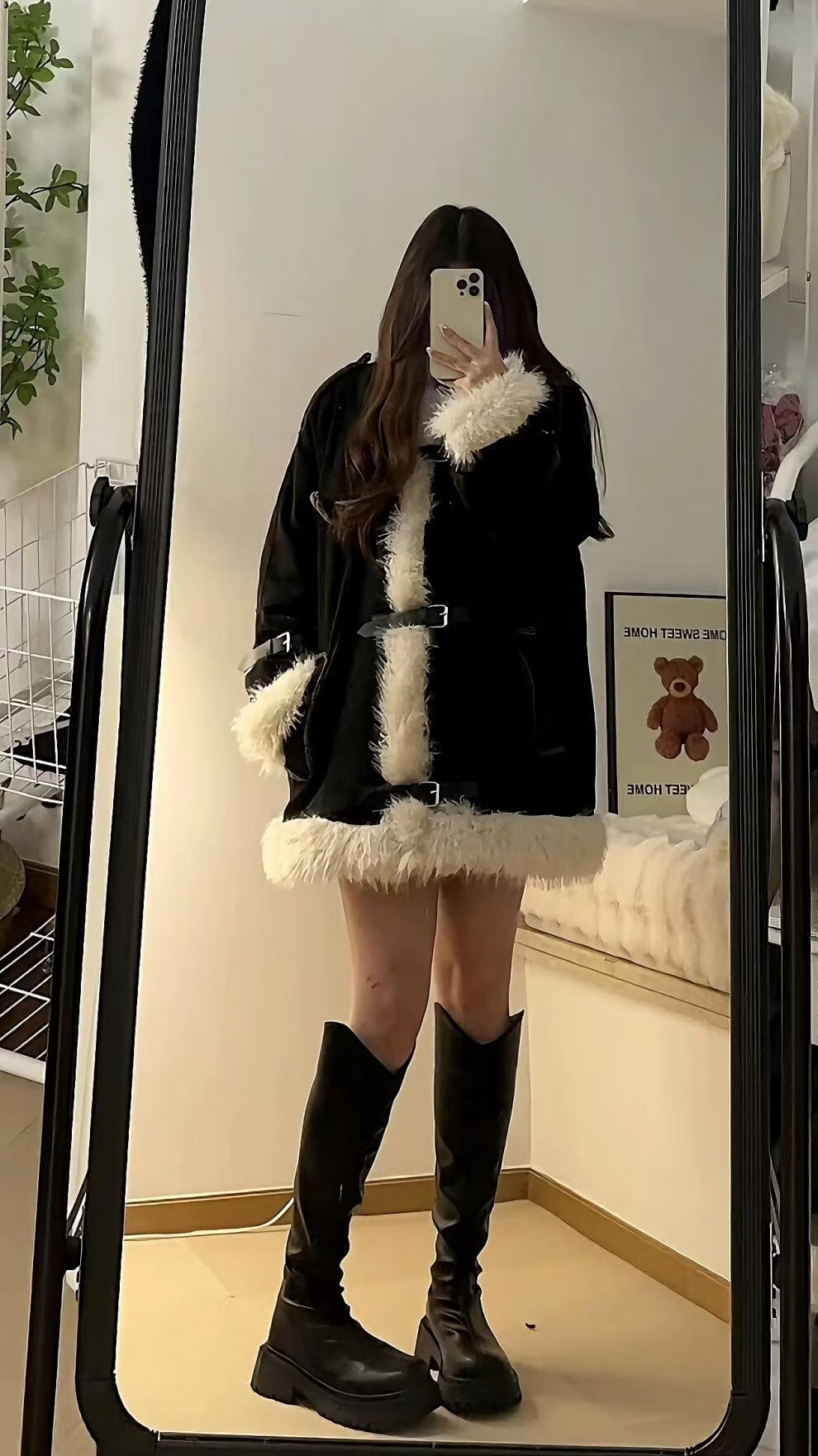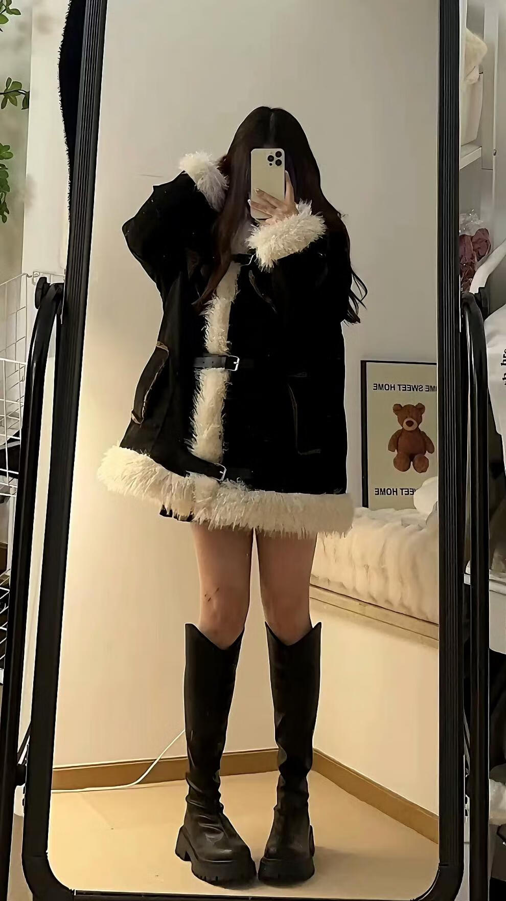 Apocalypse Century Design Retro Furry Stitching Lamb Wool Stand Collar Cotton Clothes Women's Winter Thickened Motorcycle Jacket Black S