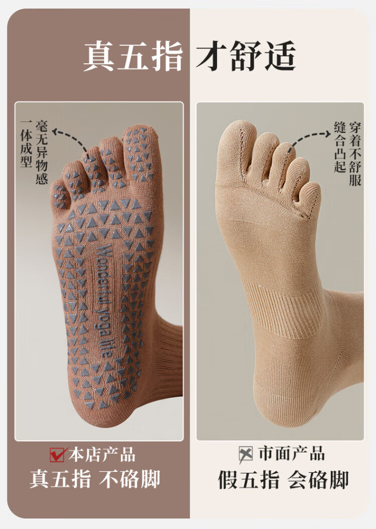 DFBK German five-finger yoga socks non-slip women's 2025 autumn and winter Pilates training indoor sports special split toe 1 pair light coffee one size fits all Gymnastics Zhang Jingyu endorses the yoga socks brand