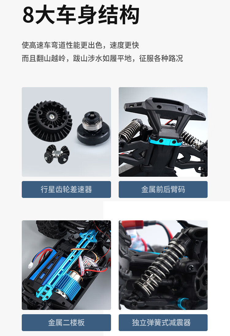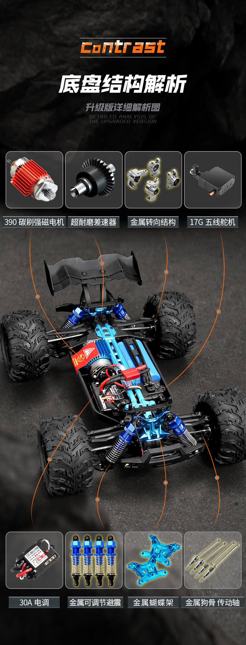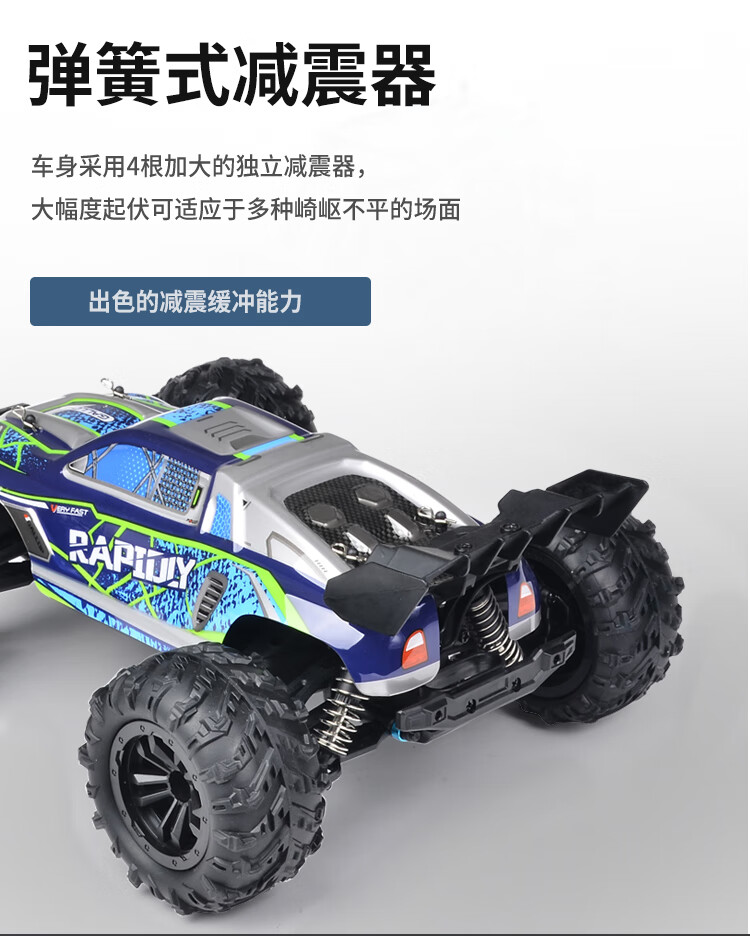 Chili 25 remote control cars for 6-14 years old, large toy car, wild high-power high-speed racing car, big-foot children's electric car, professional RC brushed Raptor blue, full scale 60KM/H, one high-speed battery, about 30 minutes