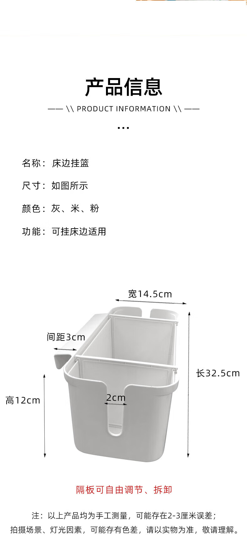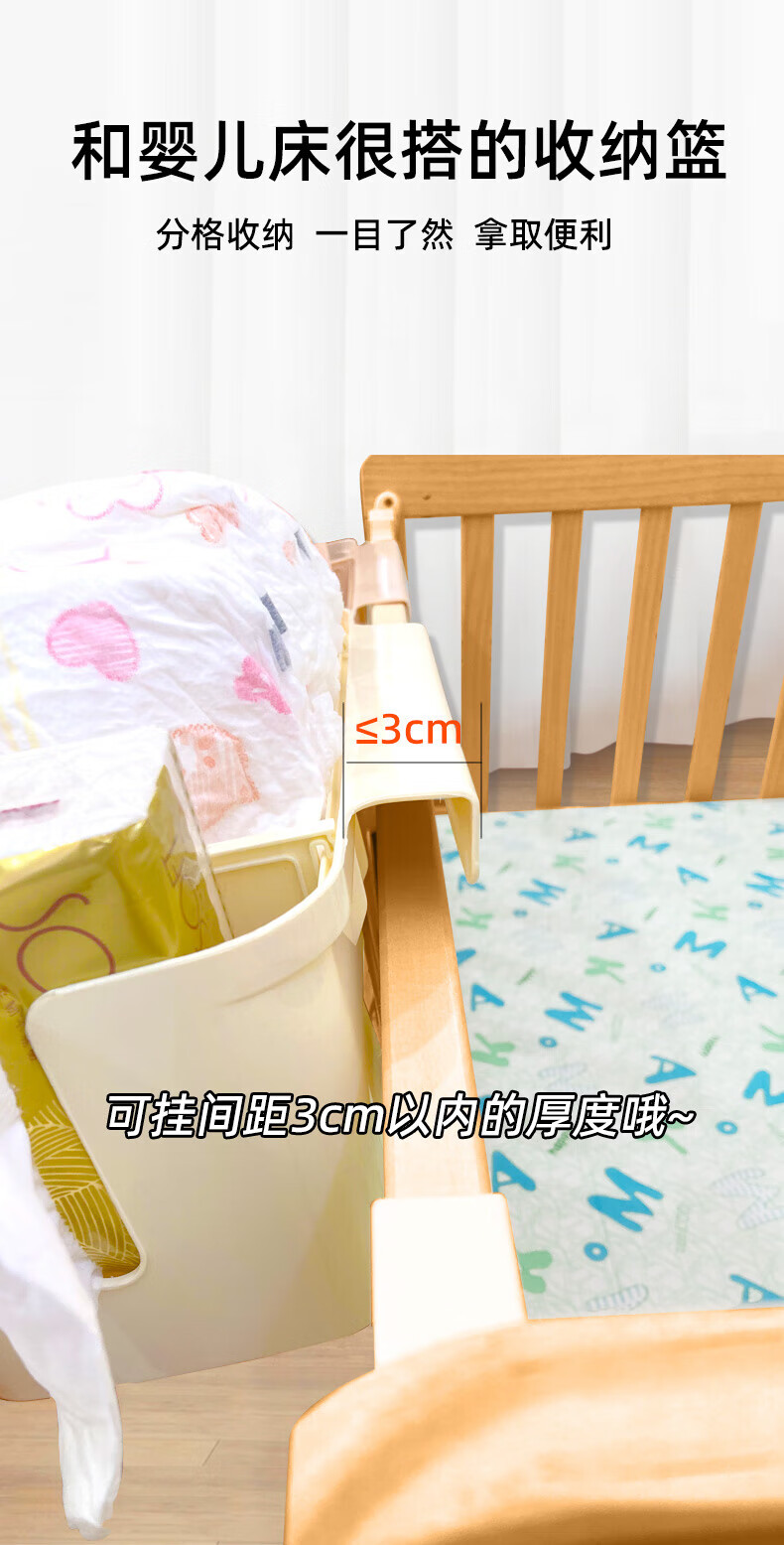 He Jiagong bedside hanging basket bed hanging children's bedside fence storage box diaper bag hanging bag basket pearl powder