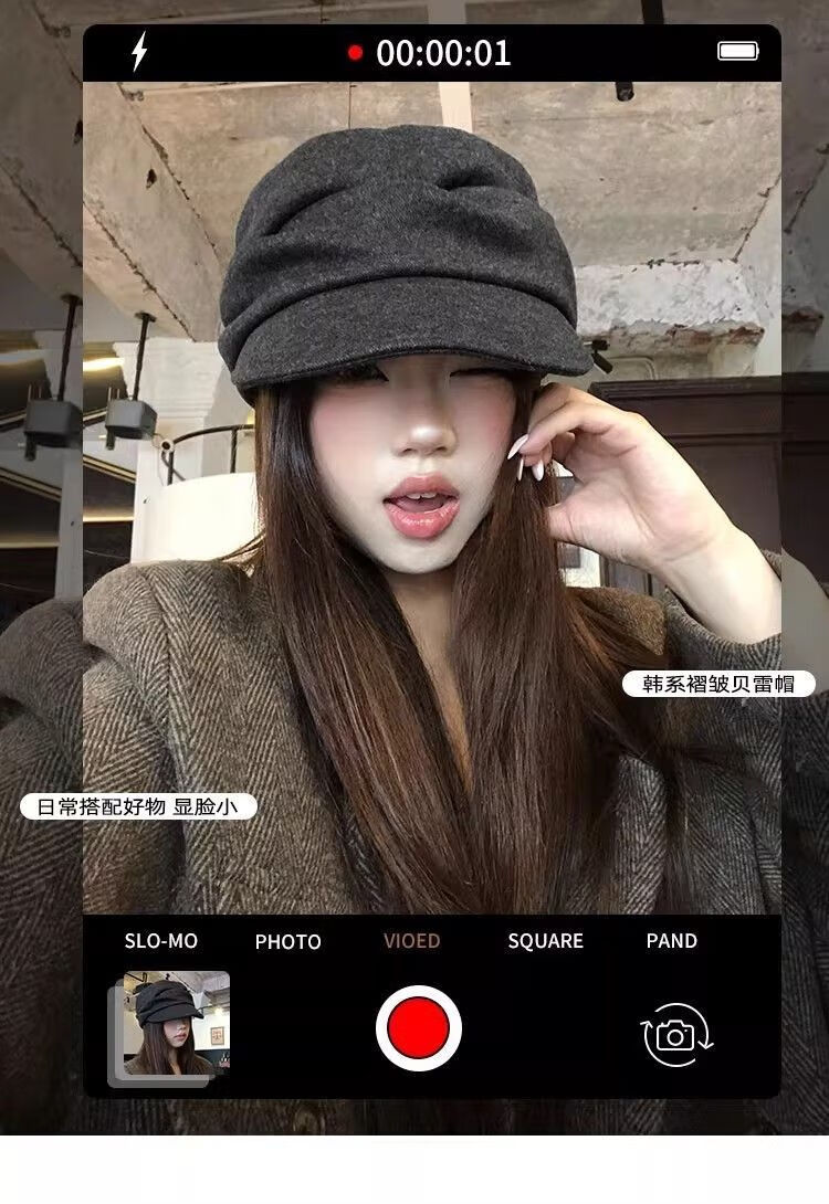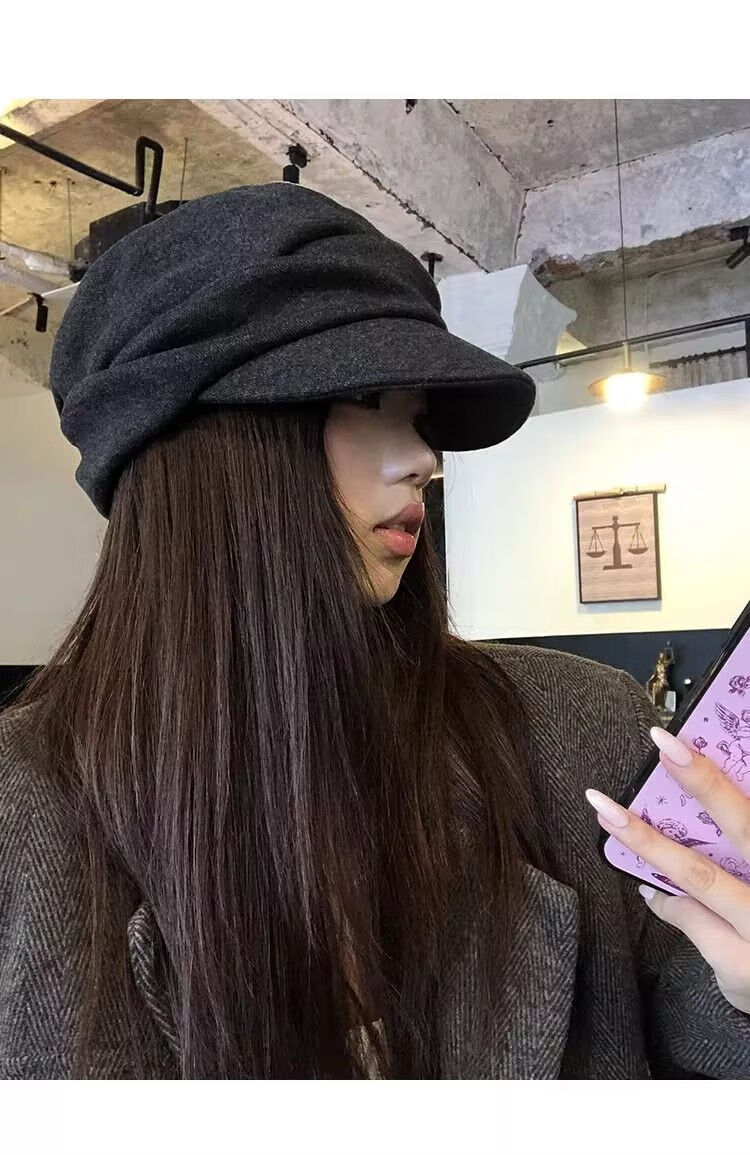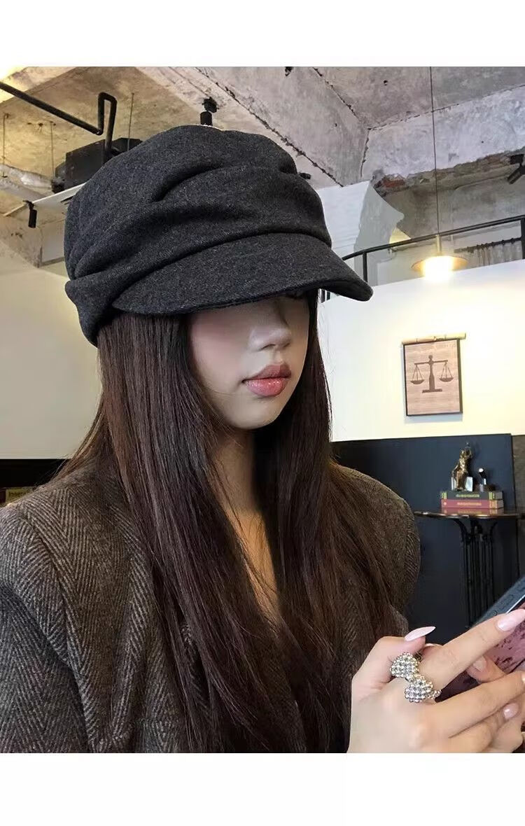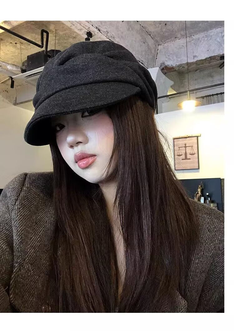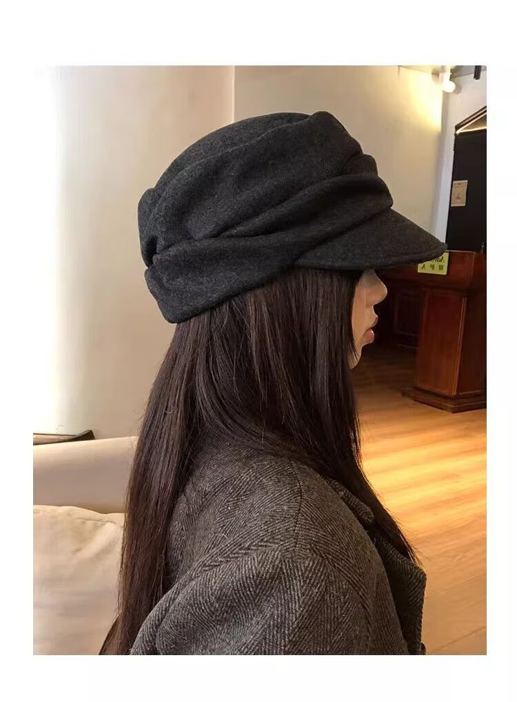 NAOISKEY Naoski Japanese Yamamoto style black pleated beret women's autumn and winter 2025 new retro duck bill newsboy hat painter hat black gray M one size 55-59c