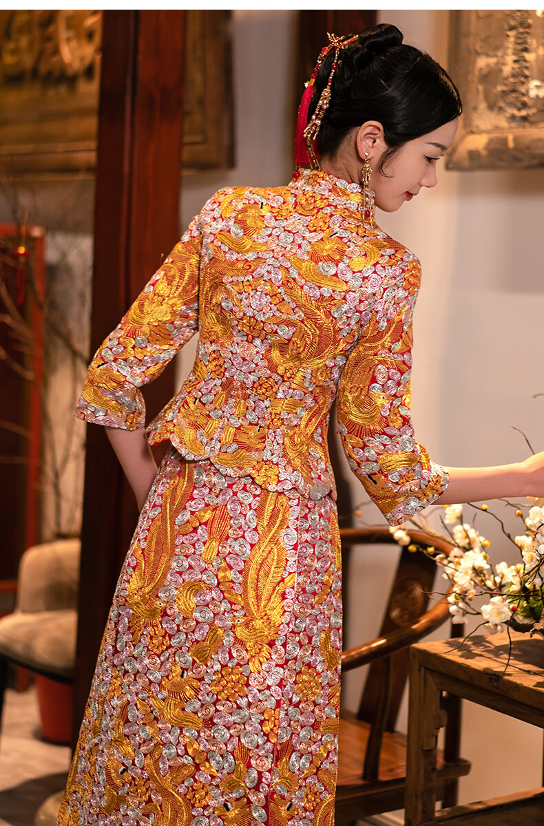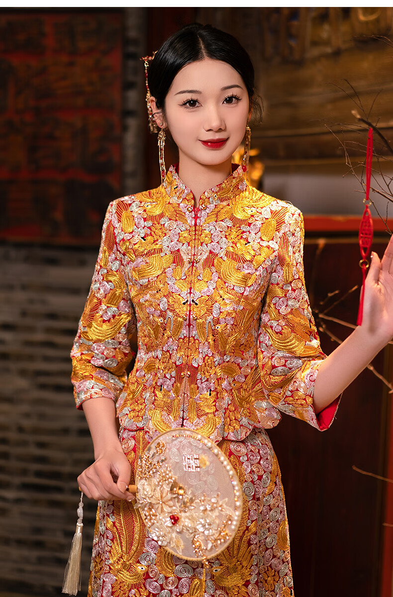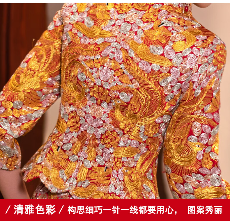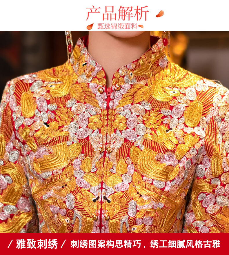 ROAR UTHAUG dragon and phoenix gown Xiuhe clothing 2025 new bride wedding high-end heavy industry Chinese wedding dress wedding dress toasting suit summer XH1376 exquisite no diamond style no headwear S