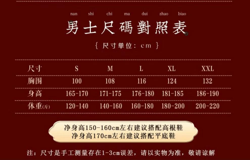 China (cm) 165 / 88-90 170 / 96-98 175 / 108-110 180 / 118-122 185 / 126-130