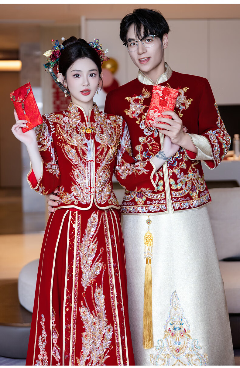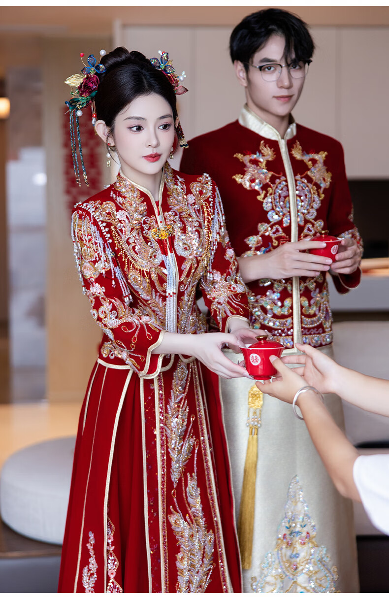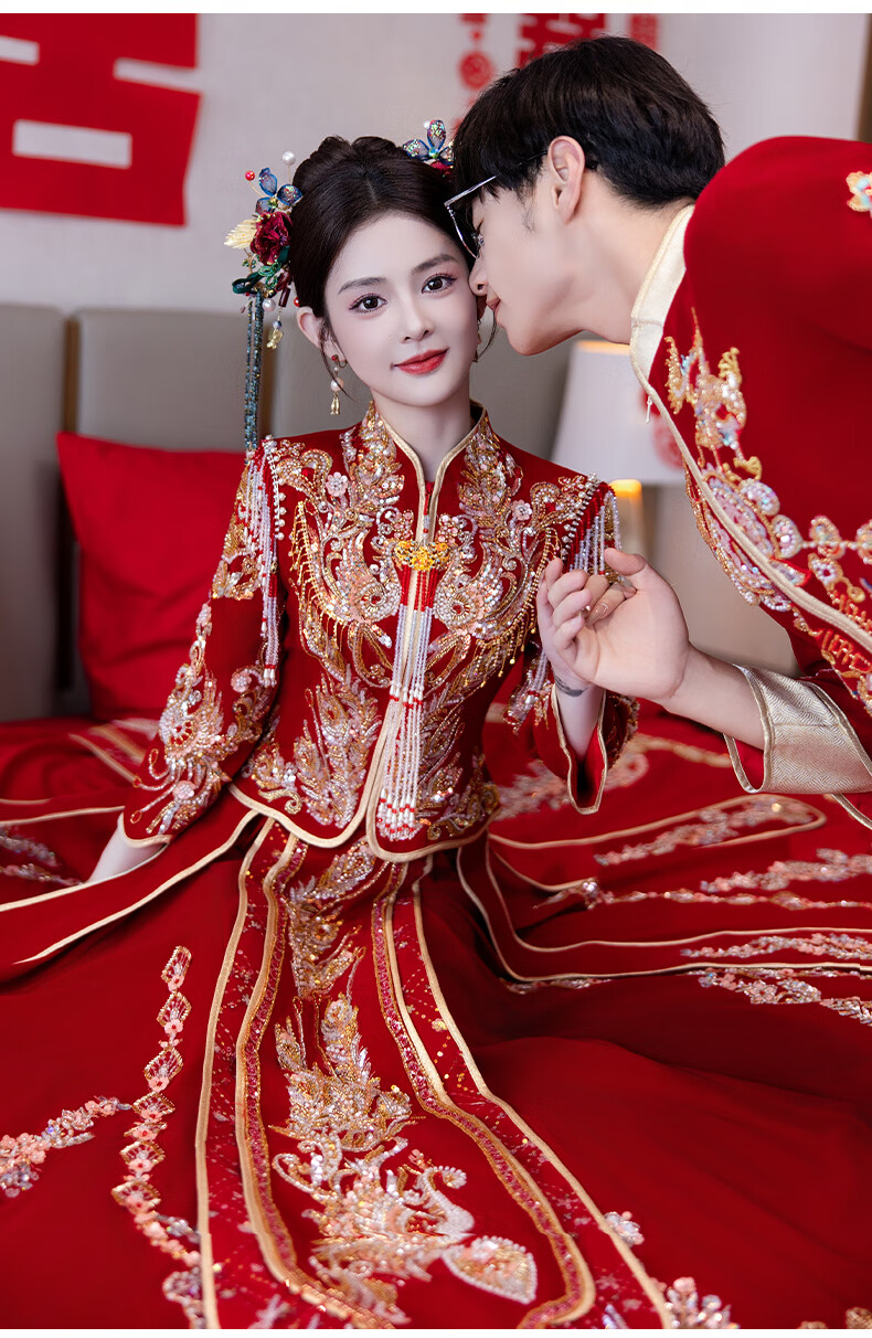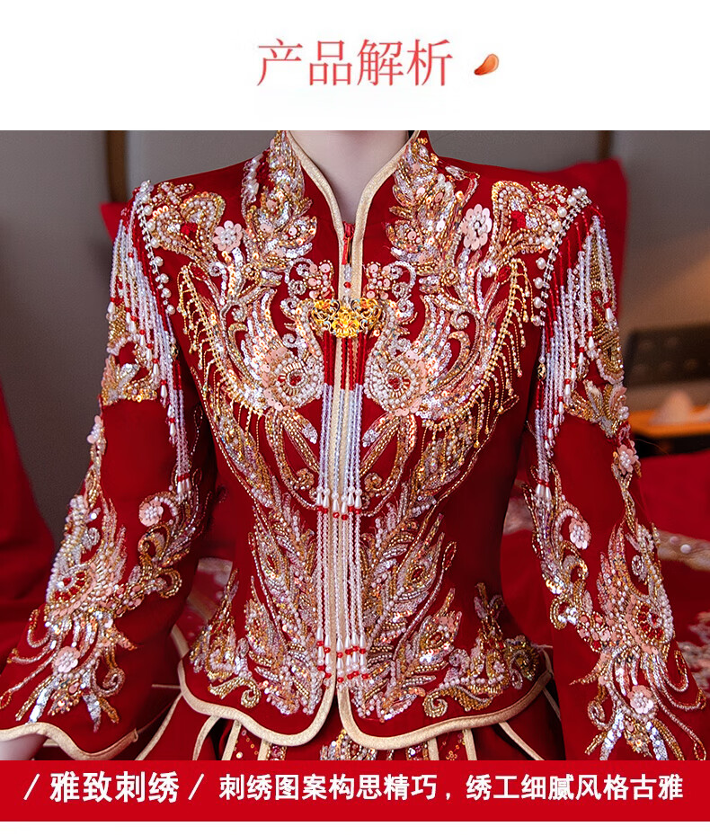 ROAR UTHAUG Xiuhe clothing bride dragon and phoenix hanging 2025 new wedding toast dress wedding dress out of the pavilion slim dress skirt XH1721 Xifeng no headdress S