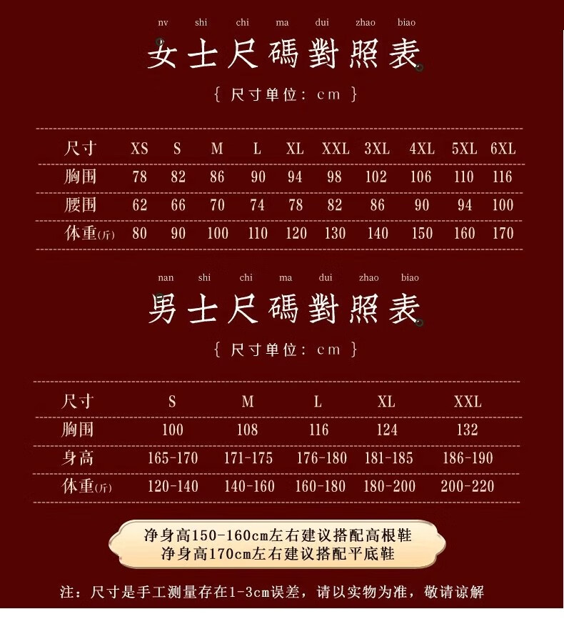 China (cm) 160-165/84-86 165-170 / 88-90 167-172 / 92-96 168-173 / 98-102 170-176 / 106-110