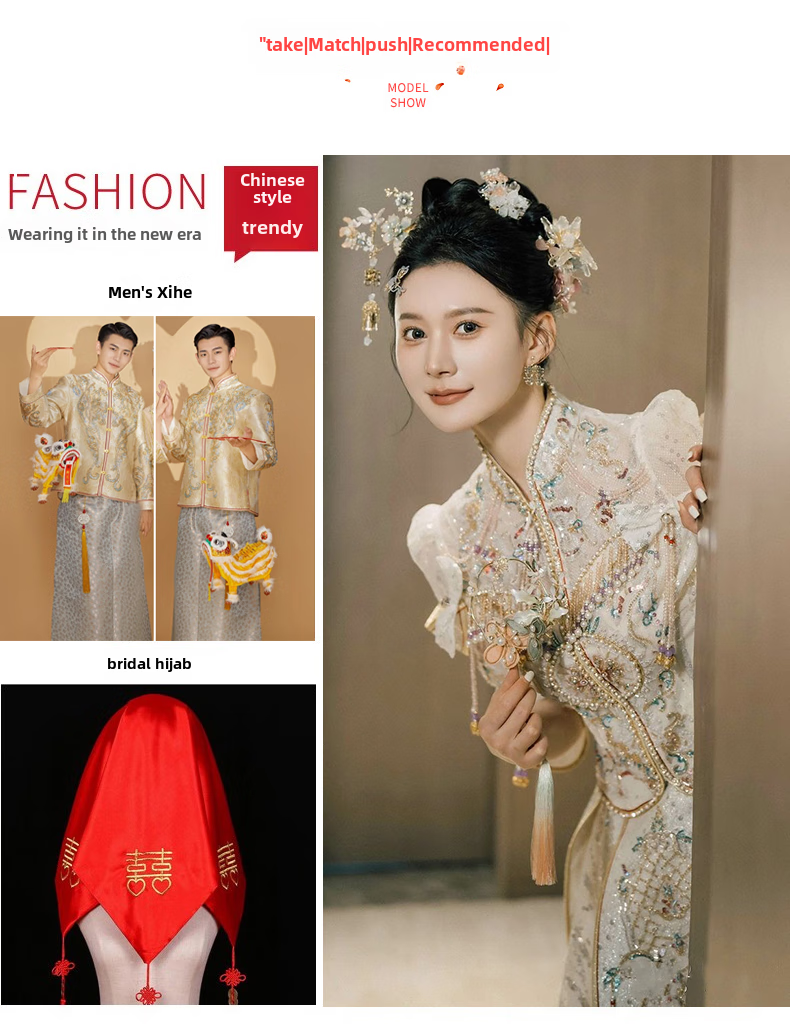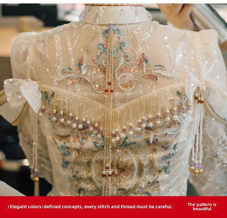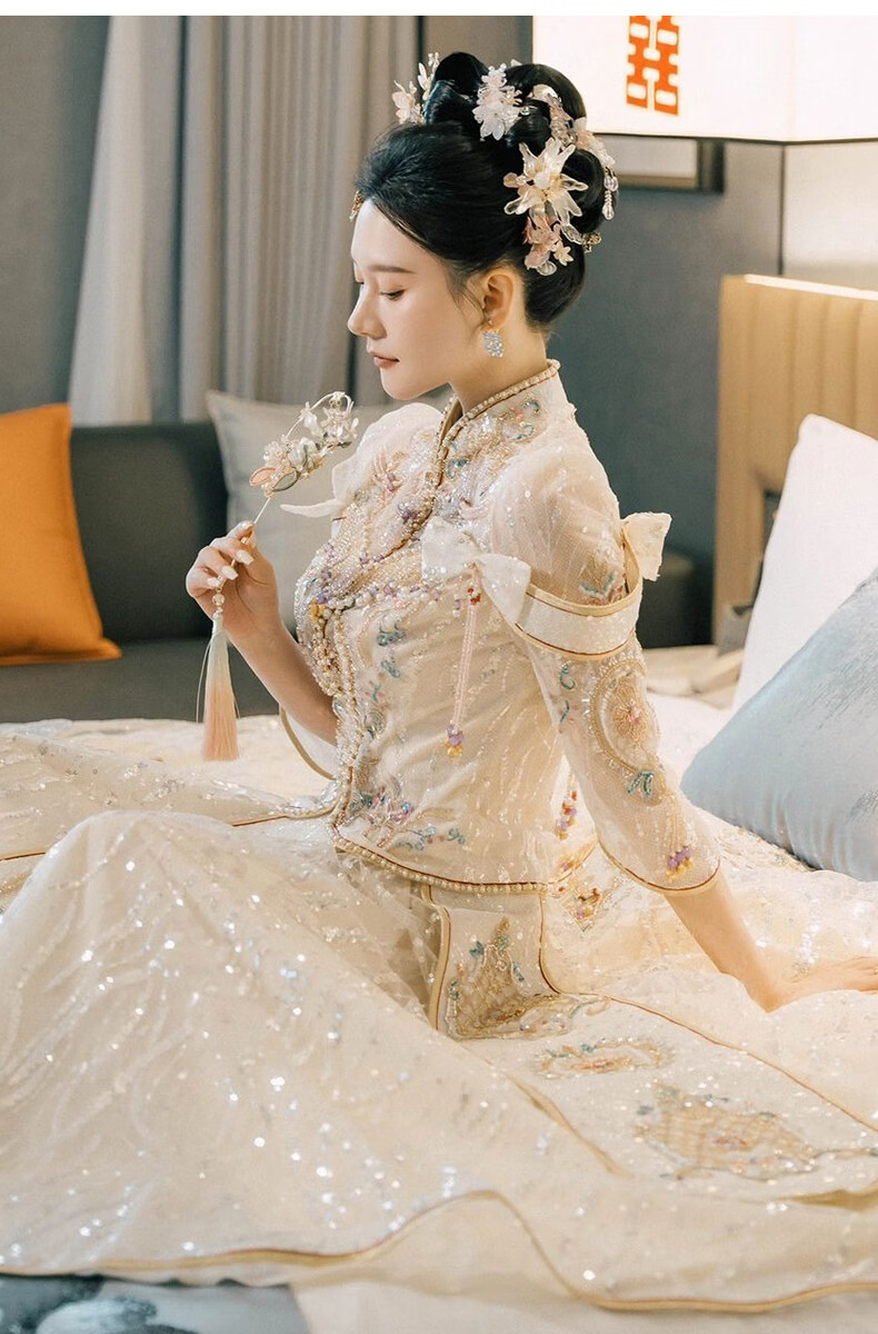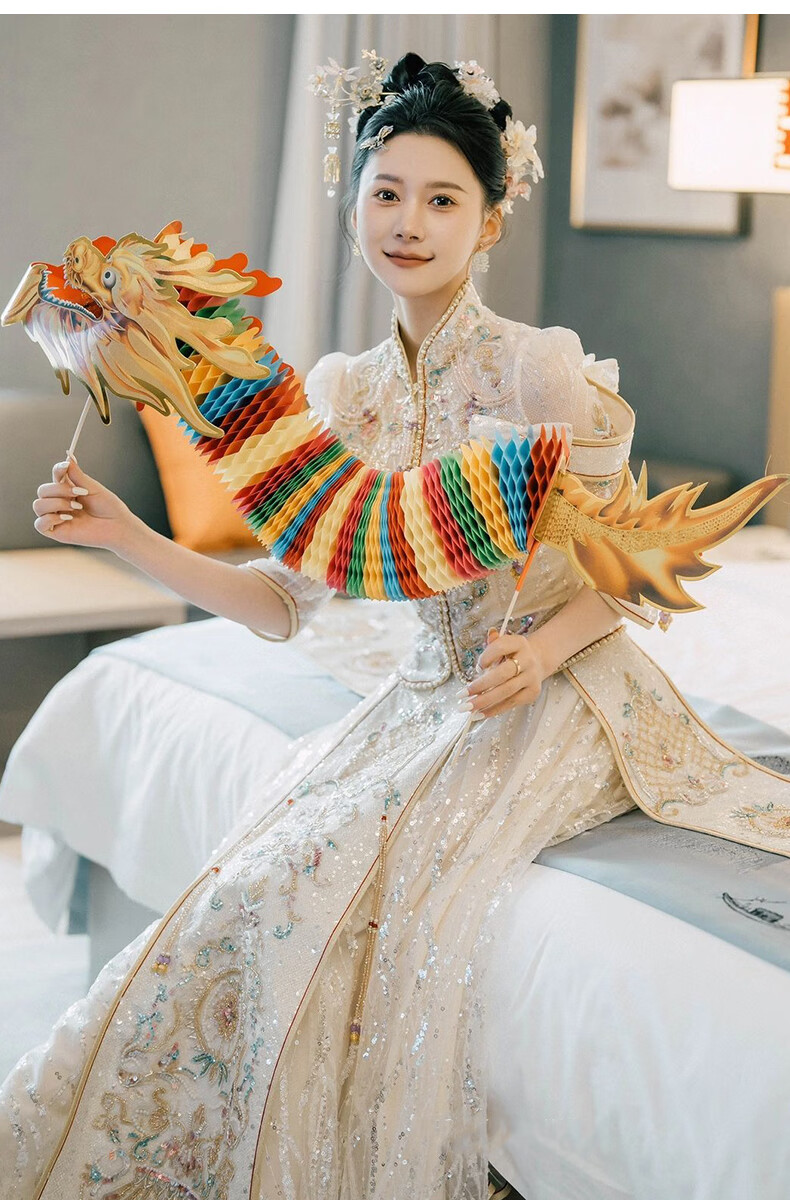 ROAR UTHAUG Show and Clothing 2025 New Champagne Color New Chinese Style Wedding Dress Elegant Small Wedding Toast Outfit Outfit XH1434 Qian Yan No Headgear S