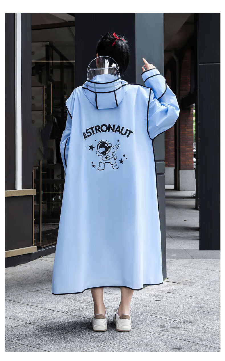 Pick up cat raincoat long full body single men's and women's new cycling rainproof electric battery bicycle rain blue gloves cycling hiking backpack double brim 2L height 170185 cm