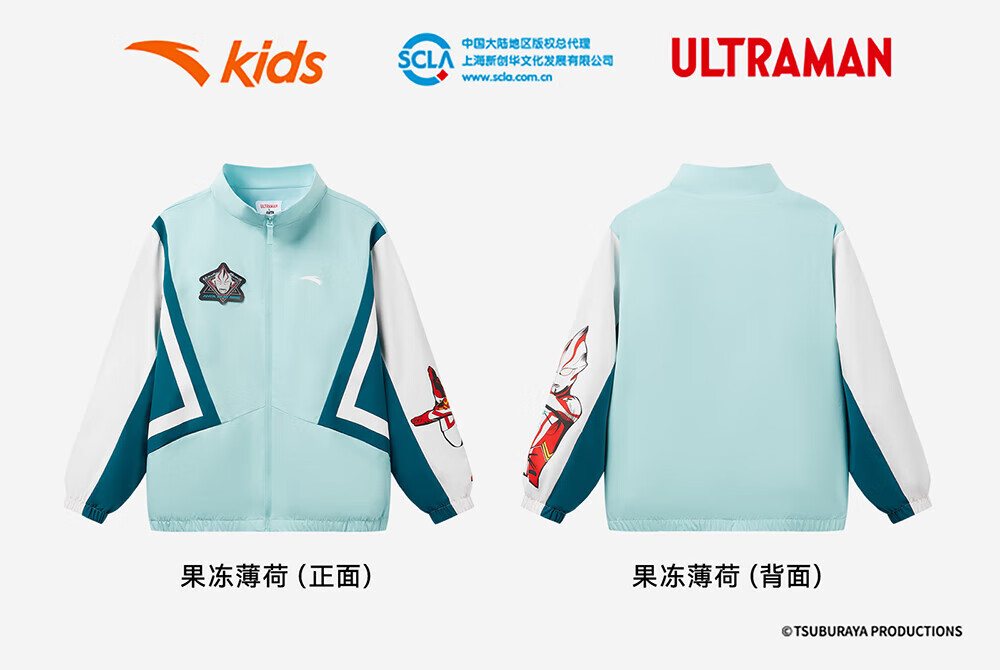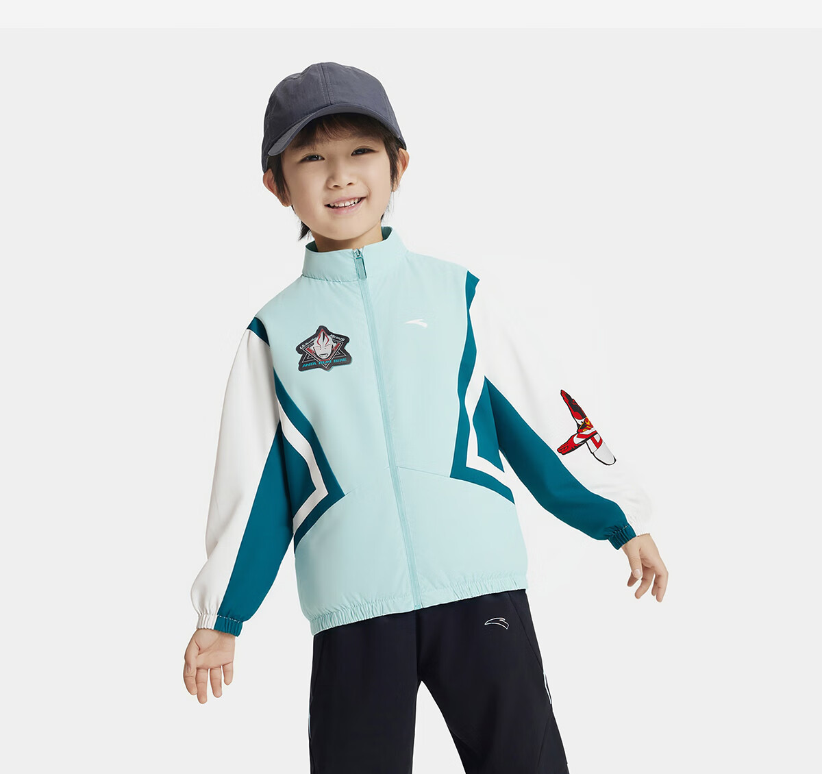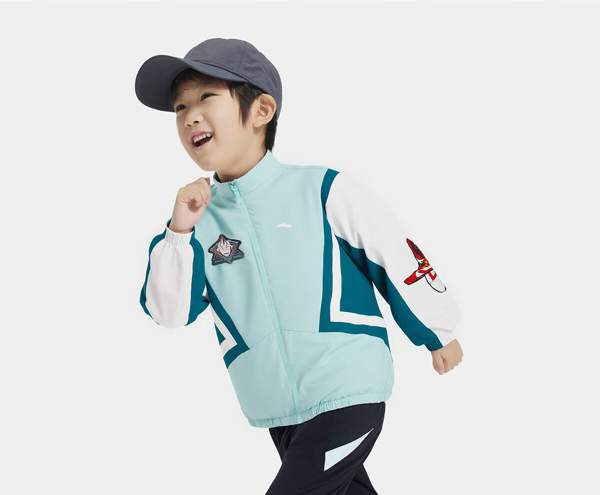 ANTA Children's Boys Outdoor Cycling Suit Sports Top 2025 New Breathable Boys Windproof Ultraman Thin Jacket Jelly Mint-2 120