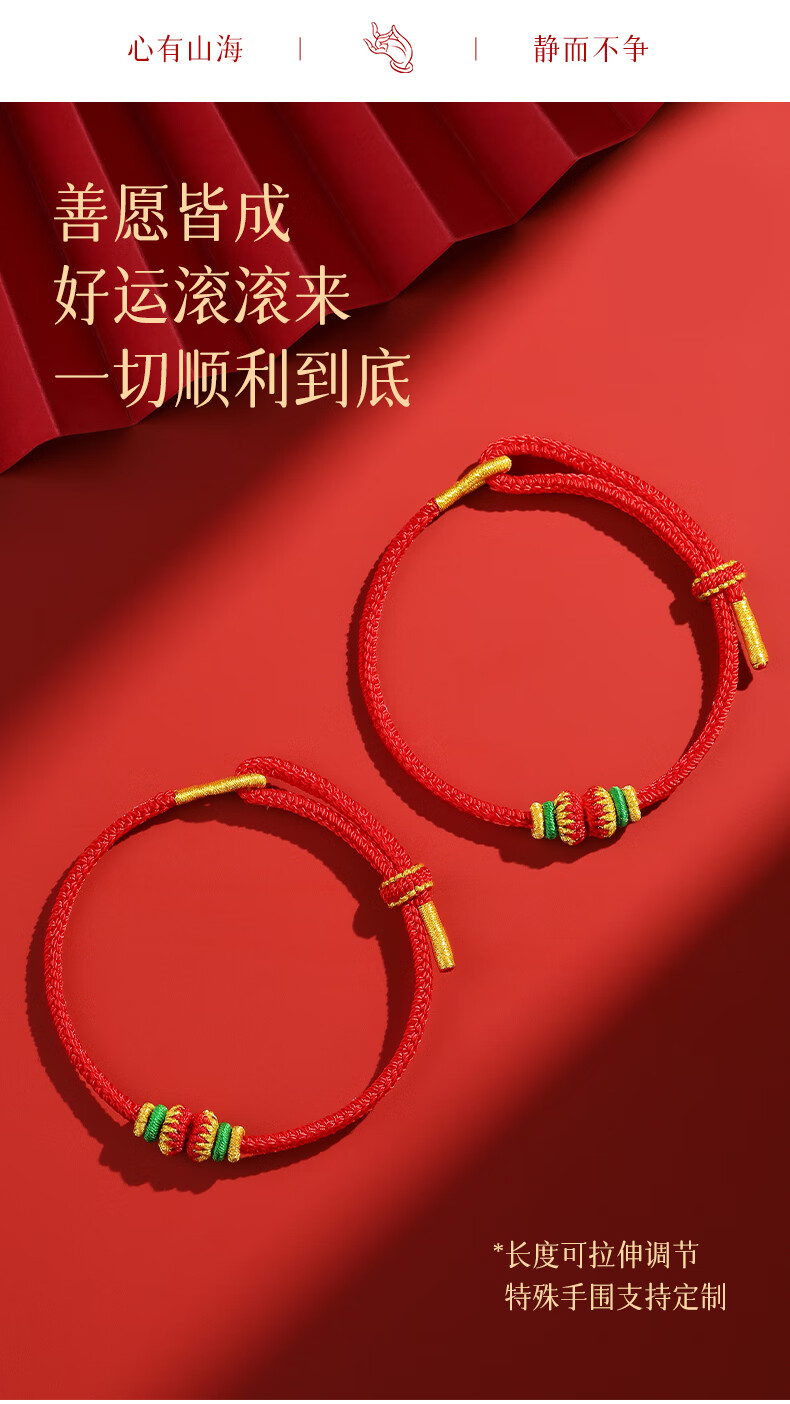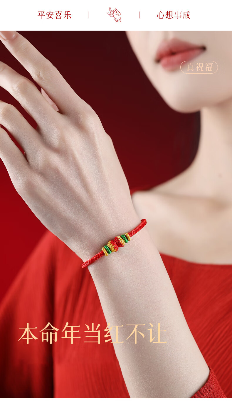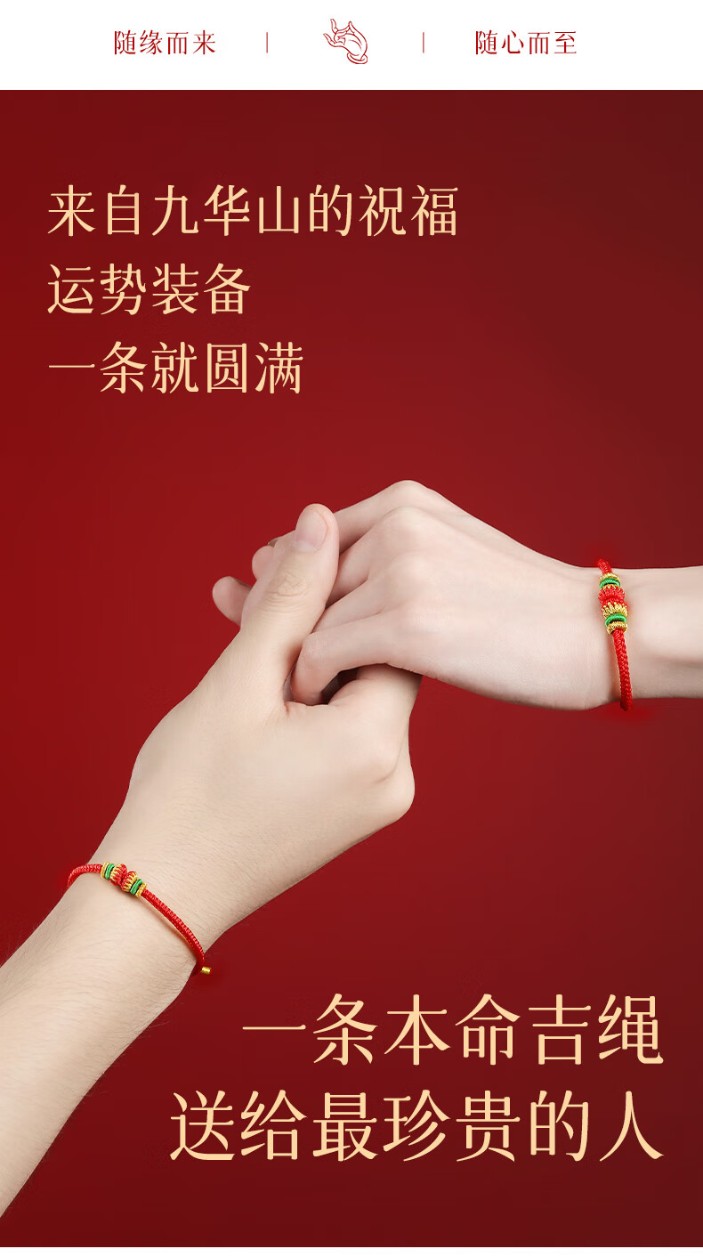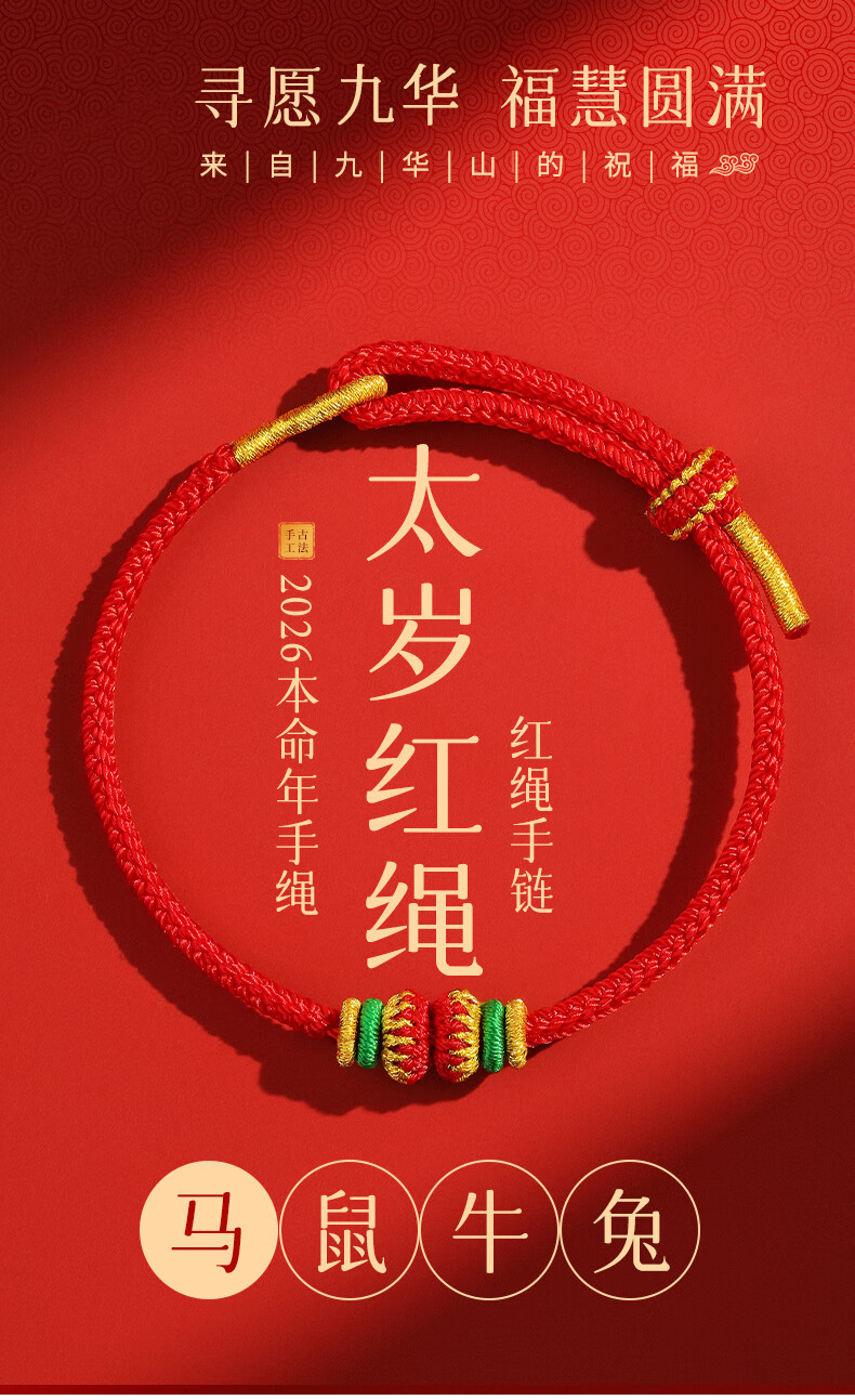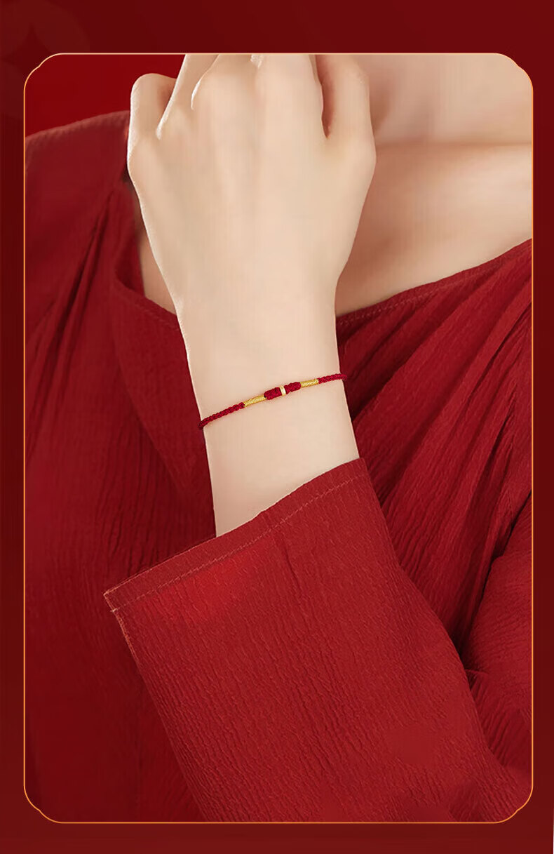 Jiuhuashan zodiac year red rope 2026 zodiac year of the horse small gold bead bracelet female amulet Valentine's Day gift girlfriend practical red rope bracelet-auspicious red style