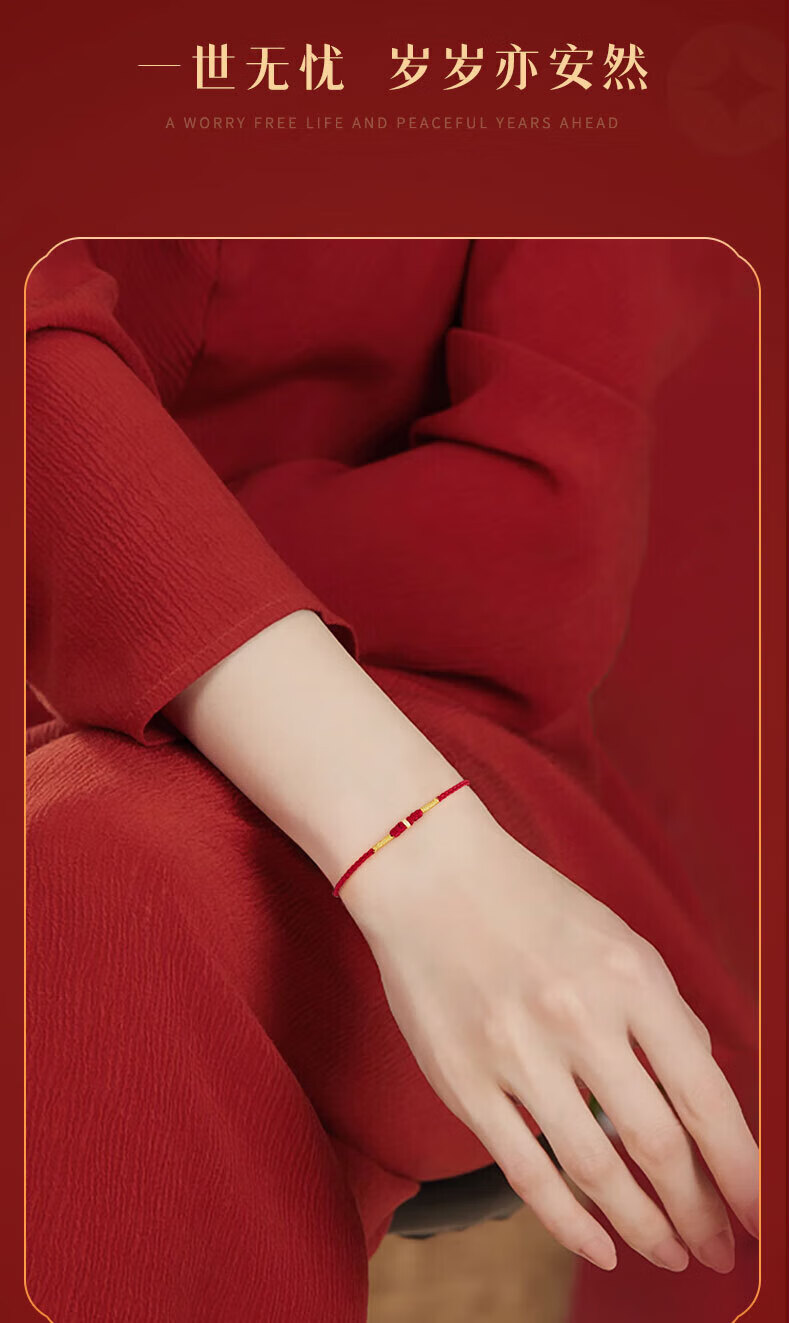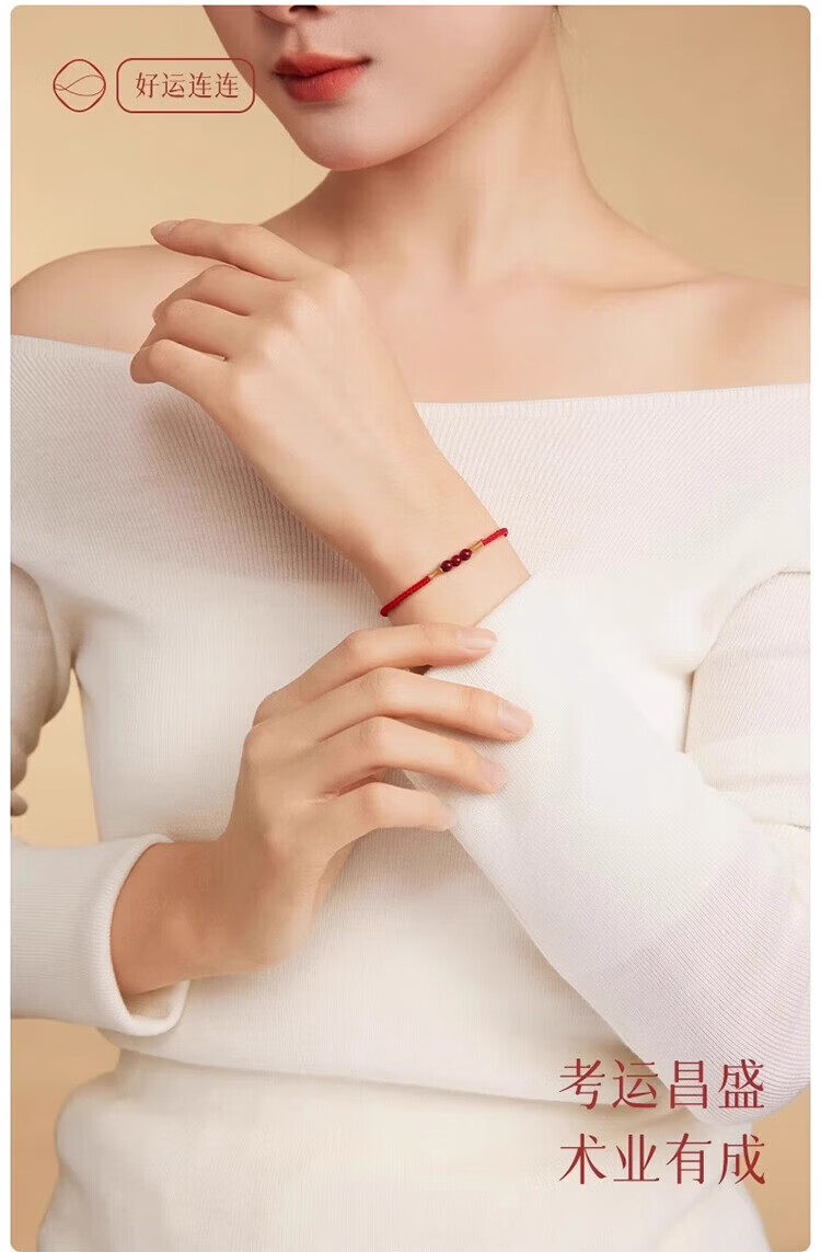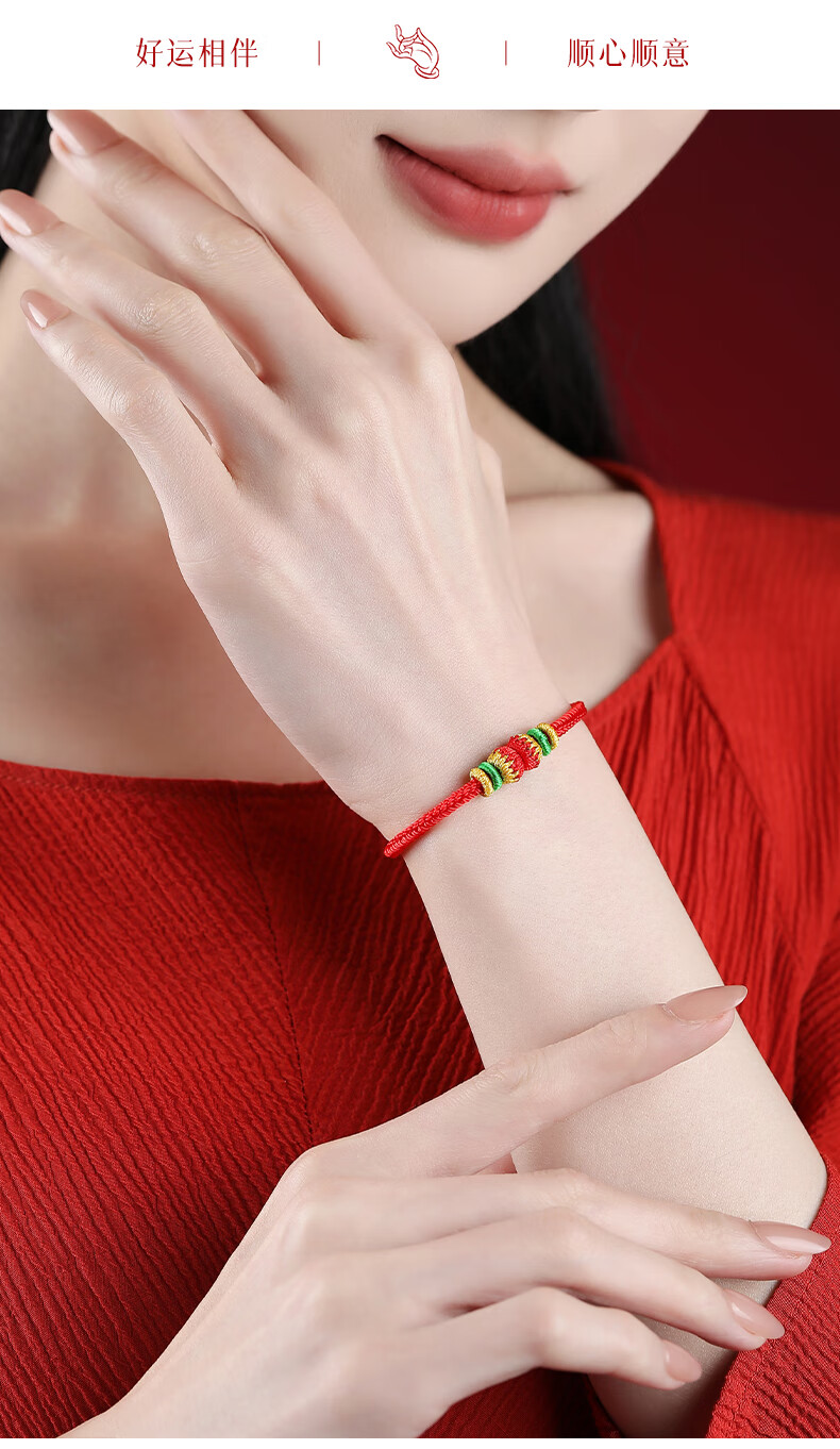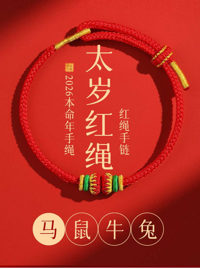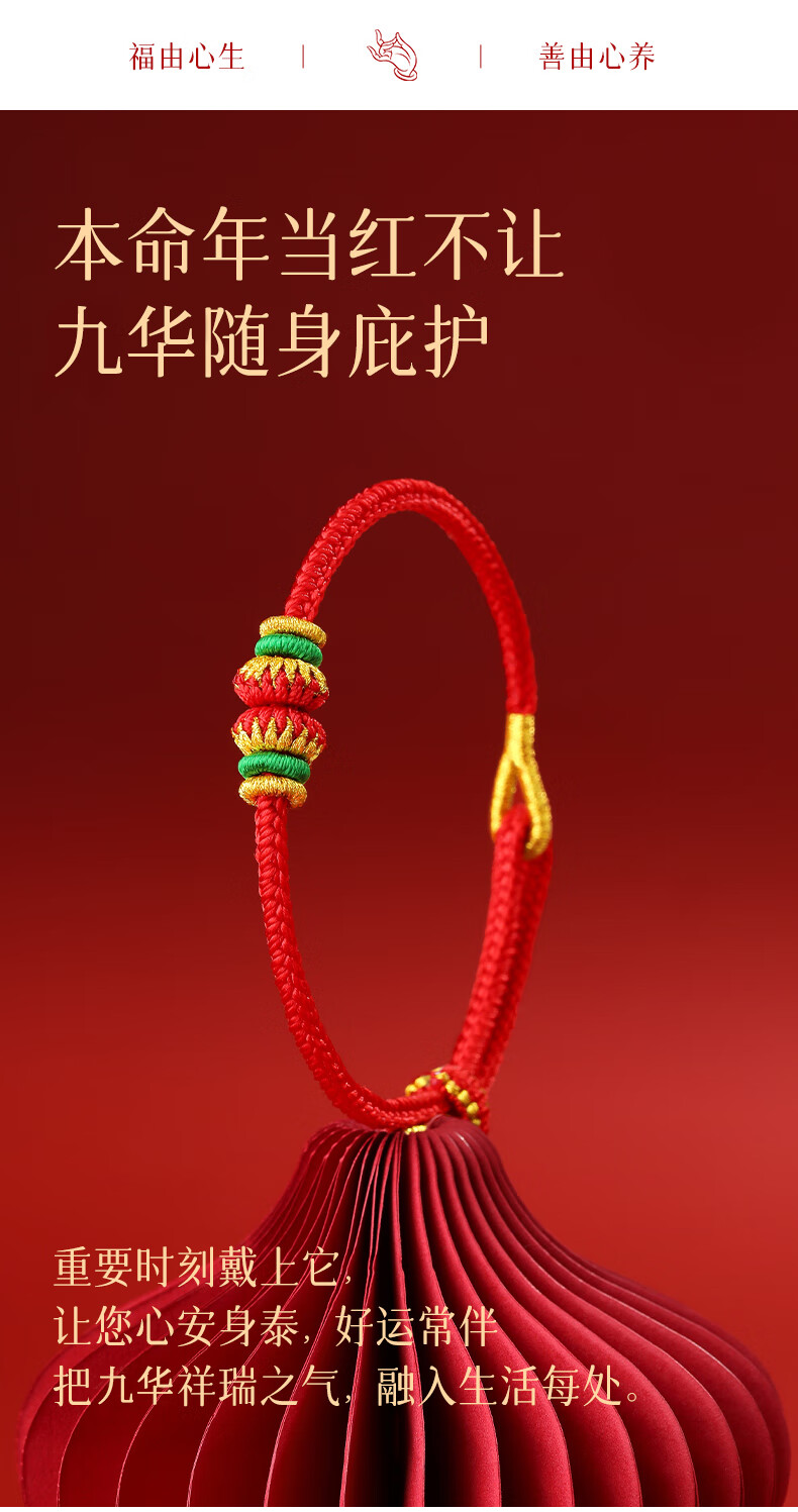 Jiuhuashan zodiac year red rope 2026 zodiac year of the horse small gold bead bracelet female amulet Valentine's Day gift girlfriend practical red rope bracelet-auspicious red style