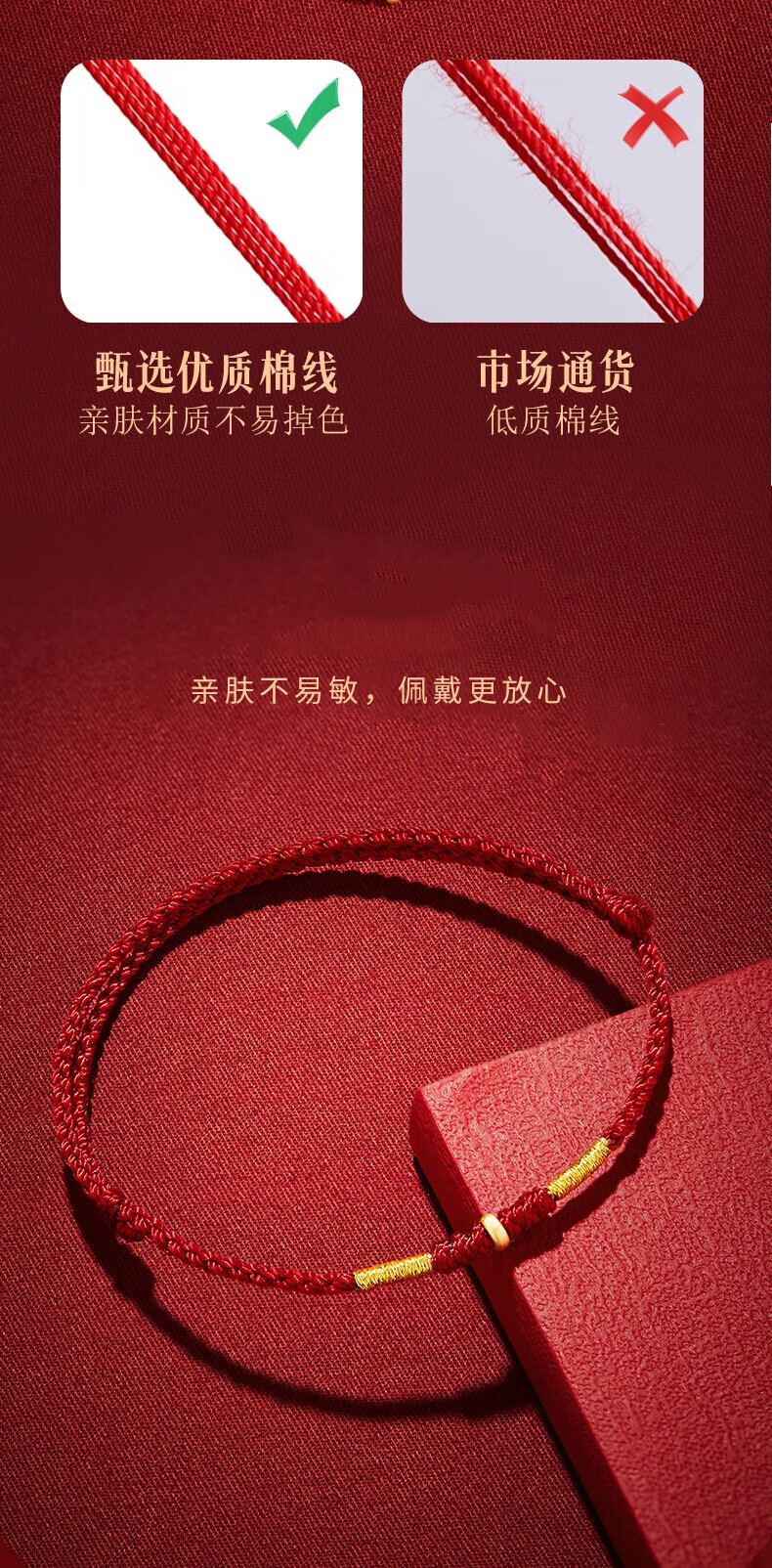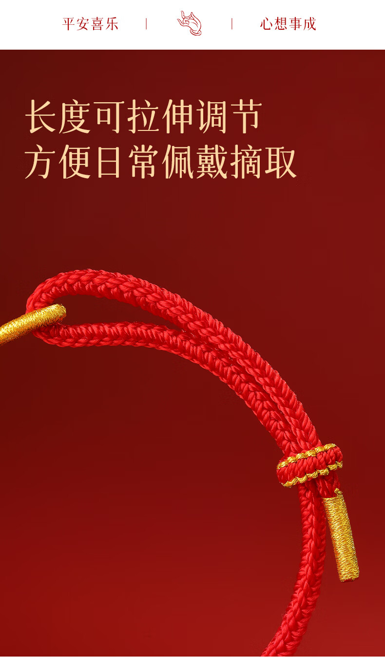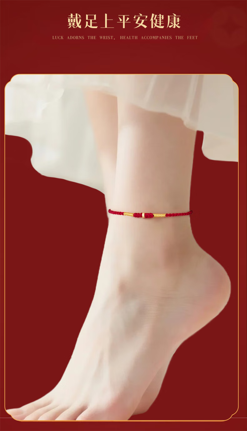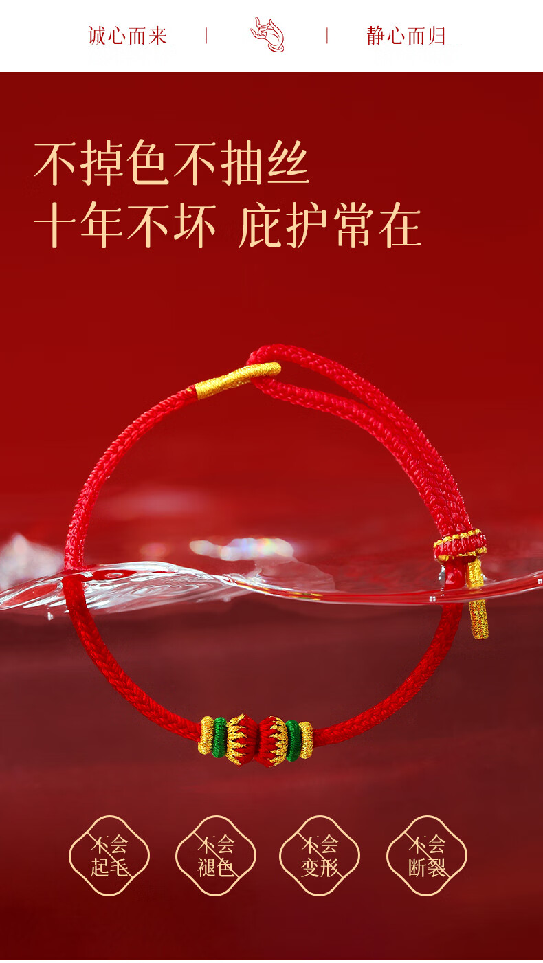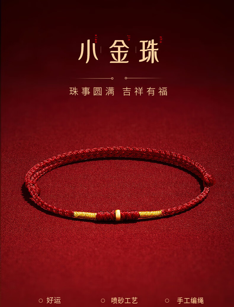 Jiuhuashan zodiac year red rope 2026 zodiac year of the horse small gold bead bracelet female amulet Valentine's Day gift girlfriend practical red rope bracelet-auspicious red style
