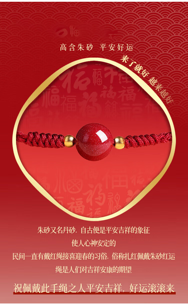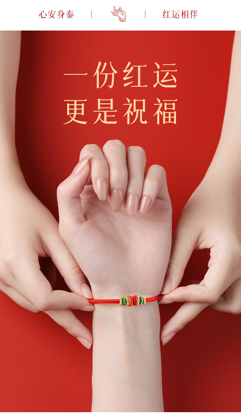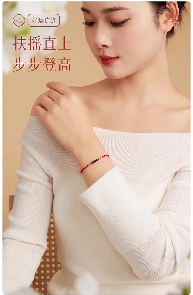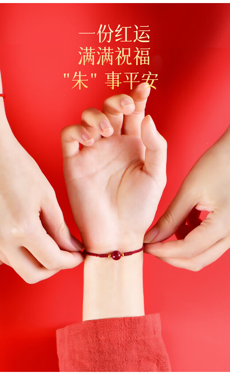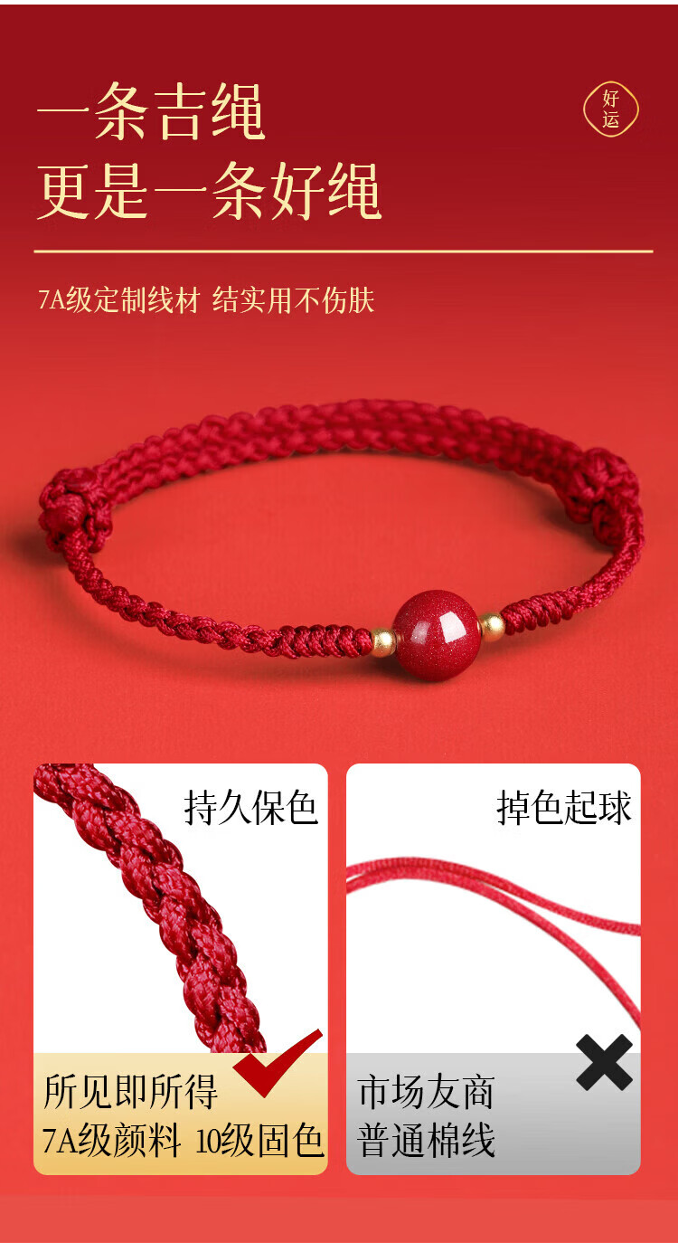 Jiuhuashan zodiac year red rope 2026 zodiac year of the horse small gold bead bracelet female amulet Valentine's Day gift girlfriend practical red rope bracelet-auspicious red style
