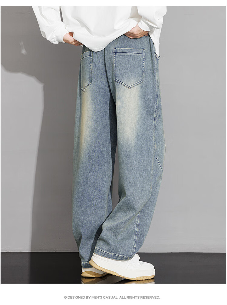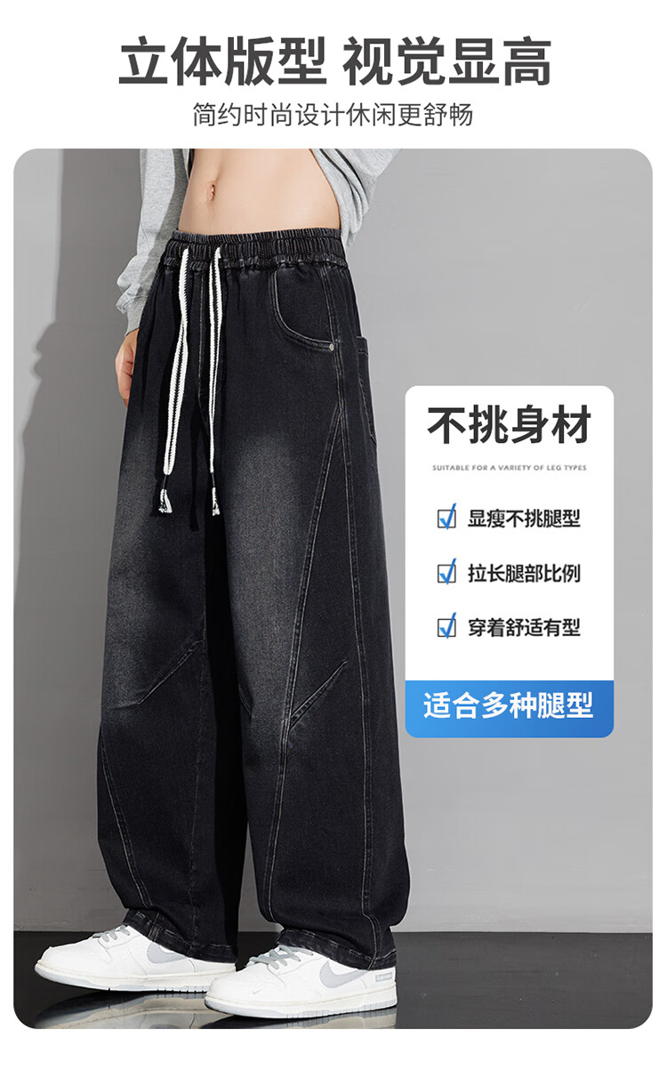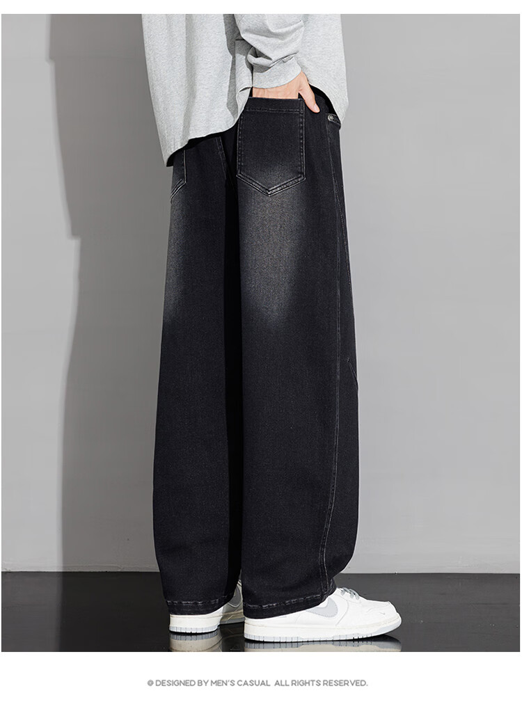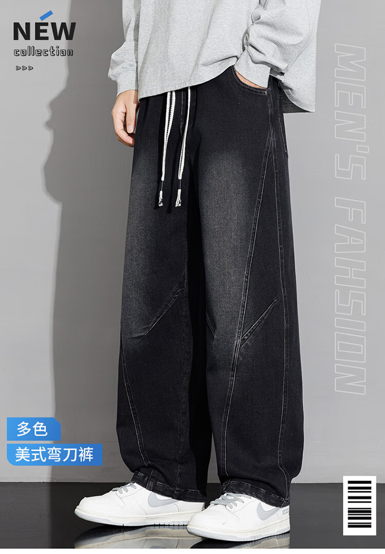 Nasawassup scimitar jeans men's autumn and winter new casual straight pants trendy brand plus velvet loose plus fat large size wide leg pants black plus velvet style L recommended 115-135Jin Jin equals 0.5 kg