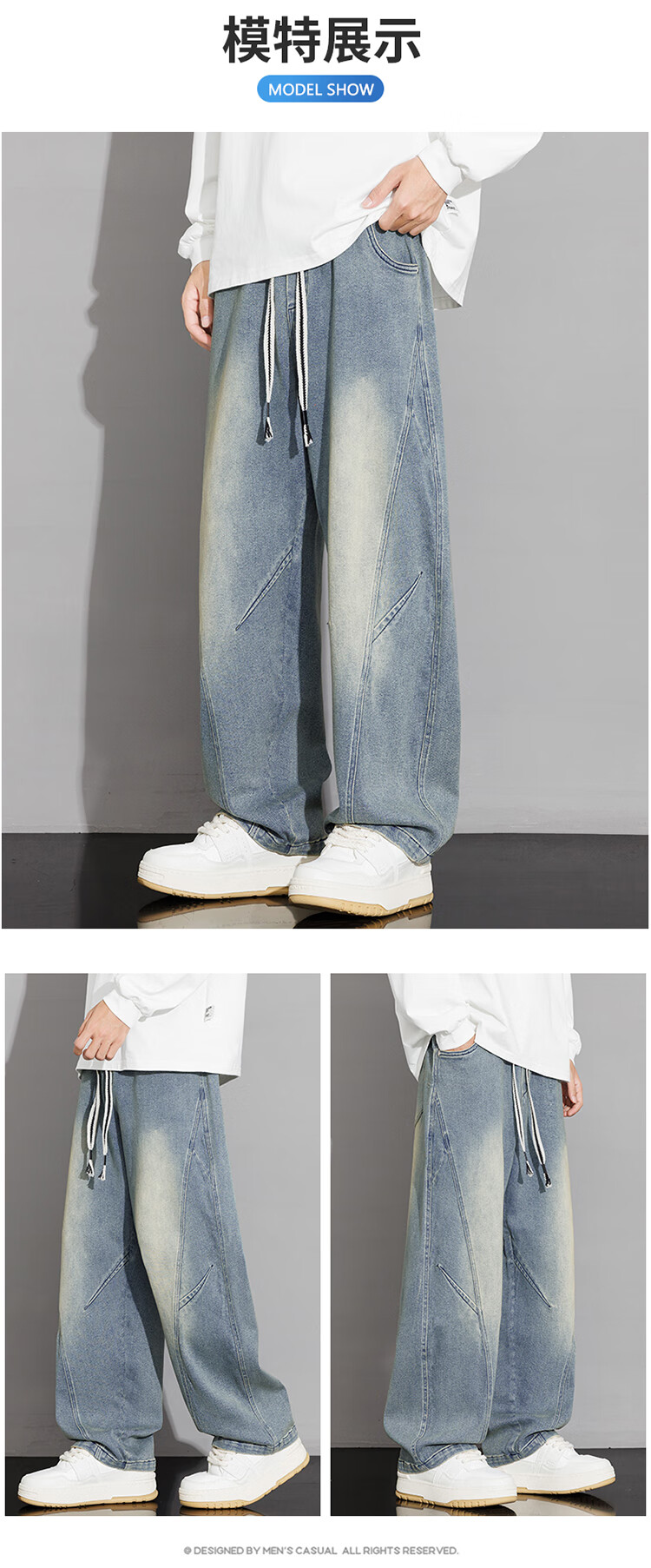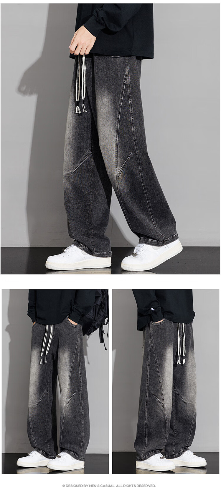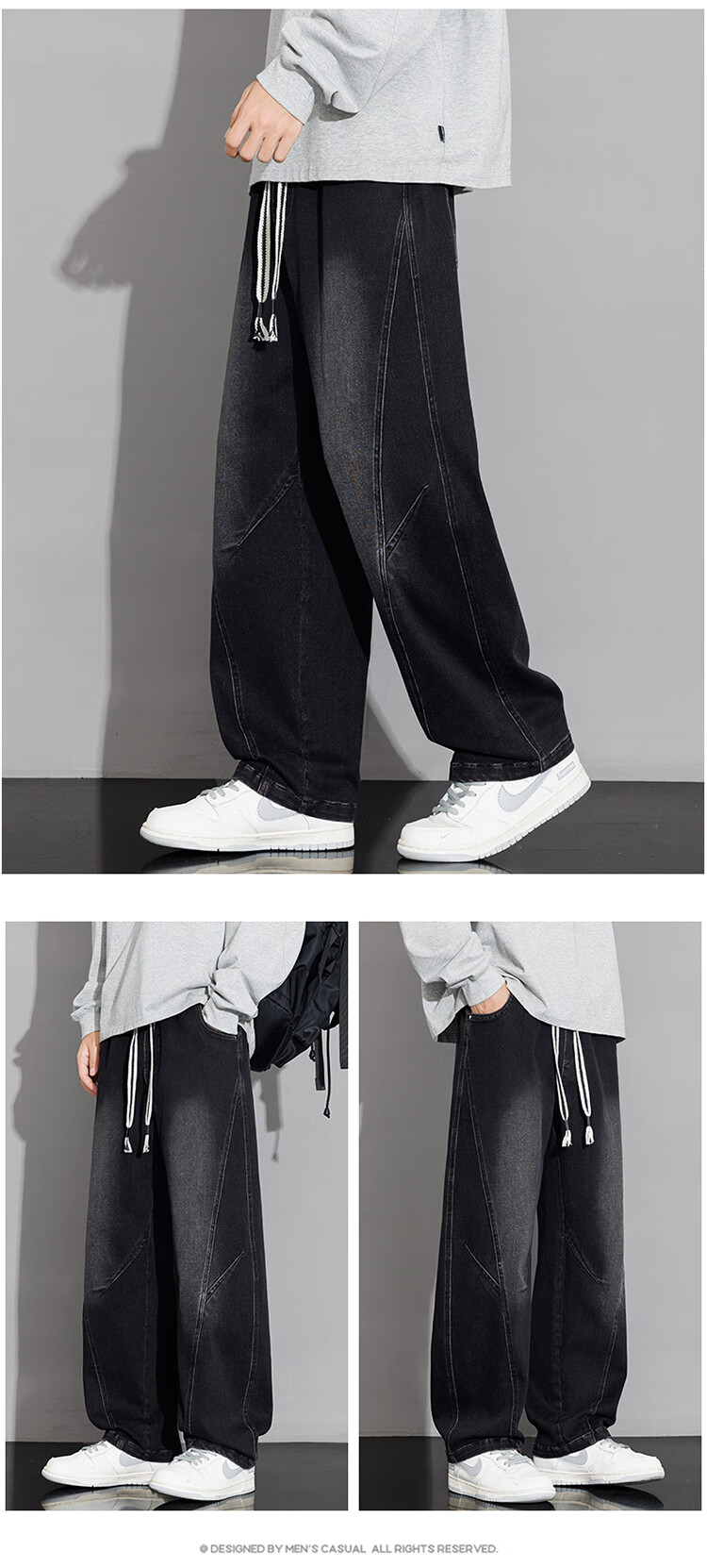 Nasawassup scimitar jeans men's autumn and winter new casual straight pants trendy brand plus velvet loose plus fat large size wide leg pants black plus velvet style L recommended 115-135Jin Jin equals 0.5 kg