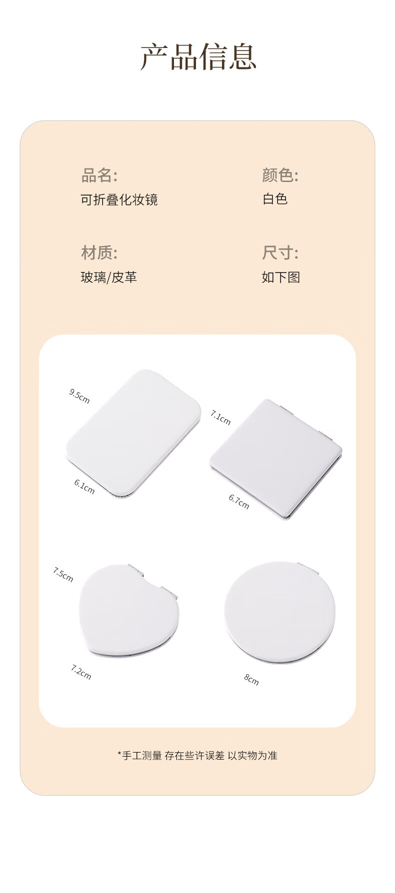 Shantou Lincun Mirror Portable Mirror Folding Portable Mini Mirror Double-sided Handheld Mirror for Male and Female Students 61*95 Rectangular HD Portable Mirror 72*75 Heart Shaped HD Portable Mirror