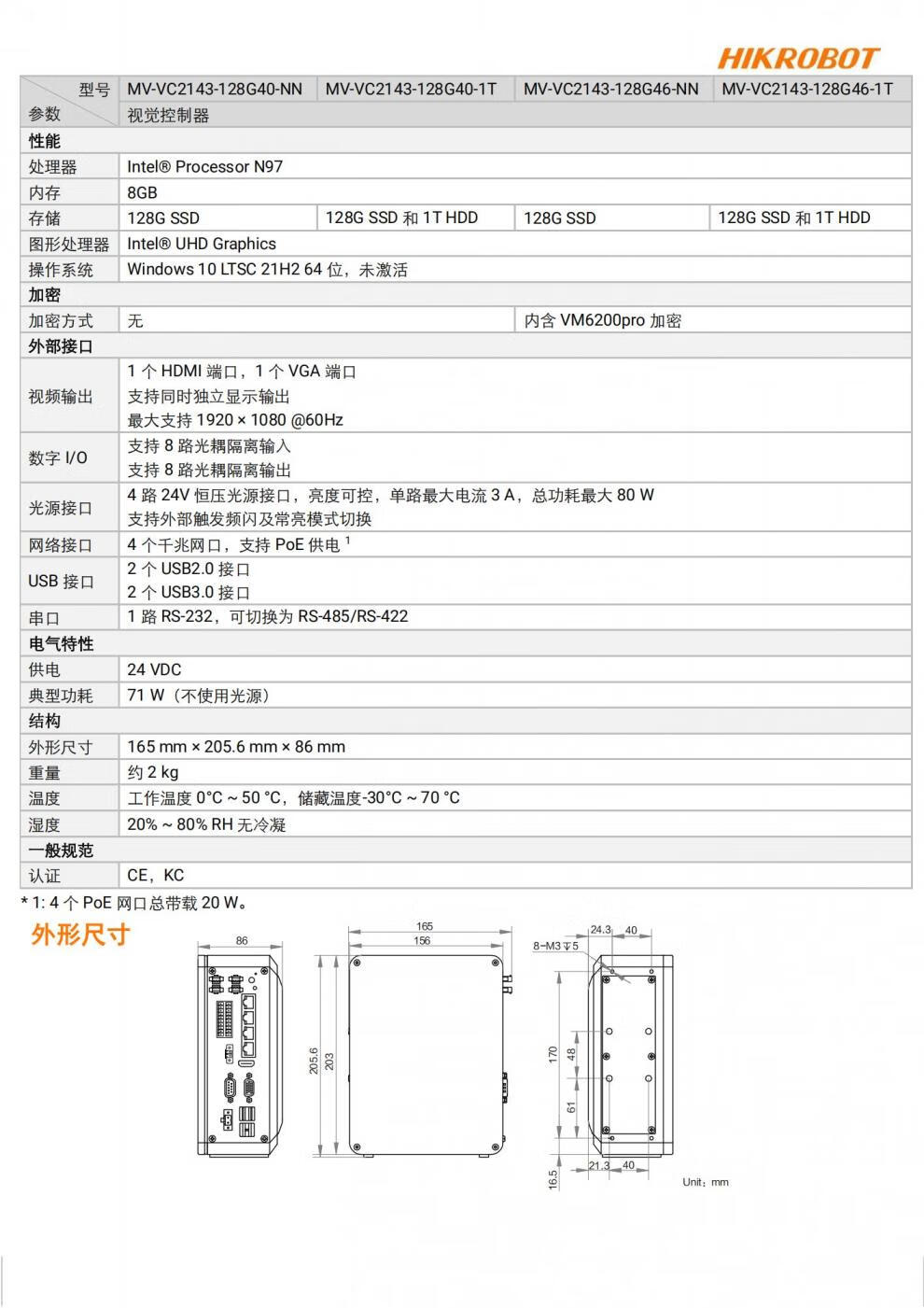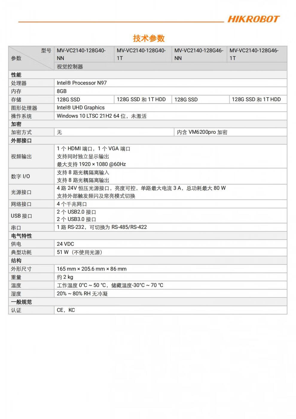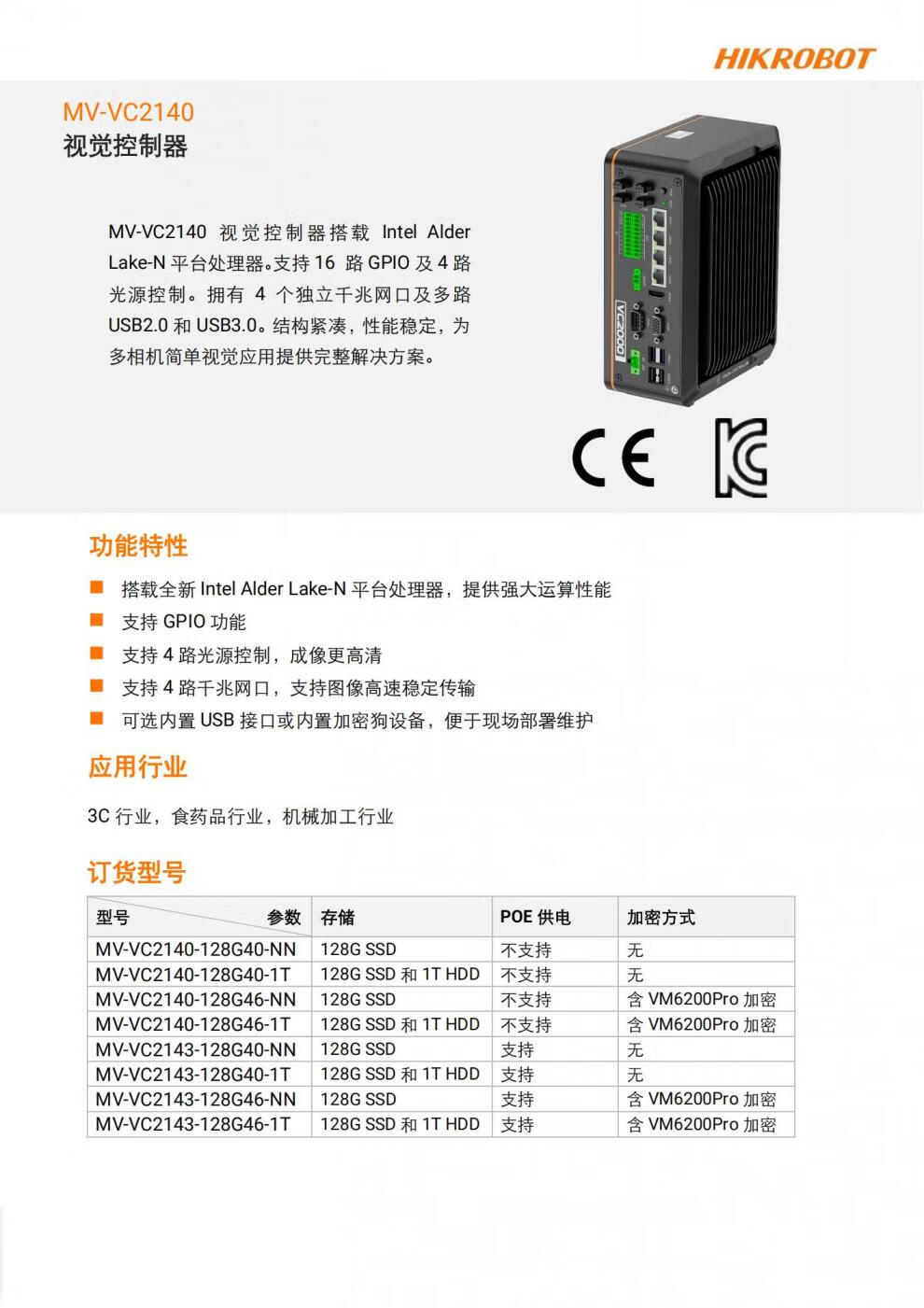 Hikvision Robot Vision Controller MV-VC2140-128G40-NN/VC2143-128G46 optional VM. The unit price of the product is the price before tax.