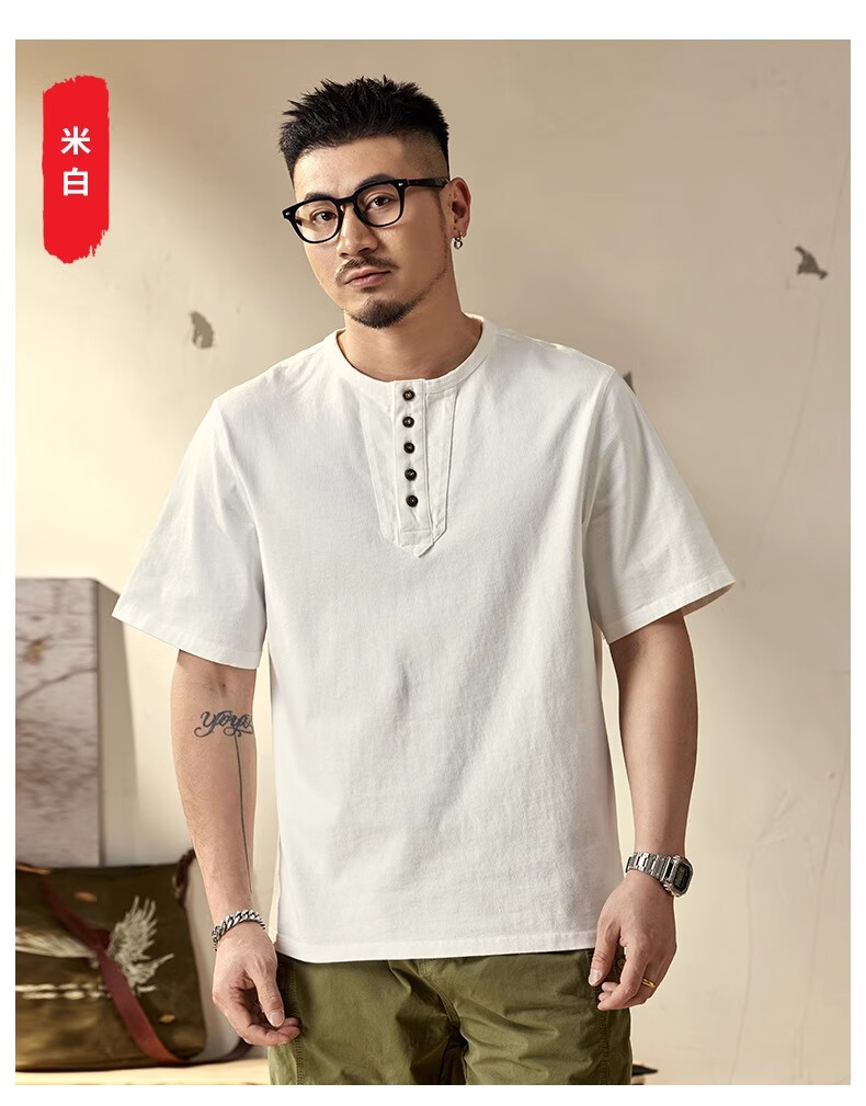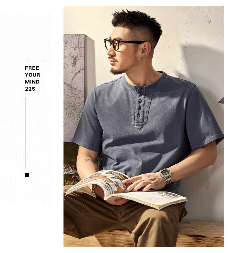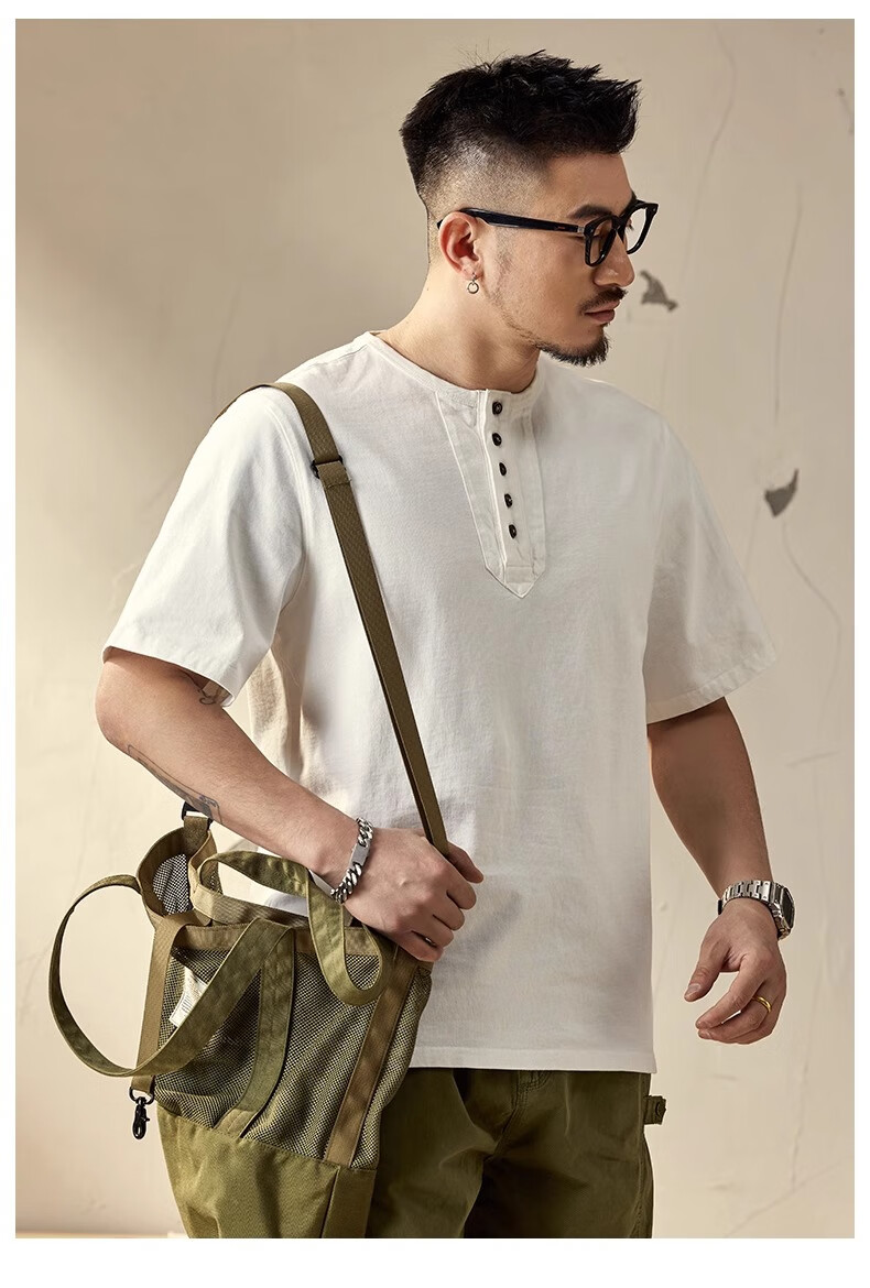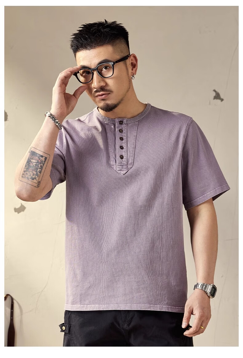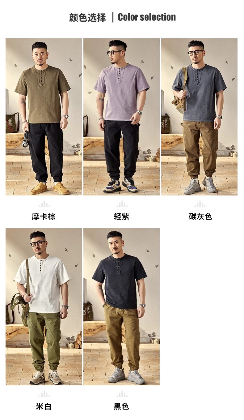 Xiaohongshu's popular high-end retro short-sleeved T-shirt for men in summer loose large size tough guy casual Henry collar bottoming shirt Mocha brown S S90-115Jin Jin is equal to 0.5 kg