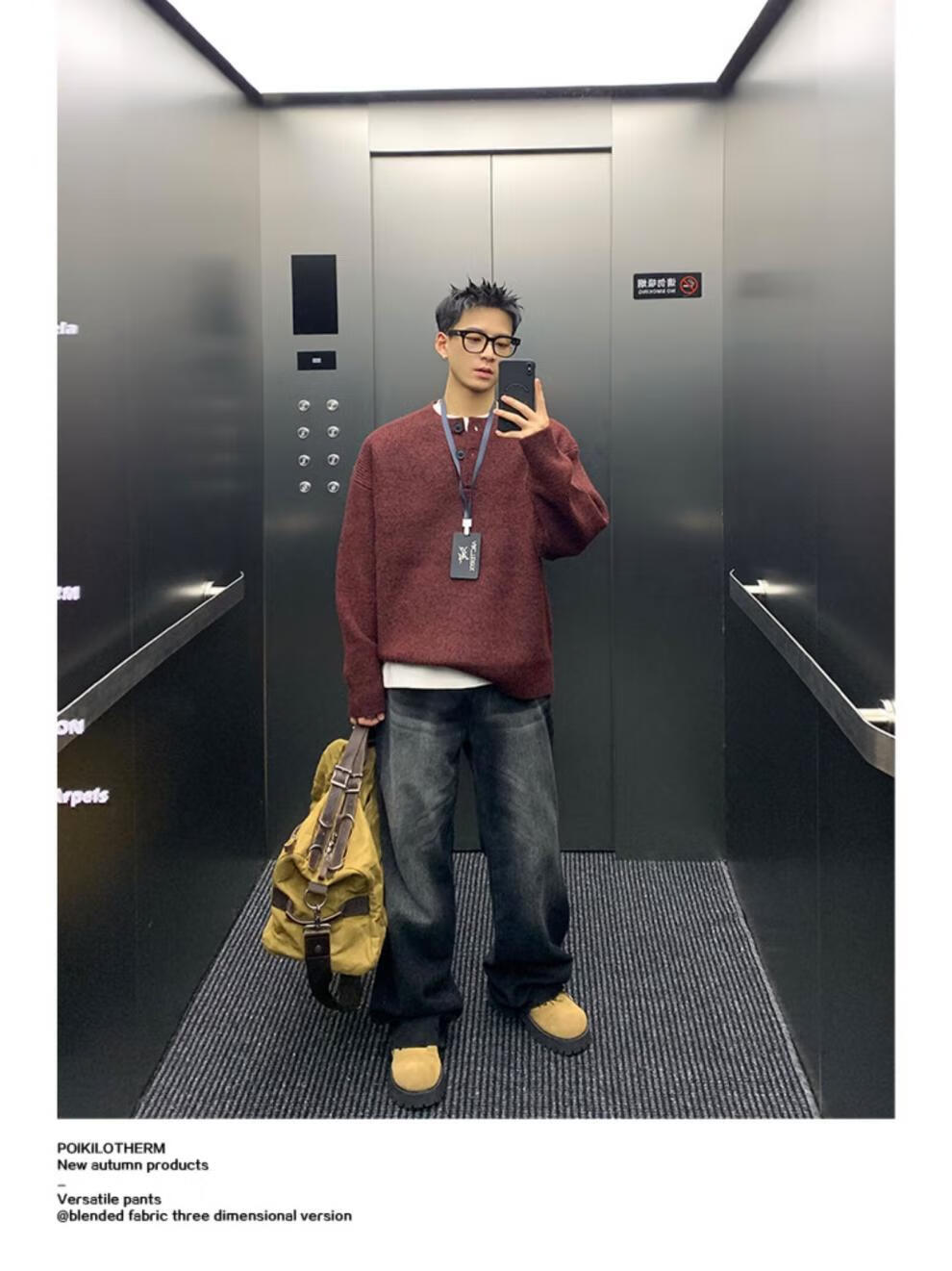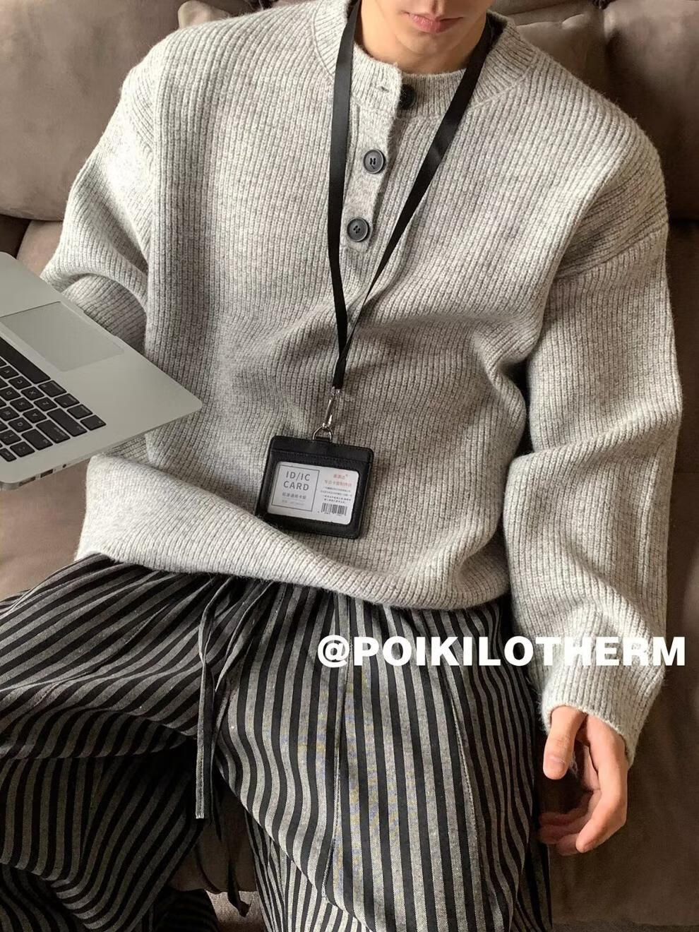 NSFG American Henry Neck Sweater Men's Winter Lazy Style Bottoming Sweater Casual Jacket Uniform Tops for Men and Women Light Gray L (100-115Jin Jin is equal to 0.5kg)