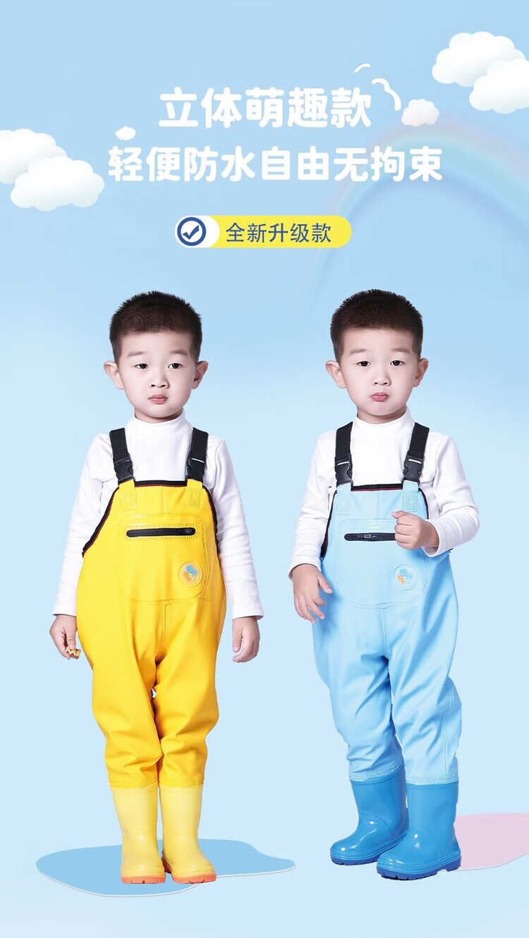 RSRDDY waders, children's breathable water play one-piece waders, kindergarten waterproof clothes, children's rain boots for men and women, blue fish zipper pocket - children's overalls, one size fits all 1 piece 24, shoe inner length 15cm