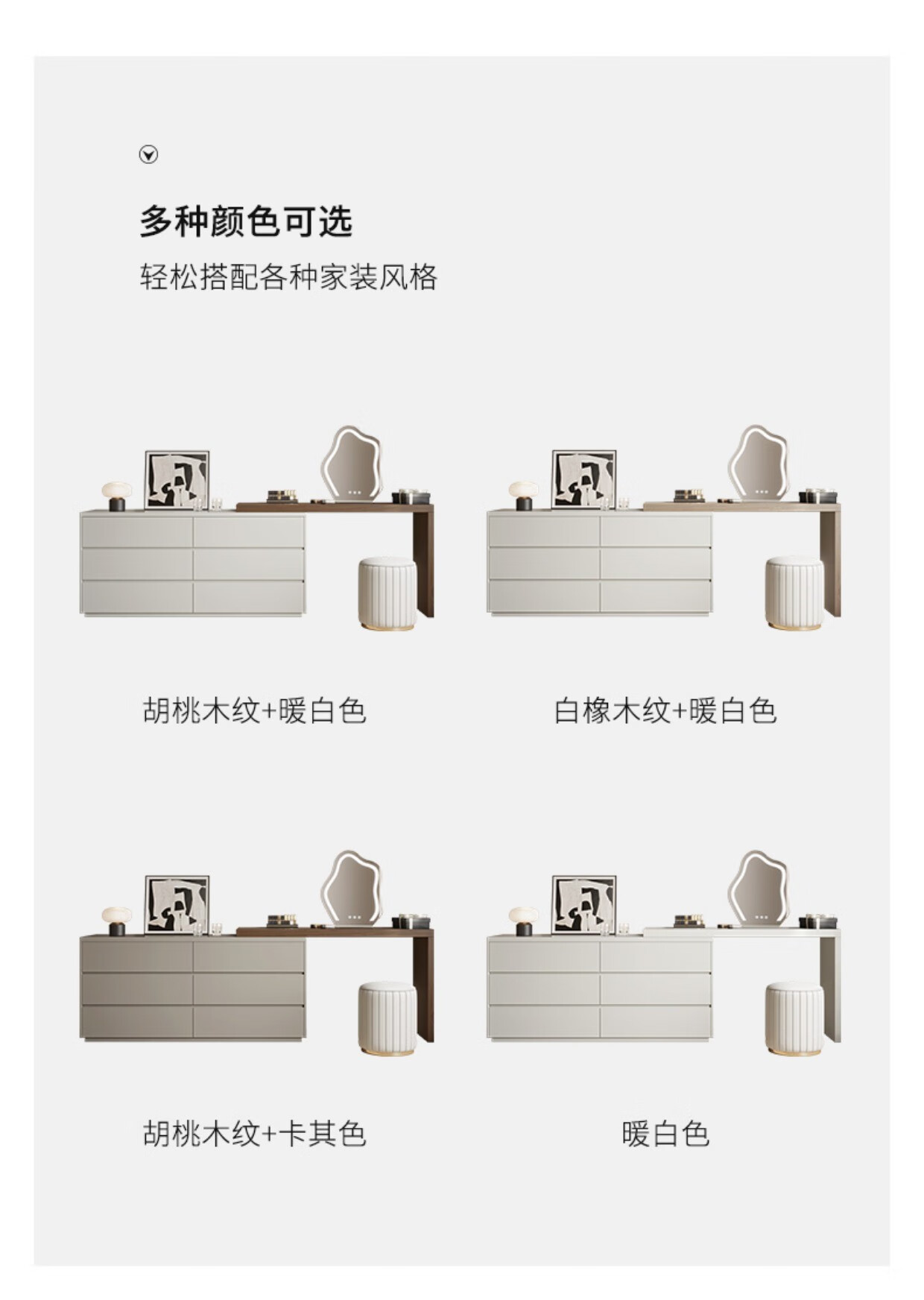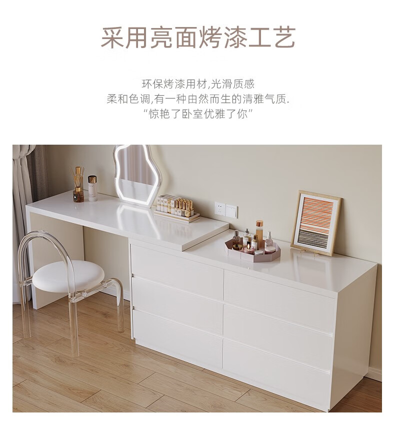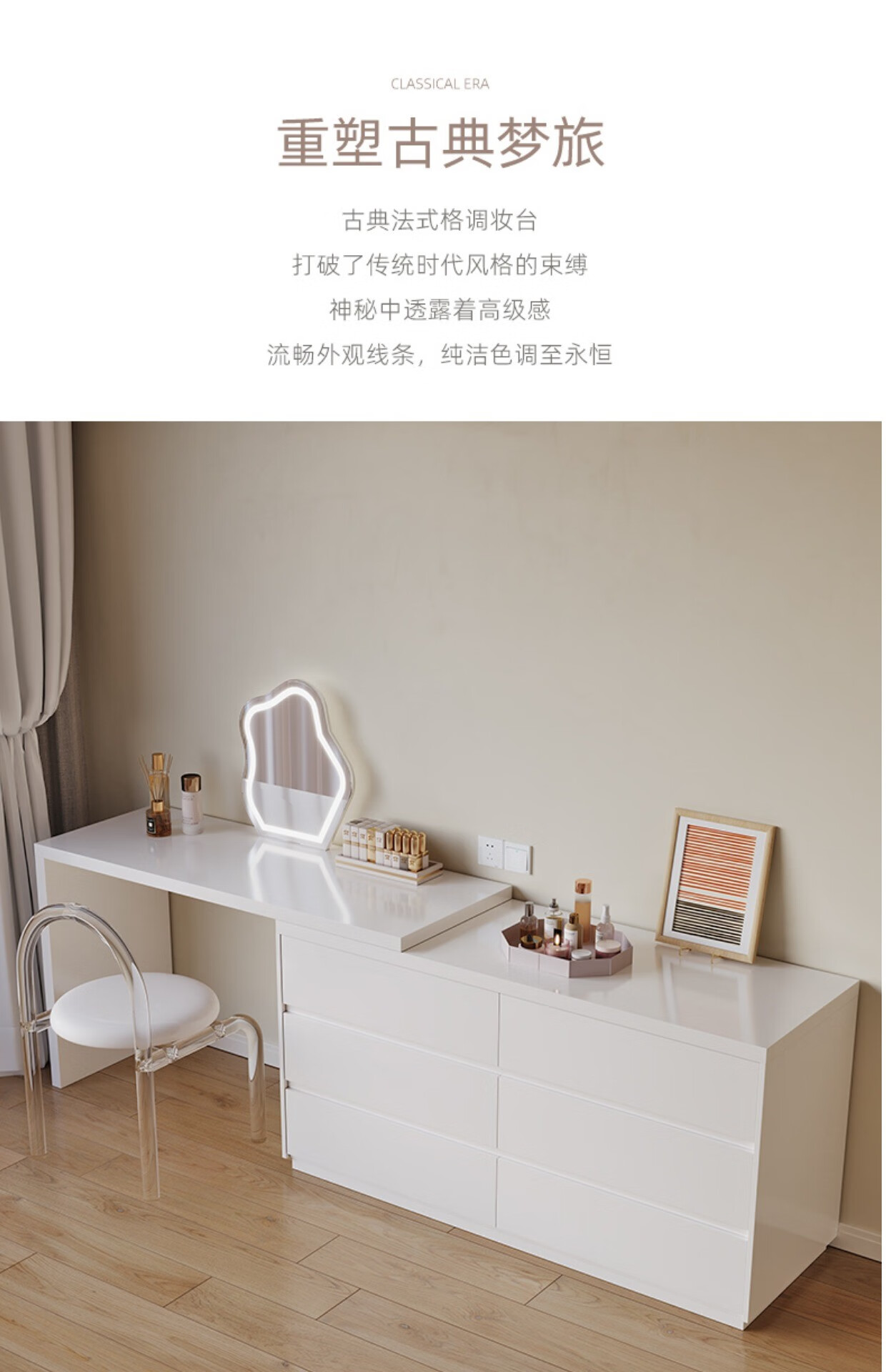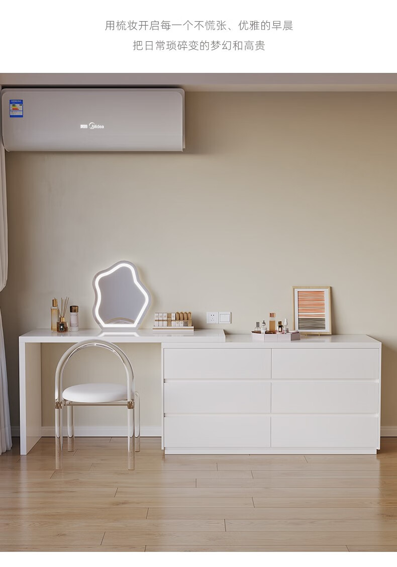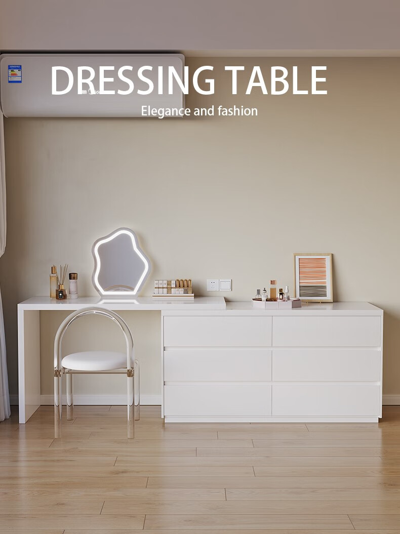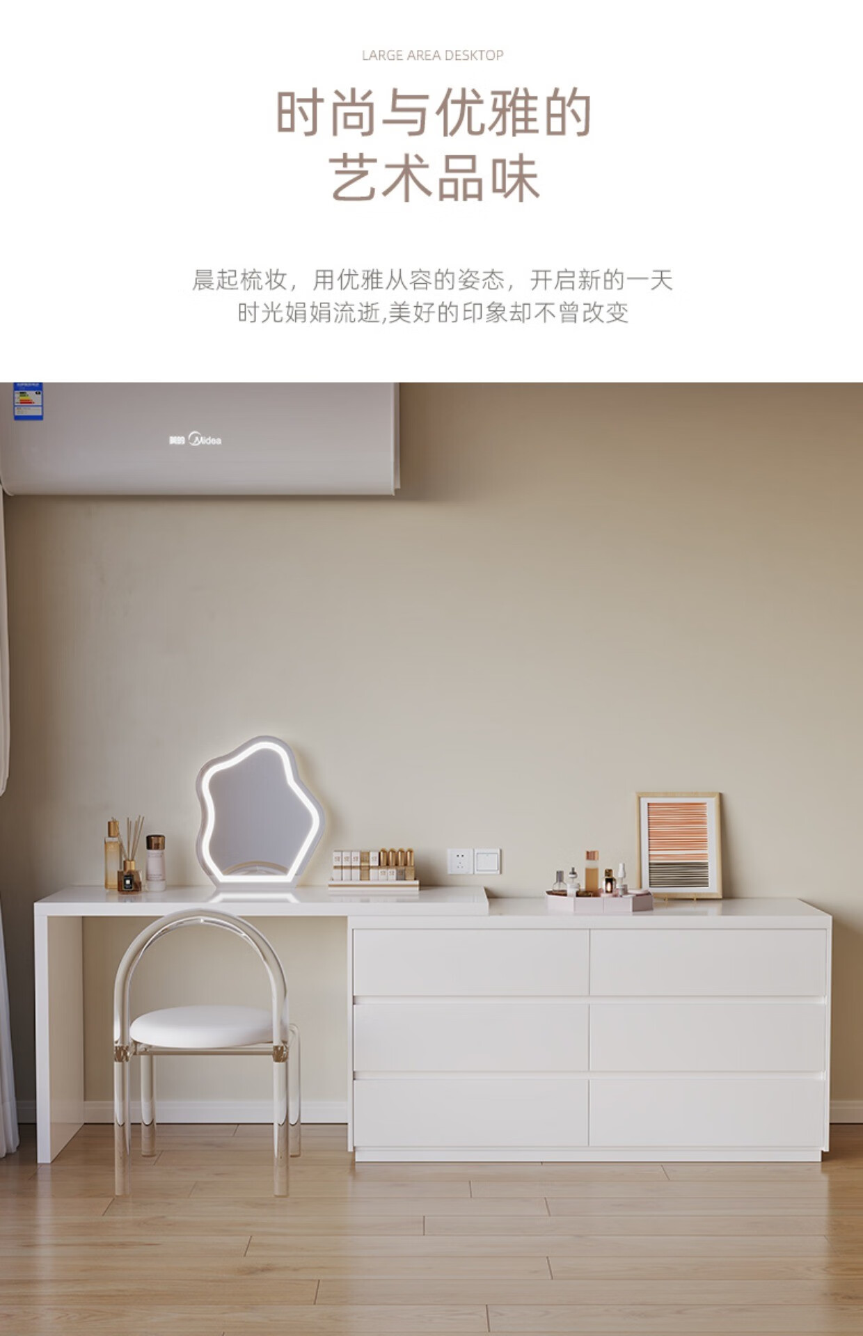 Bedside cabinet bedroom dresser storage cabinet combination multifunctional dressing table bedside cabinet ins modern simple a white oak grain + warm white 1 point 3 meters retractable dressing table + stool