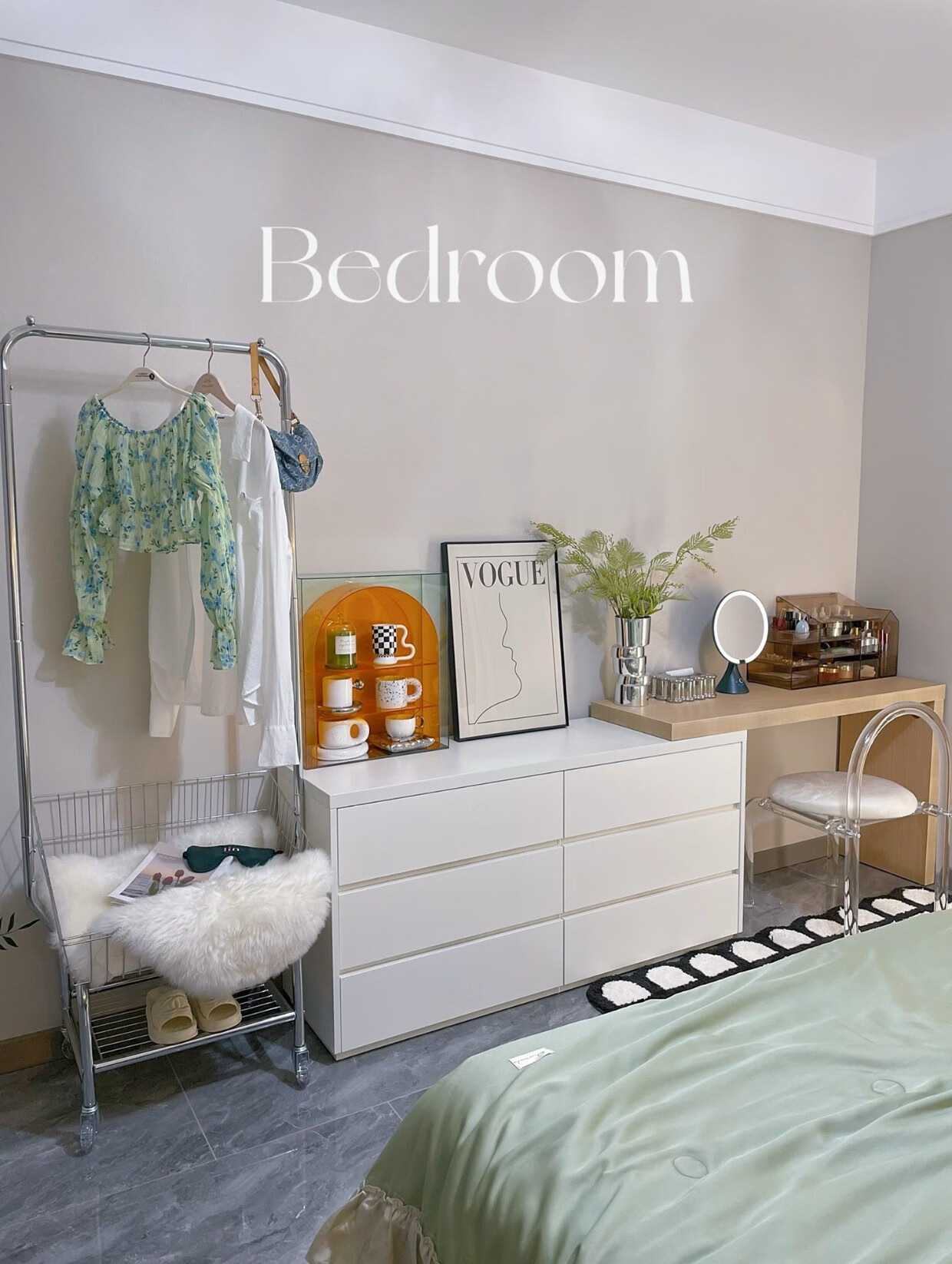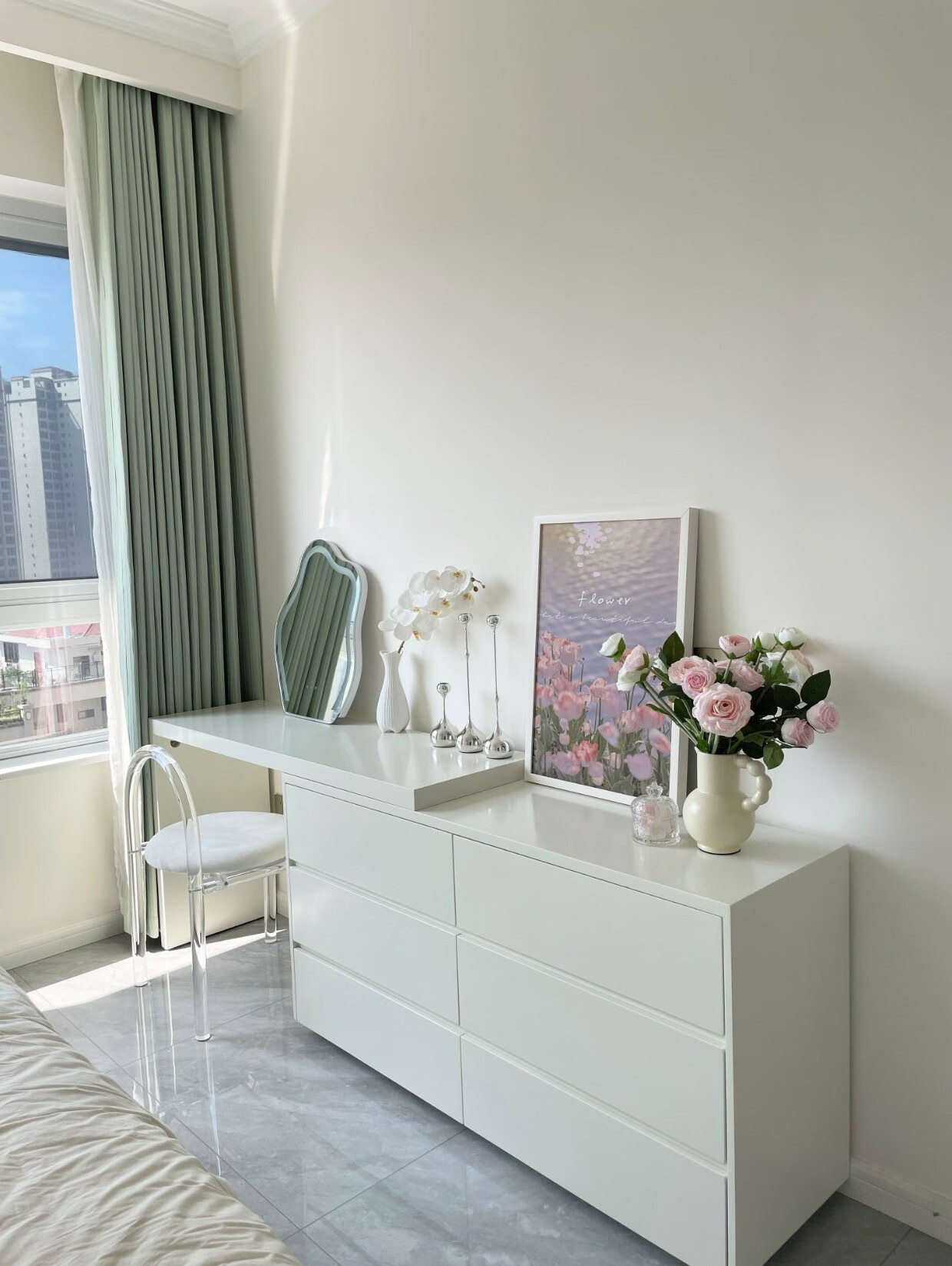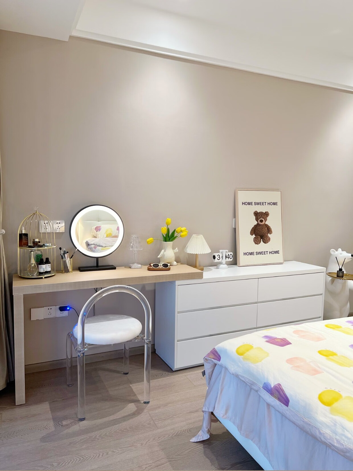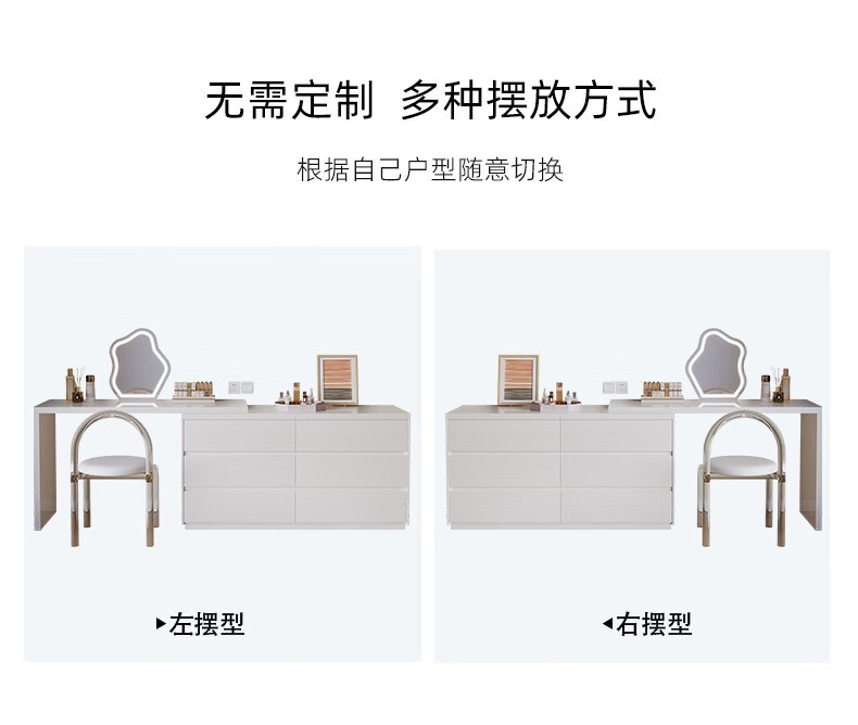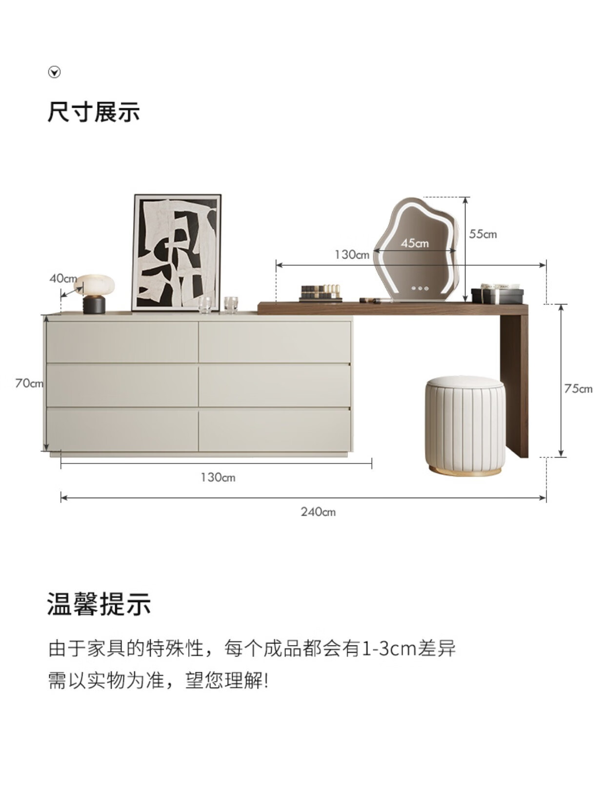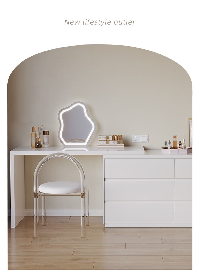 Bedside cabinet bedroom dresser storage cabinet combination multifunctional dressing table bedside cabinet ins modern simple a white oak grain + warm white 1 point 3 meters retractable dressing table + stool
