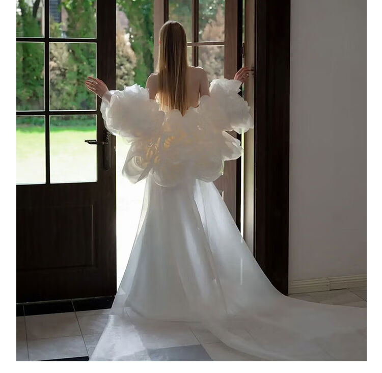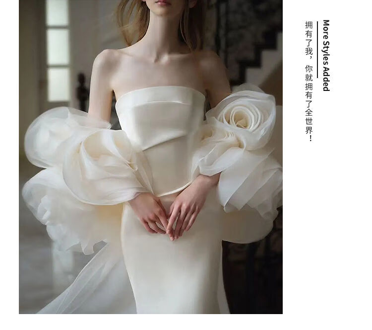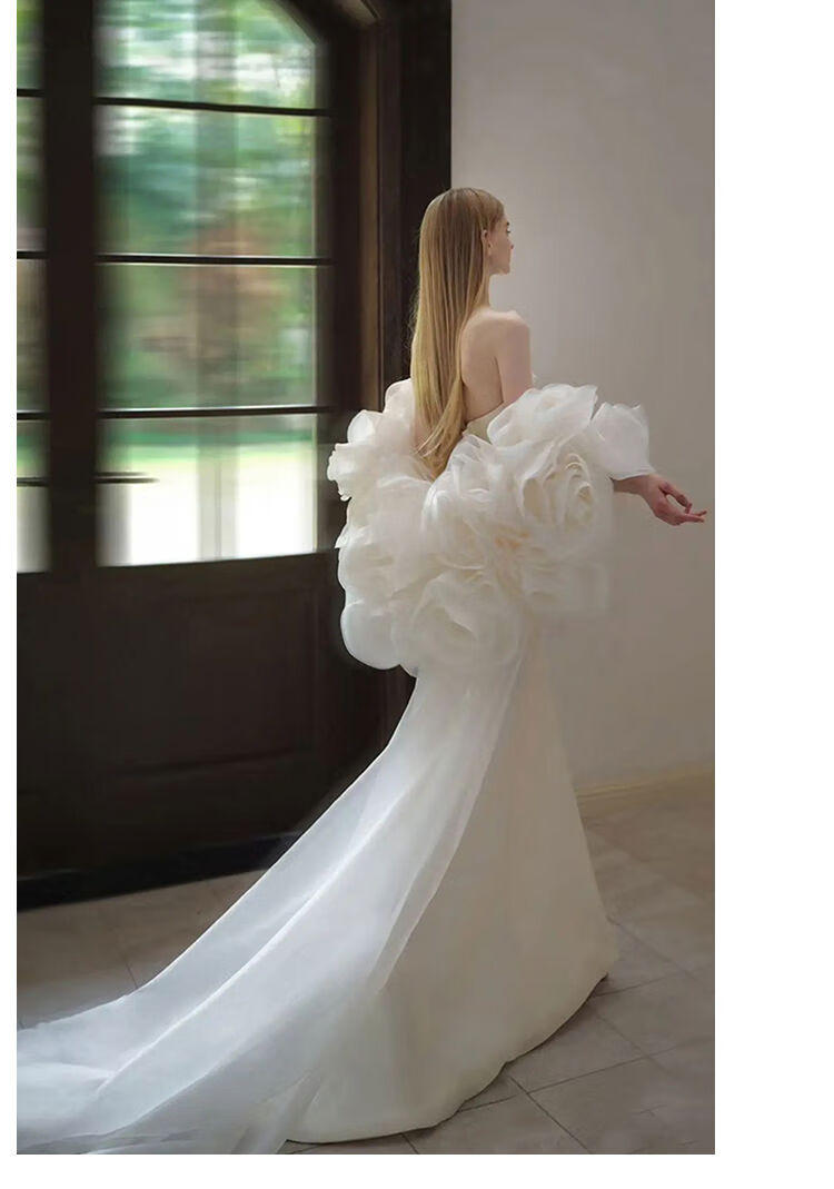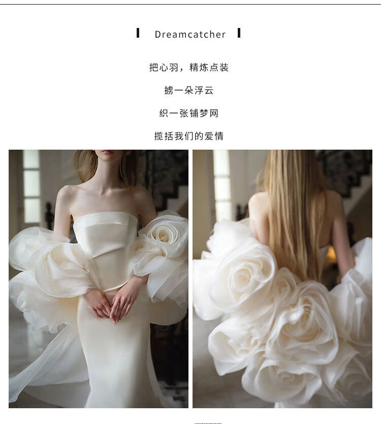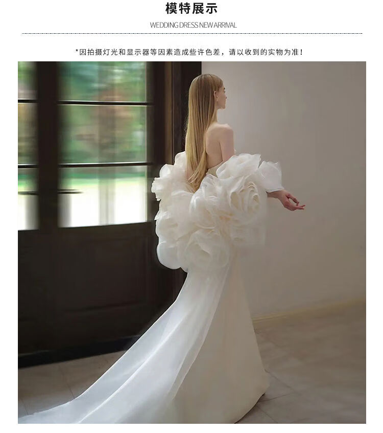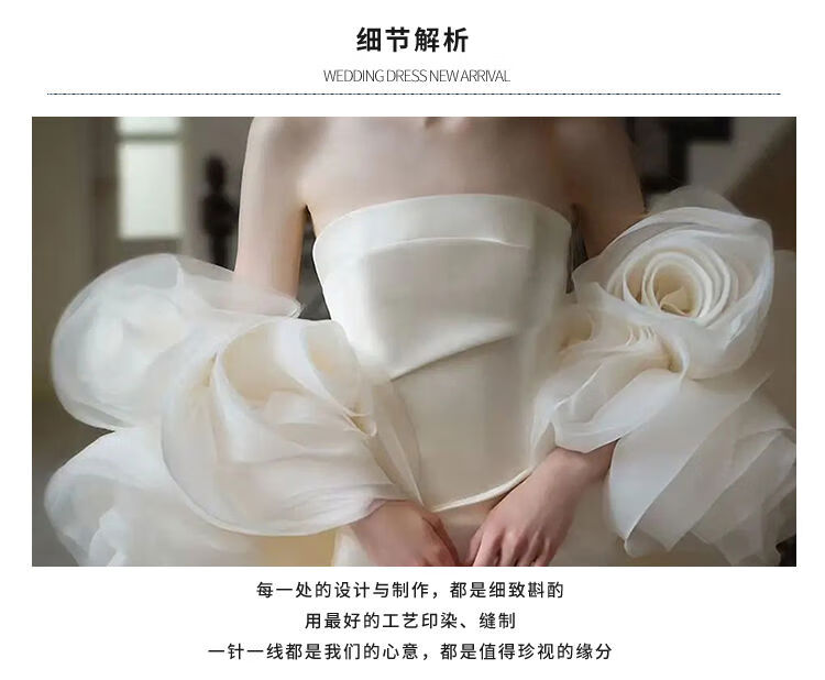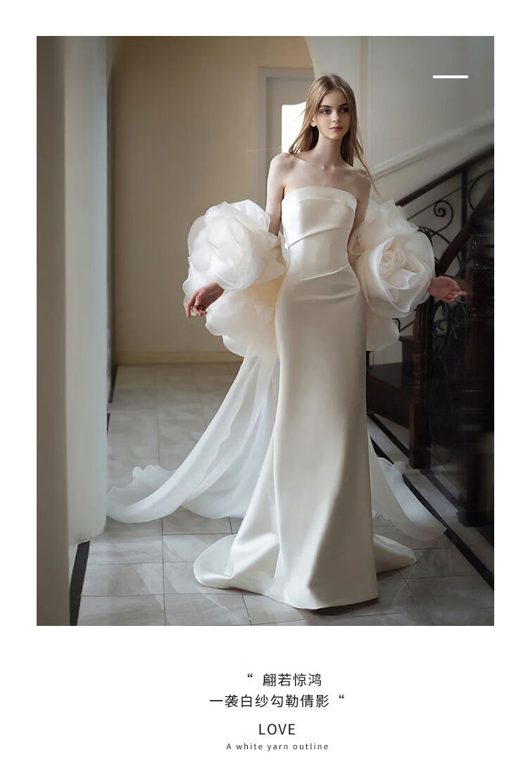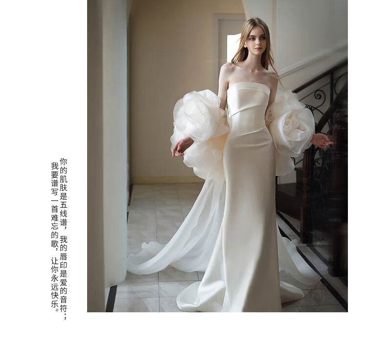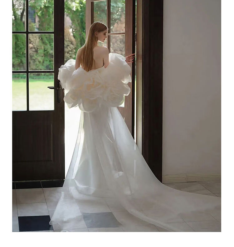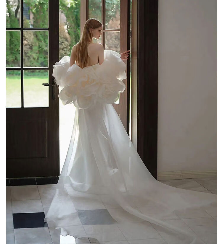 French tube top wedding dress 2025 new heavy industry sense flower tail main yarn bride going out wedding dress S S