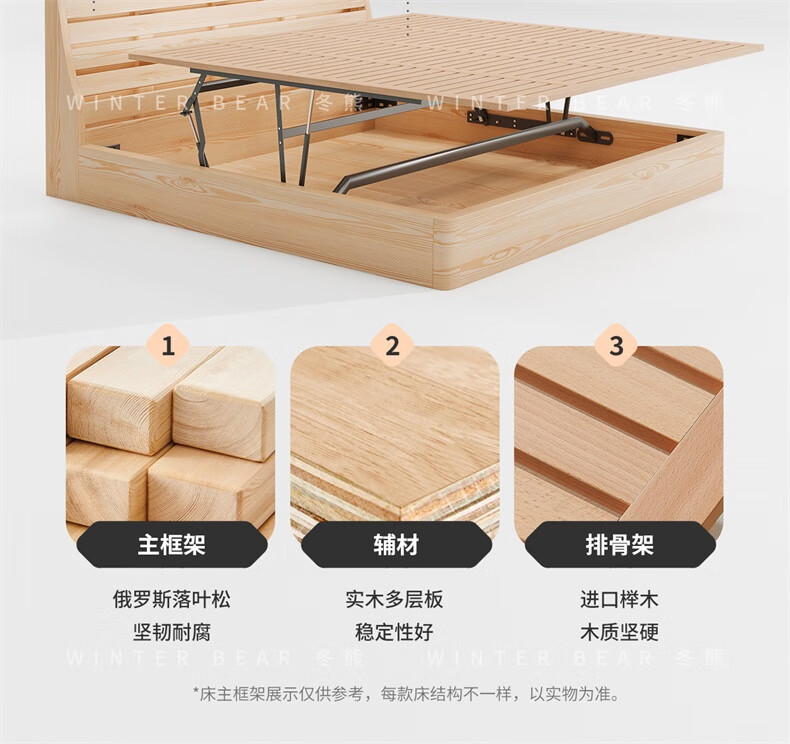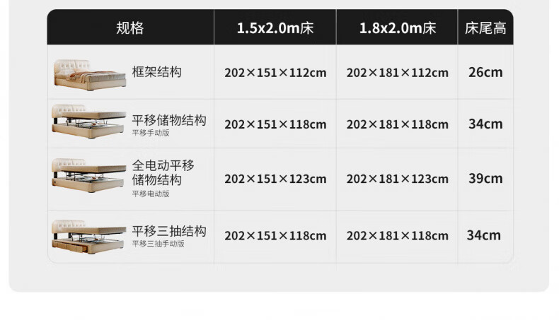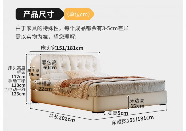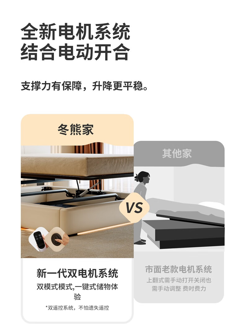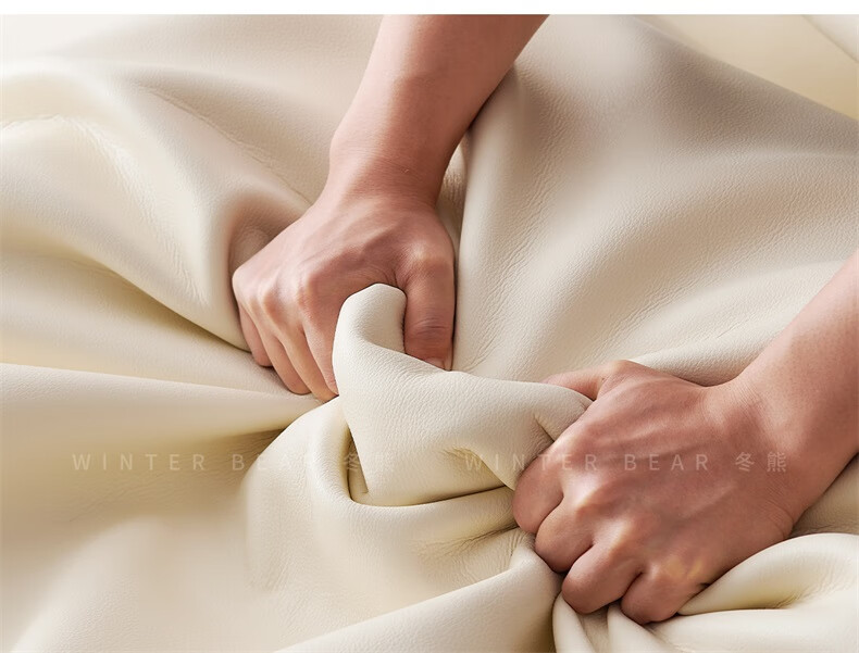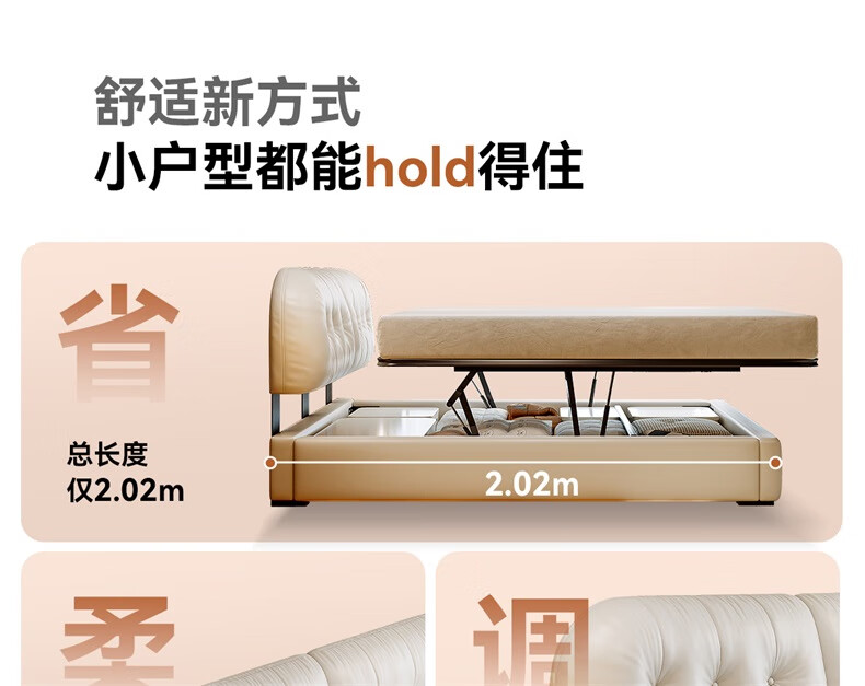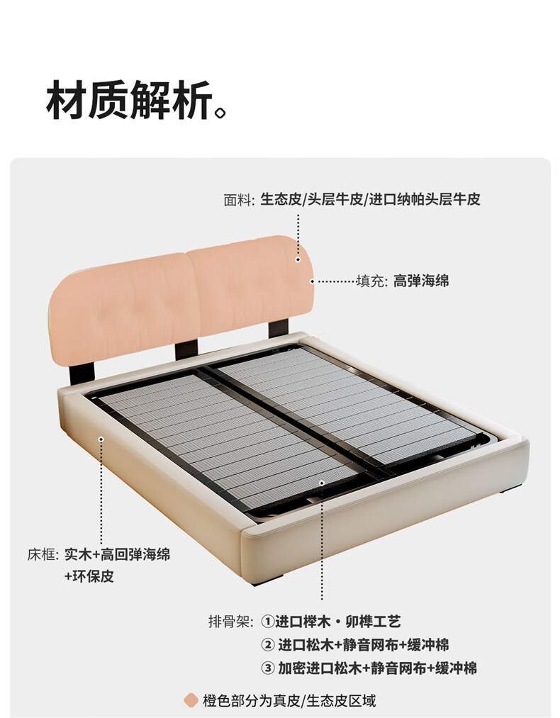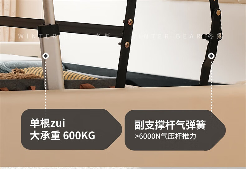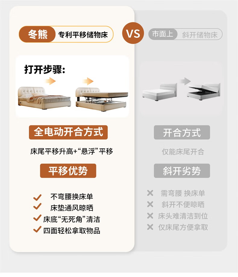 Winter Bear Toffee Cloud Bed Ultra-Thin Bedside Leather Puff Cream Style Double Master Bedroom High Box Storage Translation Bed Imported Cowhide Bed/Full Solid Wood Beech Rib Frame 1800mm*2000mm-Translation Storage Structure