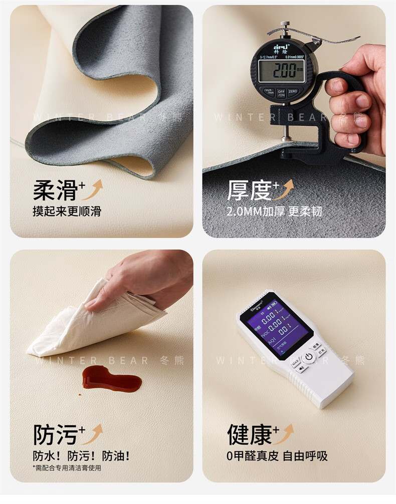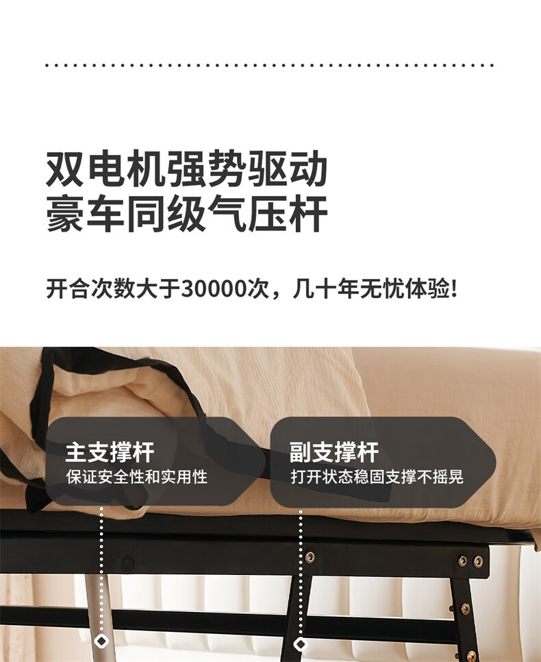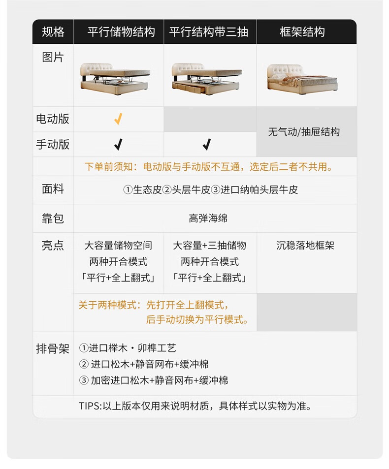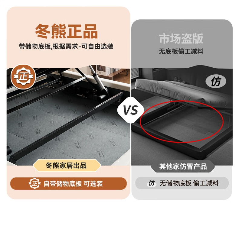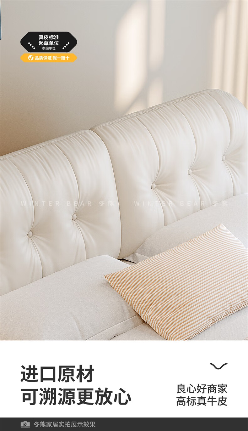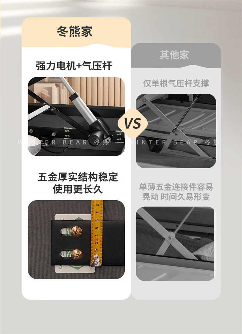 Winter Bear Toffee Cloud Bed Ultra-Thin Bedside Leather Puff Cream Style Double Master Bedroom High Box Storage Translation Bed Imported Cowhide Bed/Full Solid Wood Beech Rib Frame 1800mm*2000mm-Translation Storage Structure