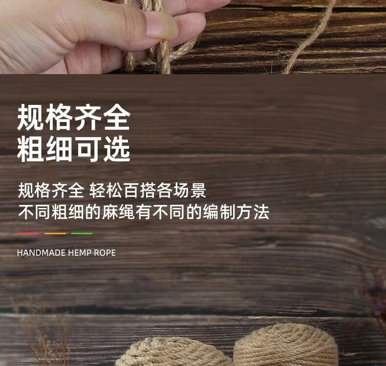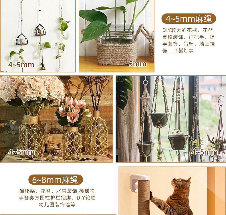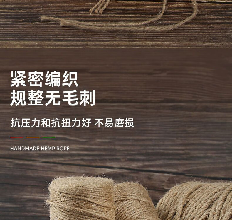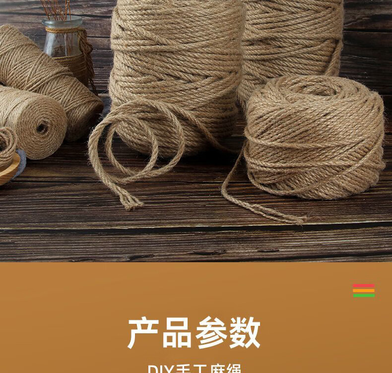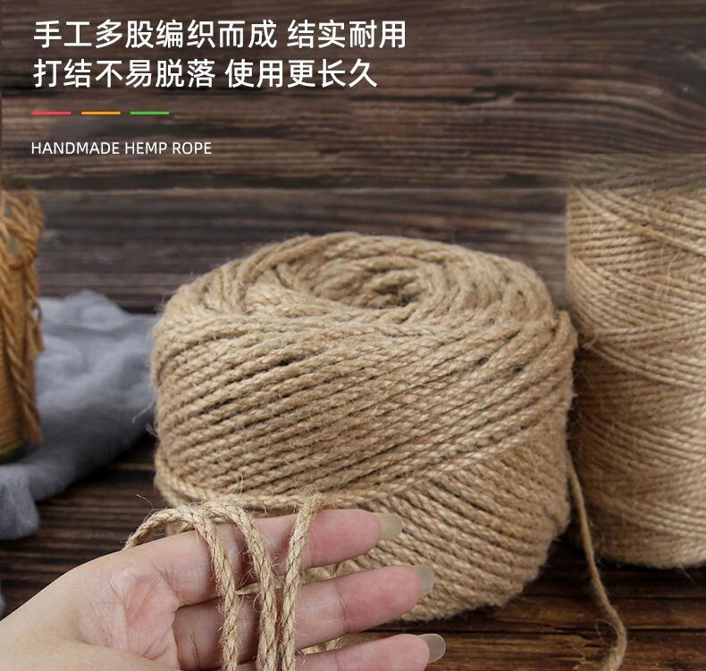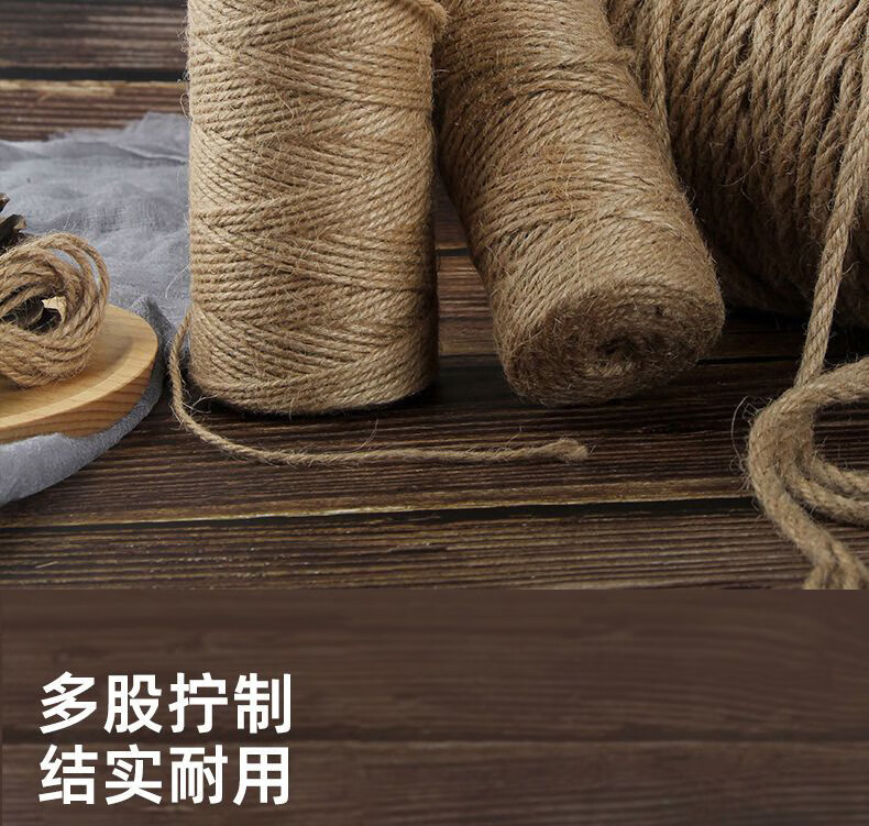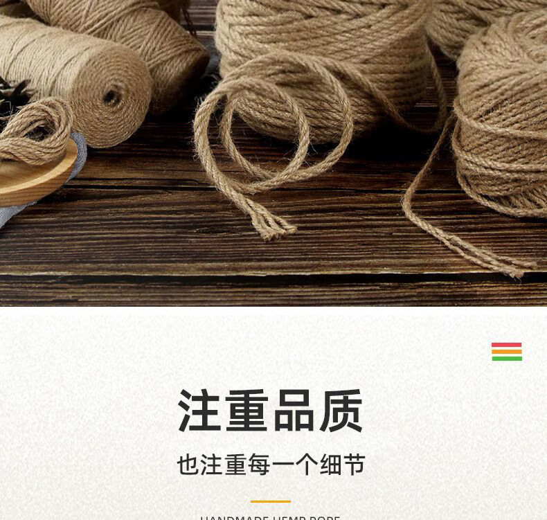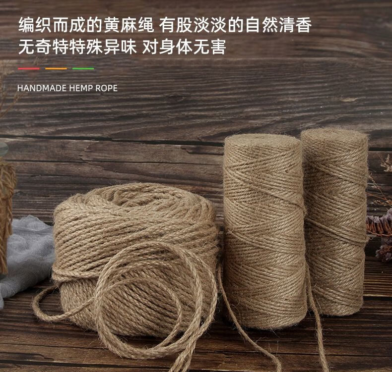 High-quality hemp rope DIY hand-decorated thick and thin hemp rope rope binding rope tag photo clothesline grid decorative mesh hemp rope thick and thin hemp rope cat climbing frame 2mm*50 meters package/group original color hemp rope