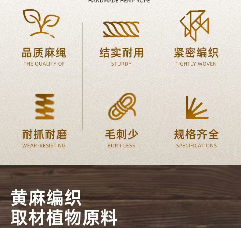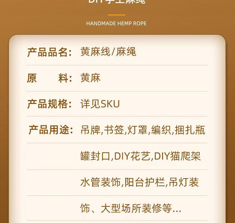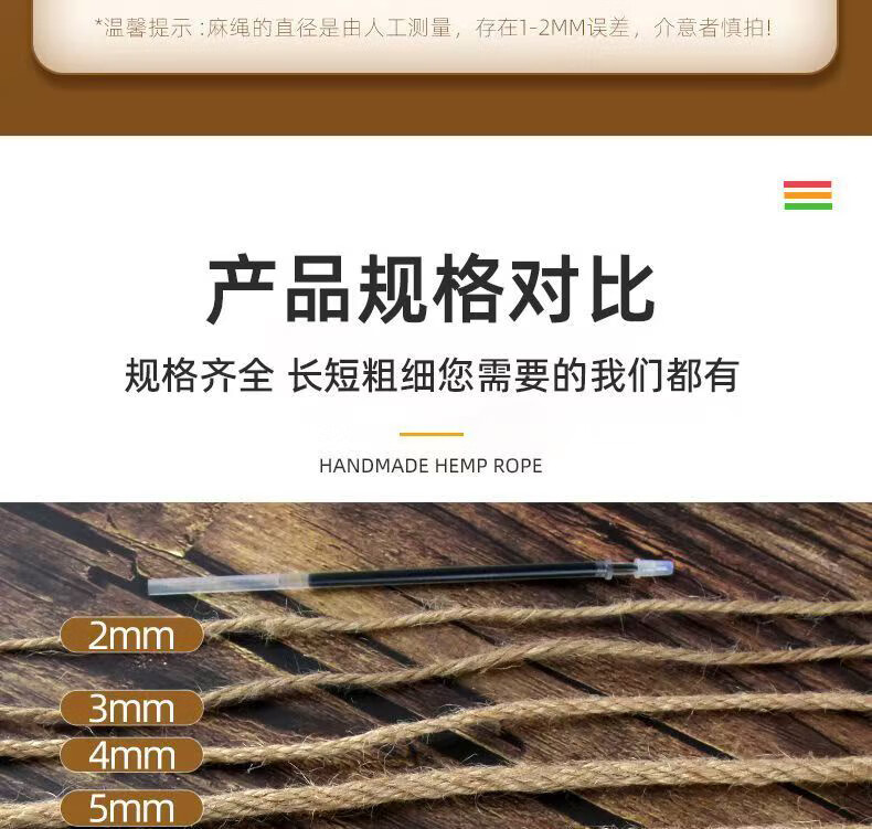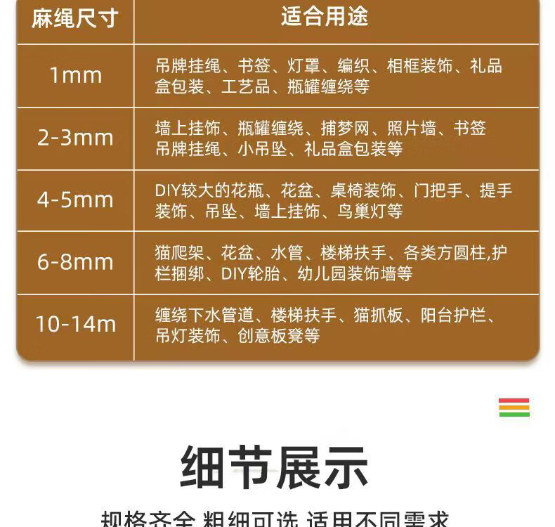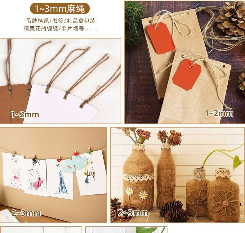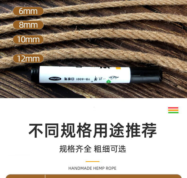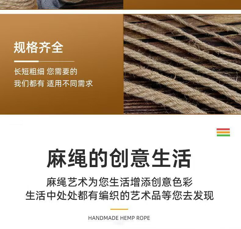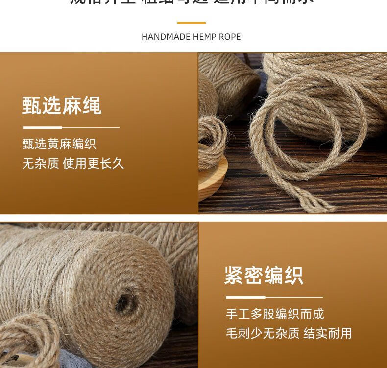 High-quality hemp rope DIY hand-decorated thick and thin hemp rope rope binding rope tag photo clothesline grid decorative mesh hemp rope thick and thin hemp rope cat climbing frame 2mm*50 meters package/group original color hemp rope