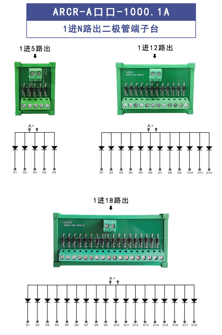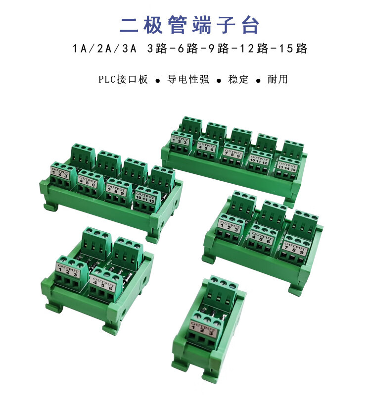 PLC diode terminal block 3-way 6-way 9-way 12-way 15-way 1A 2A 3A 1000V protection terminal block 3A 9-way 9 in 9 out