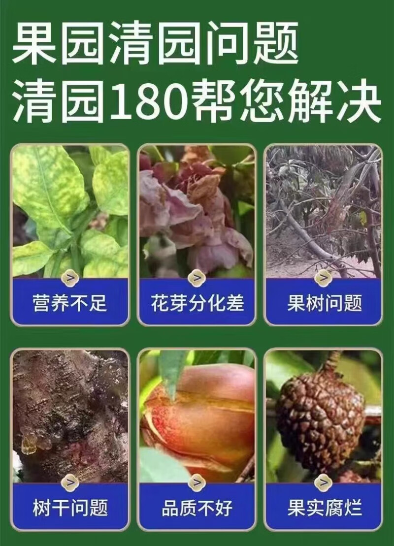 Qingyuan 180 genuine fruit tree special disinfectant orchard garden cleaning agent for peach, plum, grape and orange greenhouse sterilization and insecticide 500g*2 bottles (Qingyuan 180 genuine)