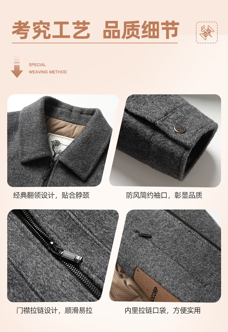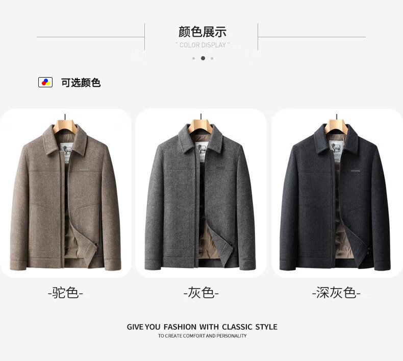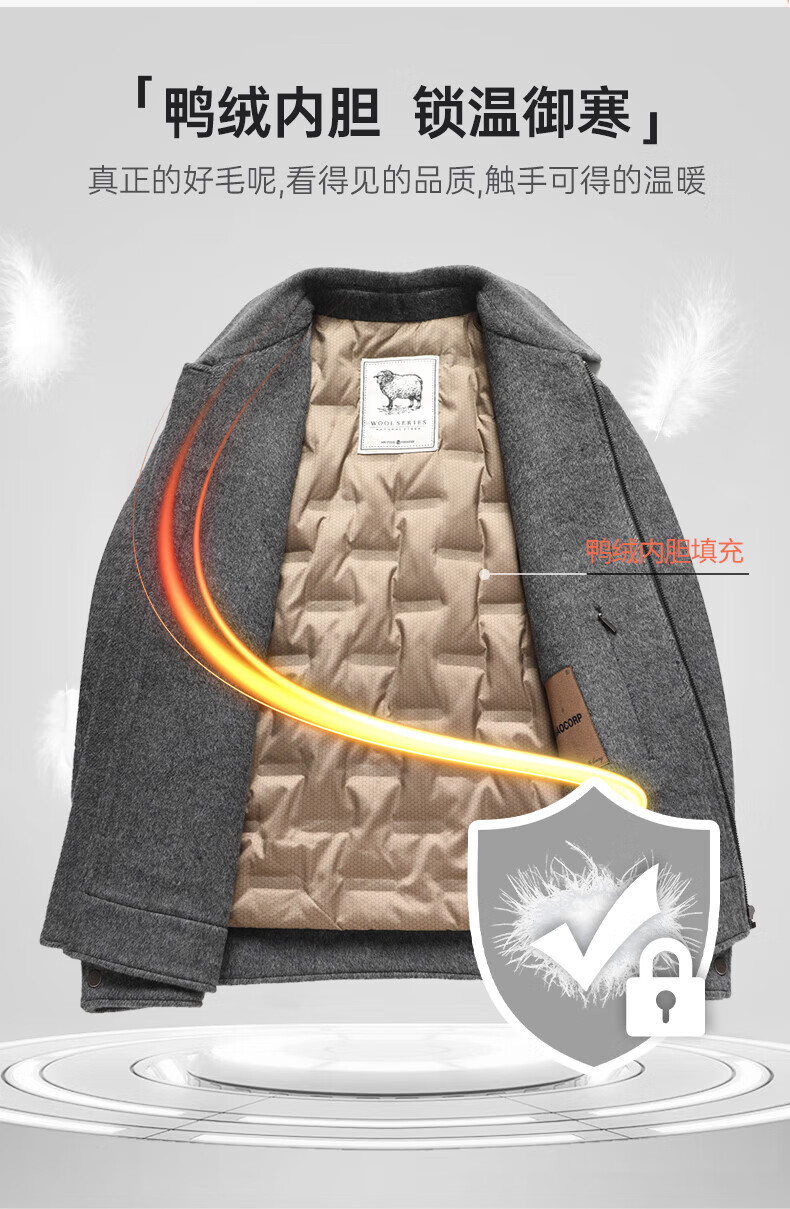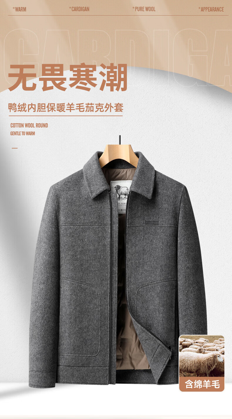 SHANSHAN Shanshan short woolen plus fleece jacket autumn and winter duck down lapel warm skin-friendly top business casual wool jacket camel M /170