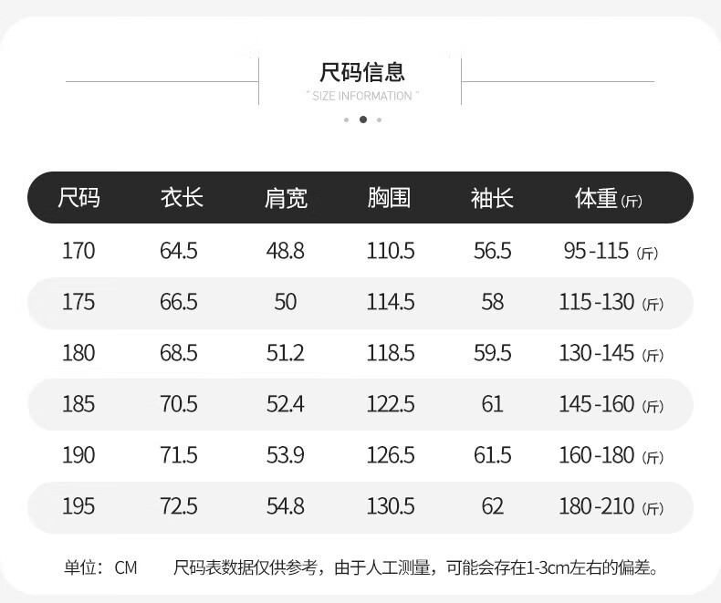 China (cm) 165 / 88-90 170 / 96-98 175 / 108-110 180 / 118-122 185 / 126-130