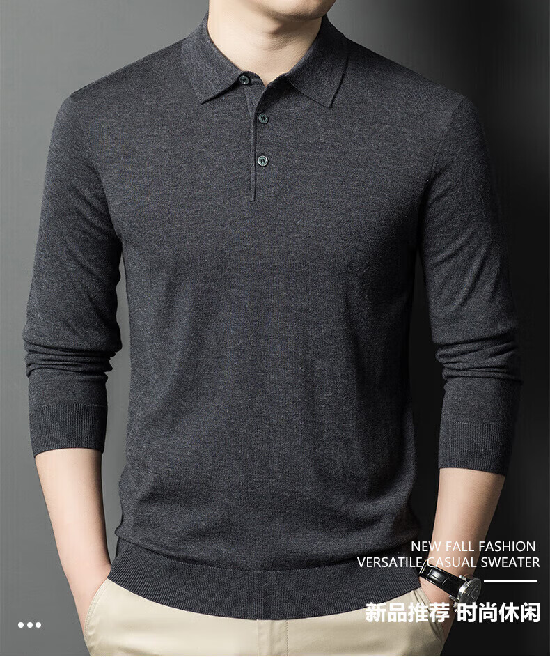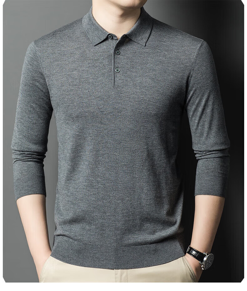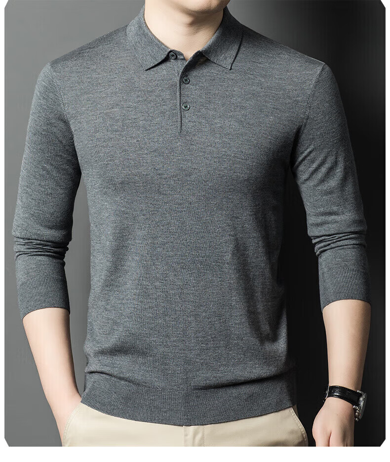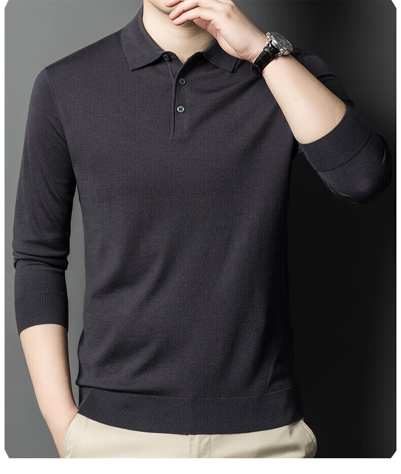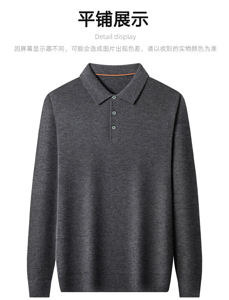 Yiyichun Ordos City-produced mulberry, silk, and silk trendy brand-feel woolen sweaters for men, loose casual lapel bottoming, men's needle, medium hemp gray M 165 100-125Jin Jin is equal to 0.5 kg