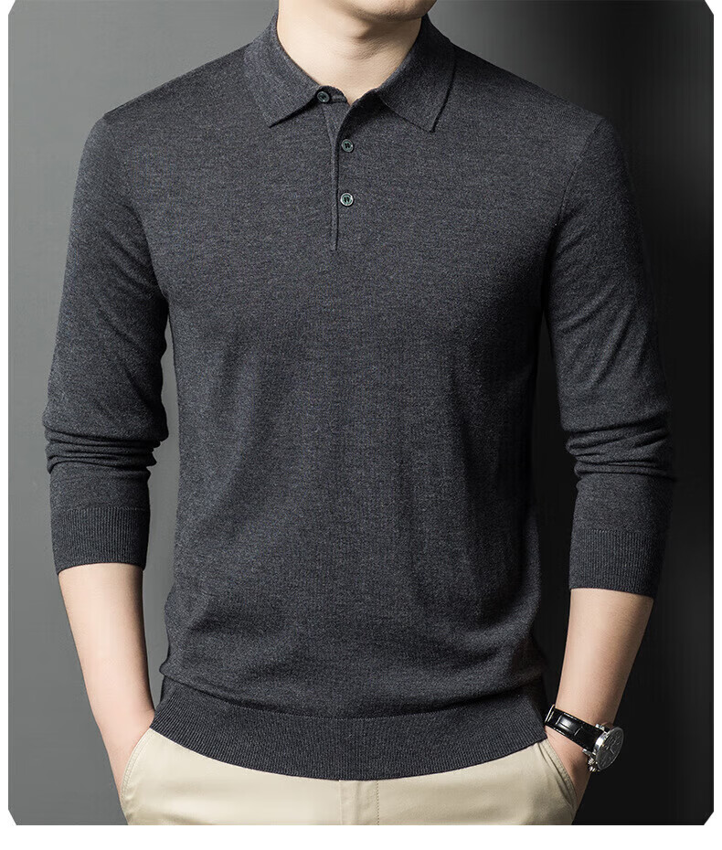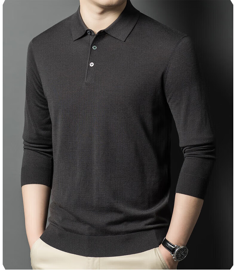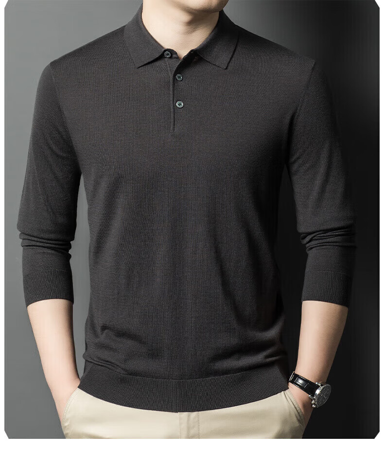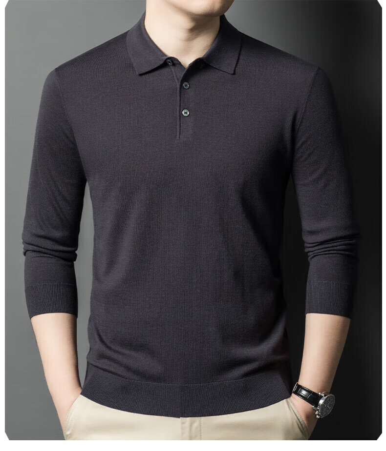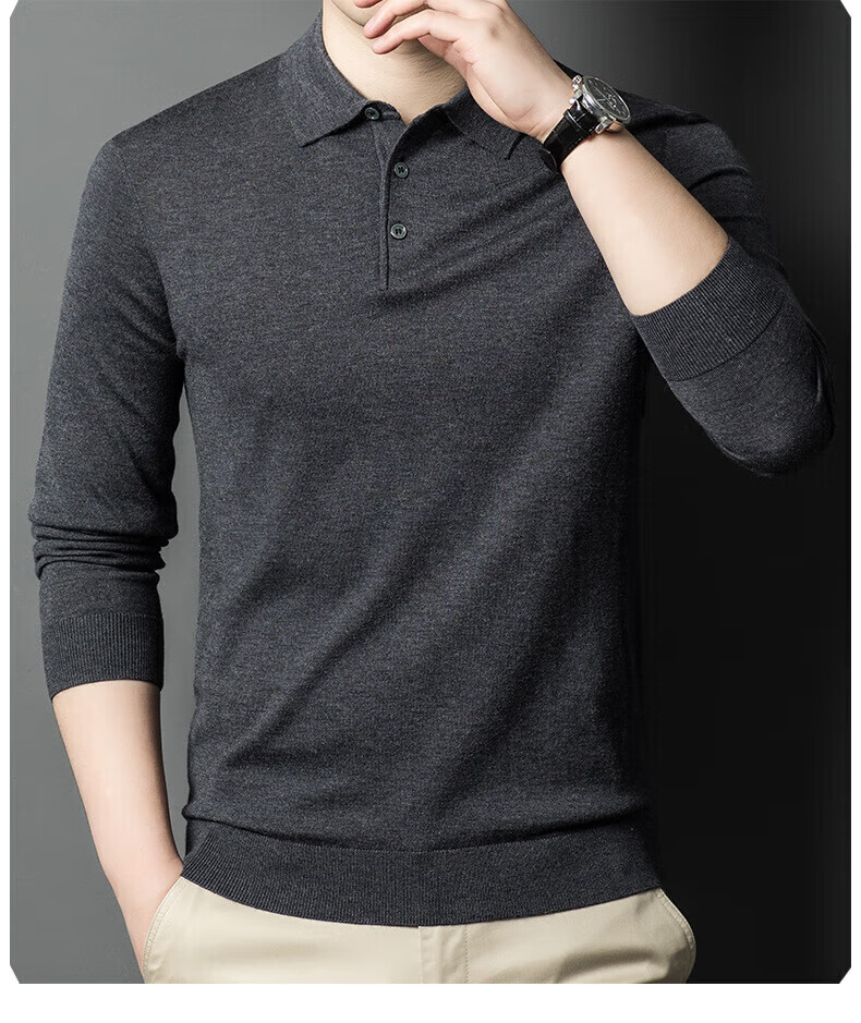 Yiyichun Ordos City-produced mulberry, silk, and silk trendy brand-feel woolen sweaters for men, loose casual lapel bottoming, men's needle, medium hemp gray M 165 100-125Jin Jin is equal to 0.5 kg