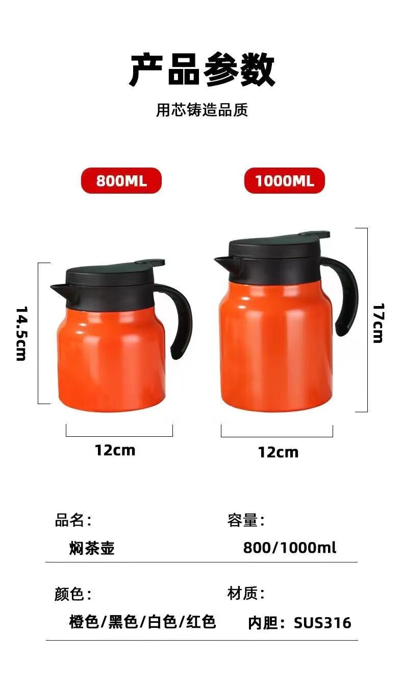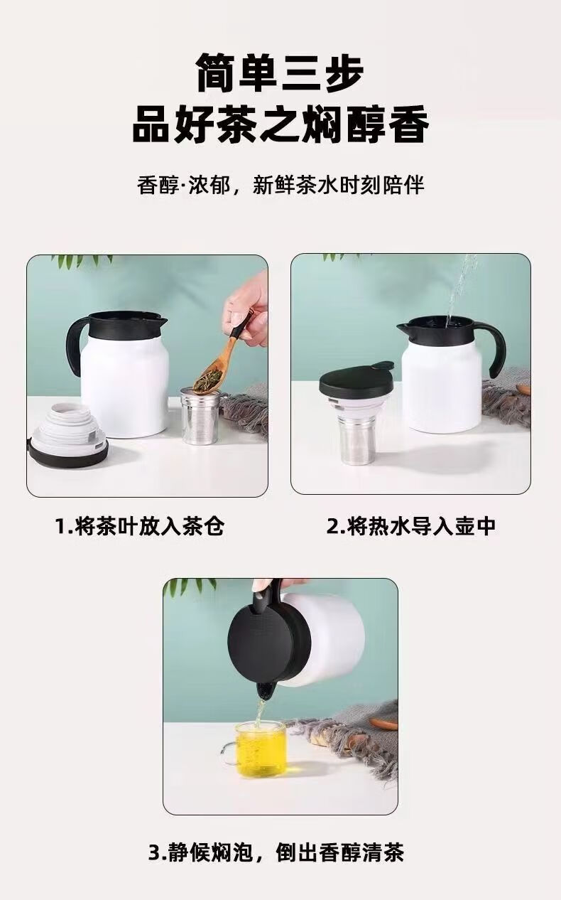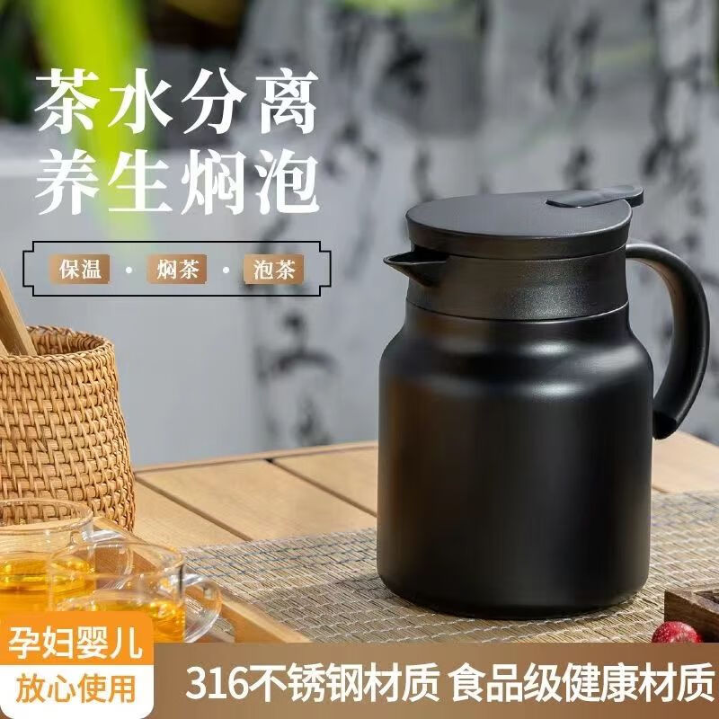 316 large capacity stainless steel stewed teapot home office teapot high-end teapot teapot tea water separation cup black 1000ml large capacity stewed teapot