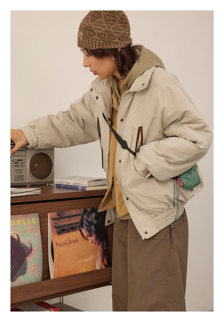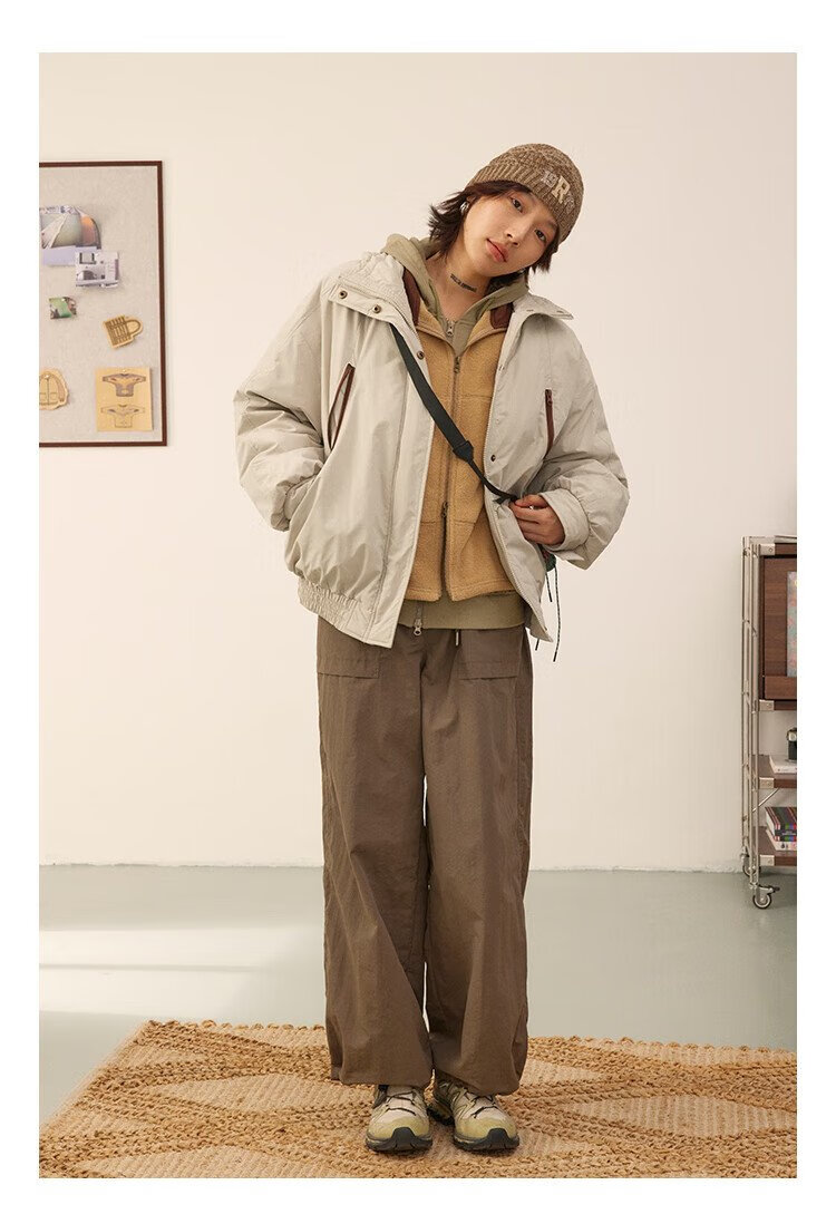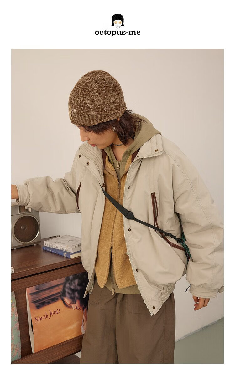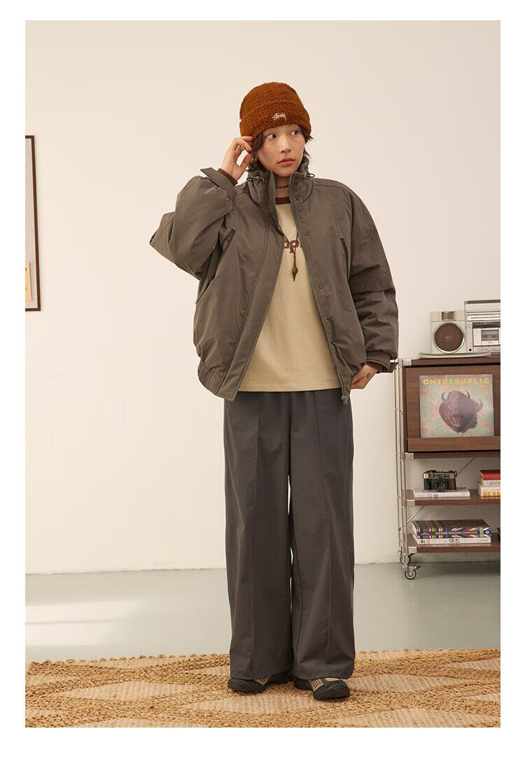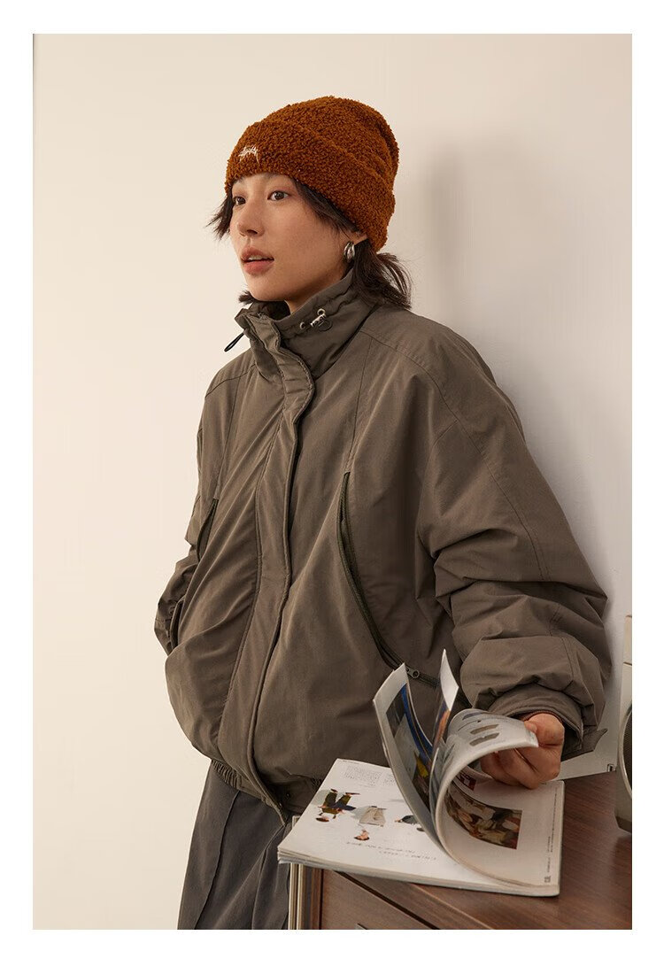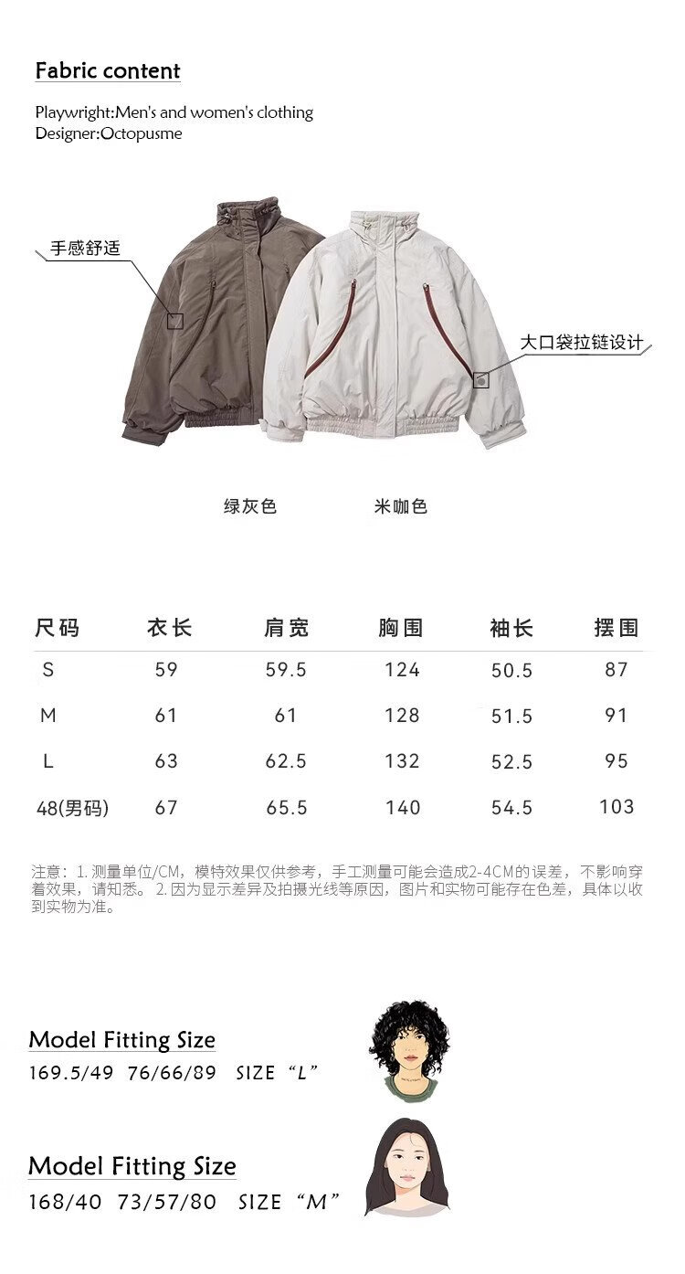 OCTOPUSME Loose, Versatile, Windproof and Warm Original Winter Couple Pocket Jacket, Green Gray L 165/88A