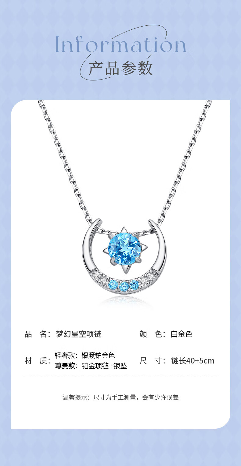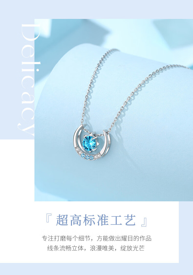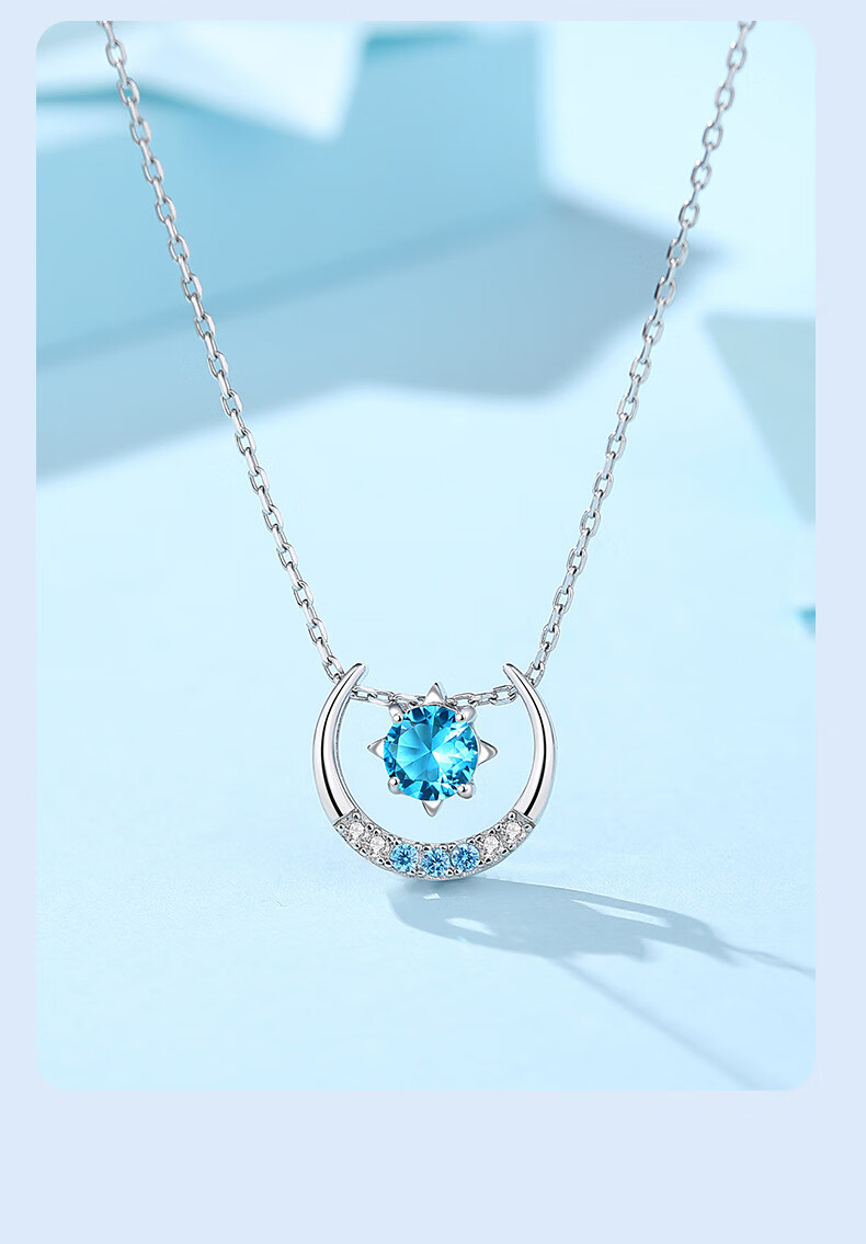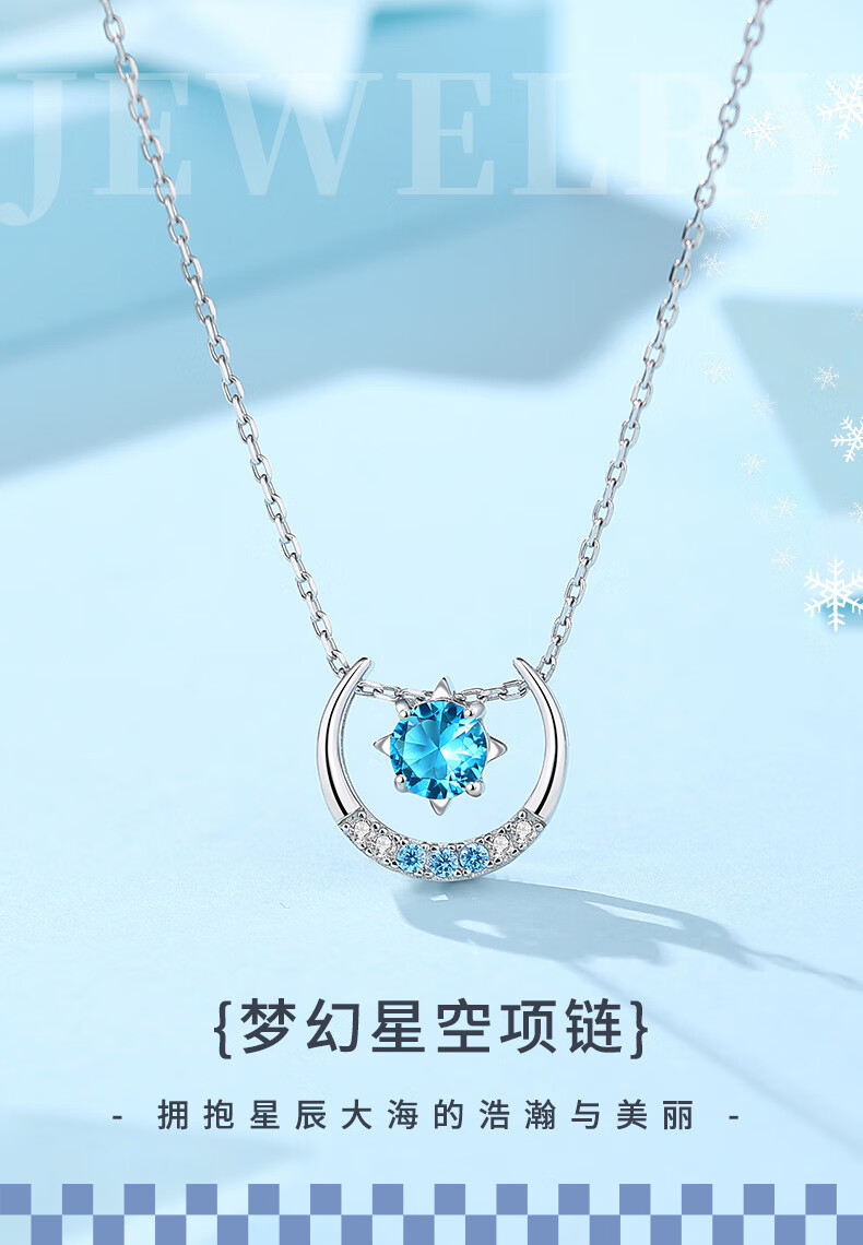 GIEVSZHE Fantasy Starry Sky PT950 Platinum Necklace, Light Luxury Zircon Pendant, Clavicle Chain, Valentine's Day Birthday Gift for Girlfriend, Light Luxury Style - Inlaid with Blue Ocean Heart