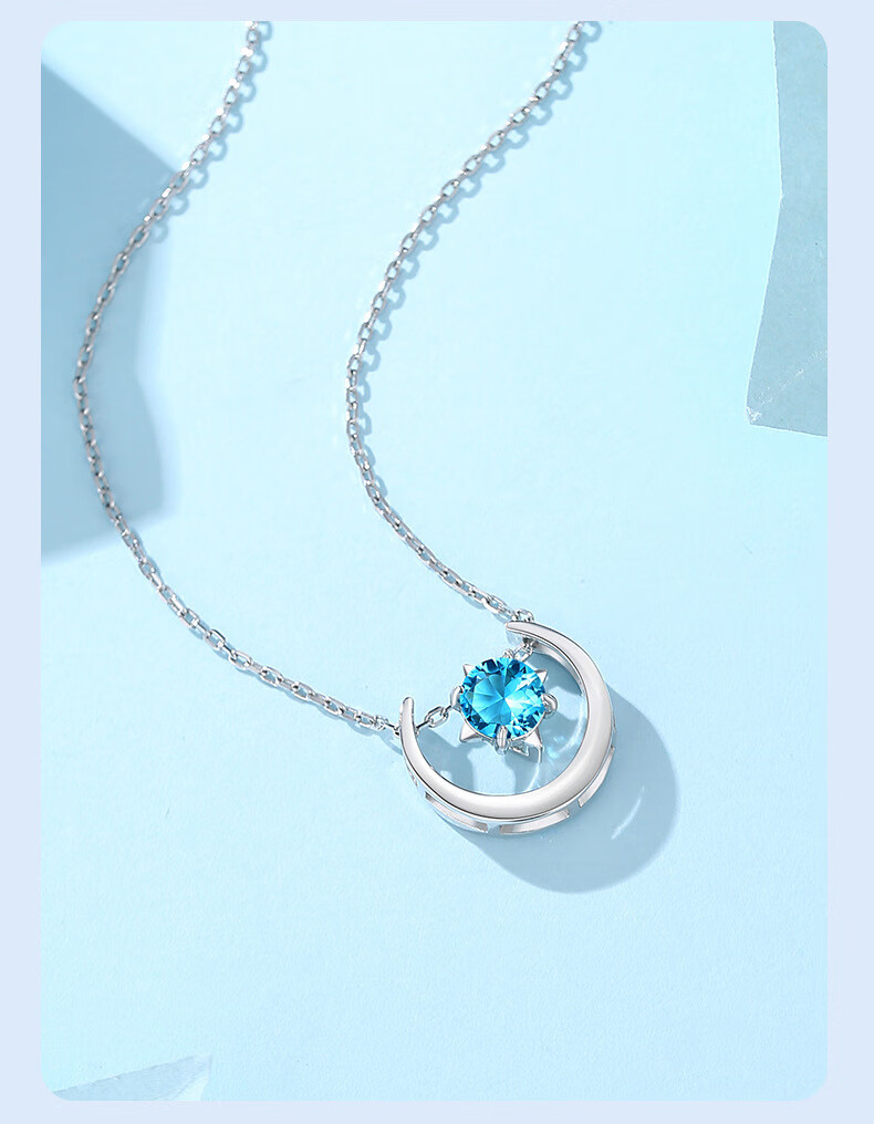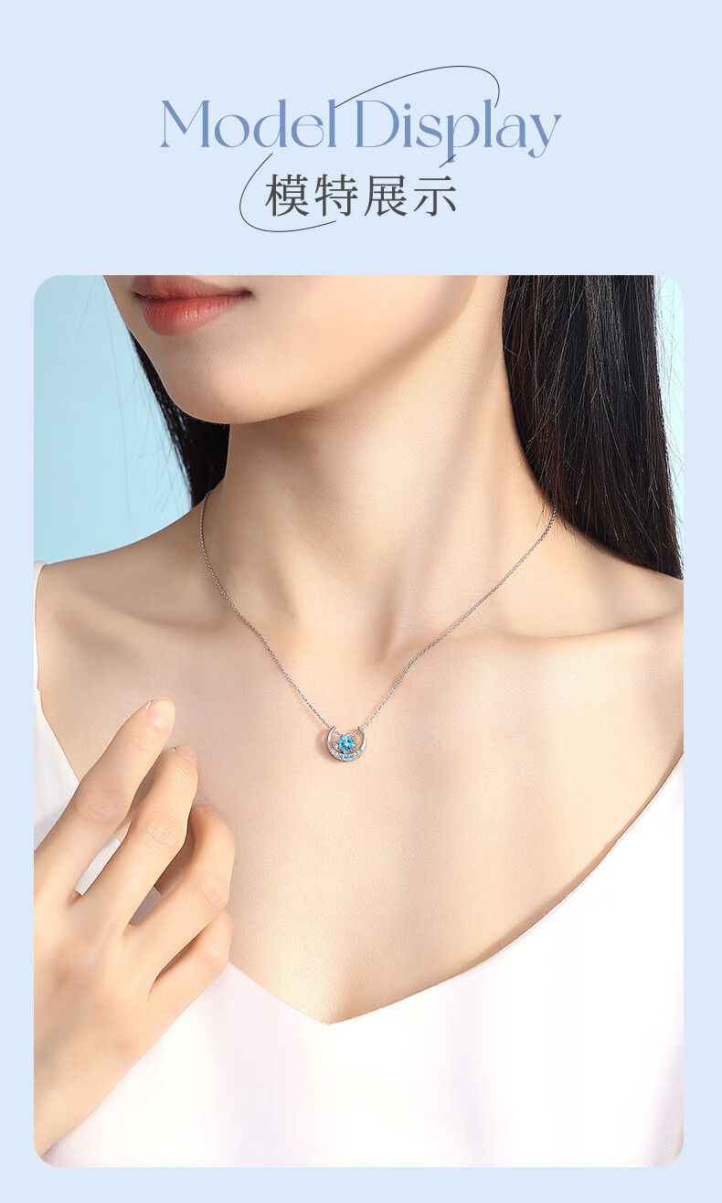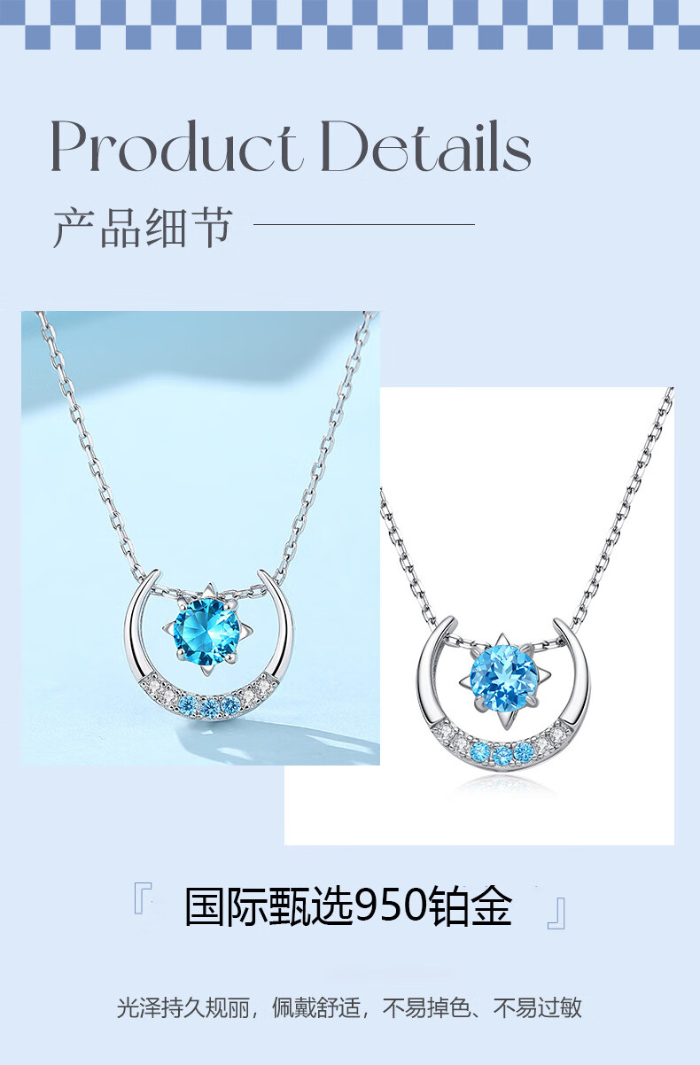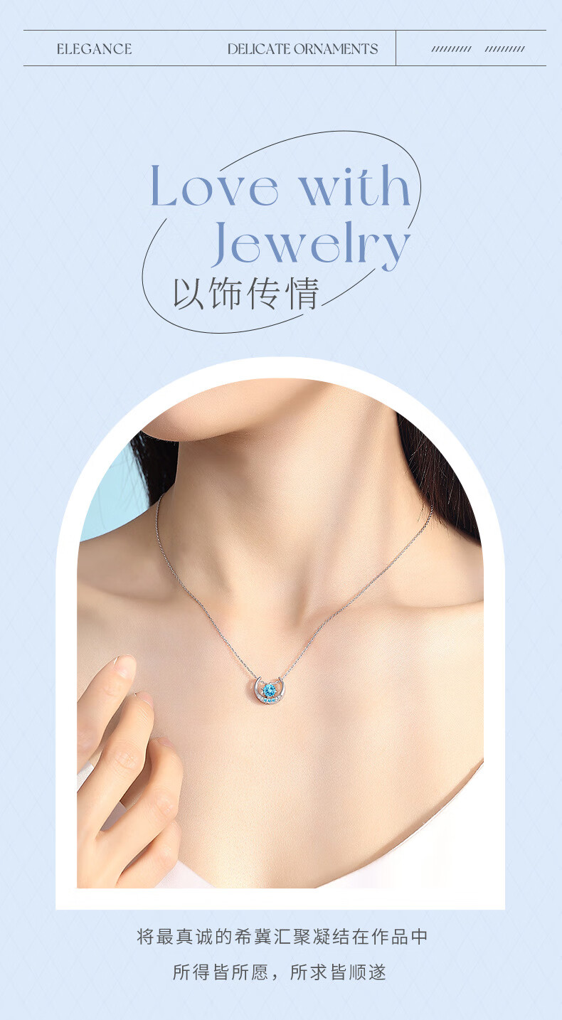 GIEVSZHE Fantasy Starry Sky PT950 Platinum Necklace, Light Luxury Zircon Pendant, Clavicle Chain, Valentine's Day Birthday Gift for Girlfriend, Light Luxury Style - Inlaid with Blue Ocean Heart