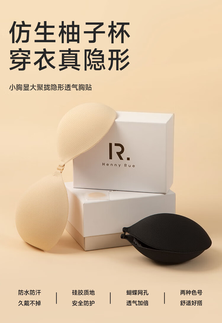 Henny Rue bra stickers for small breasts, push-up invisible breathable bra stickers for summer wedding slings, anti-exposure underwear, deep black S (recommended A cup)
