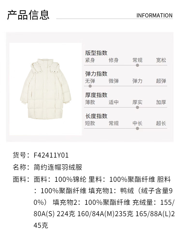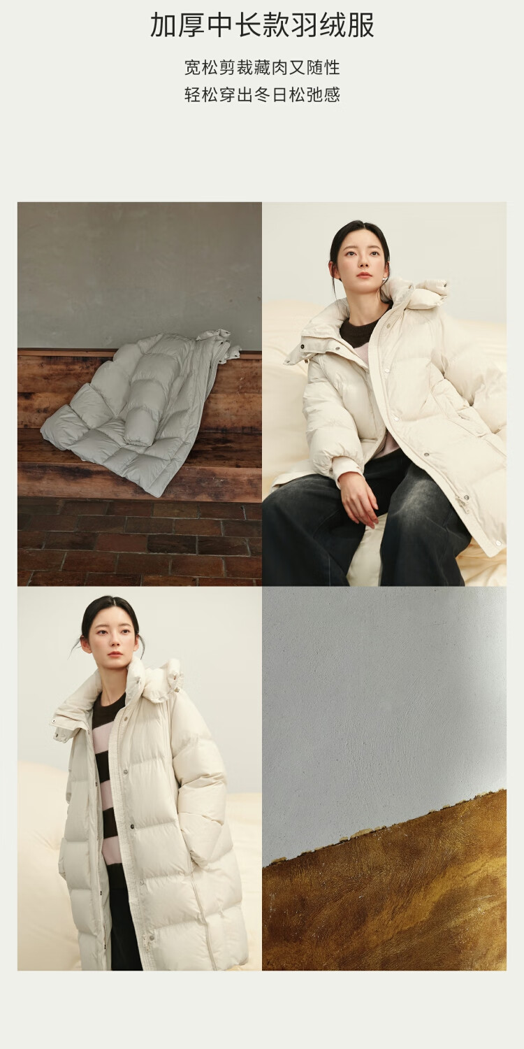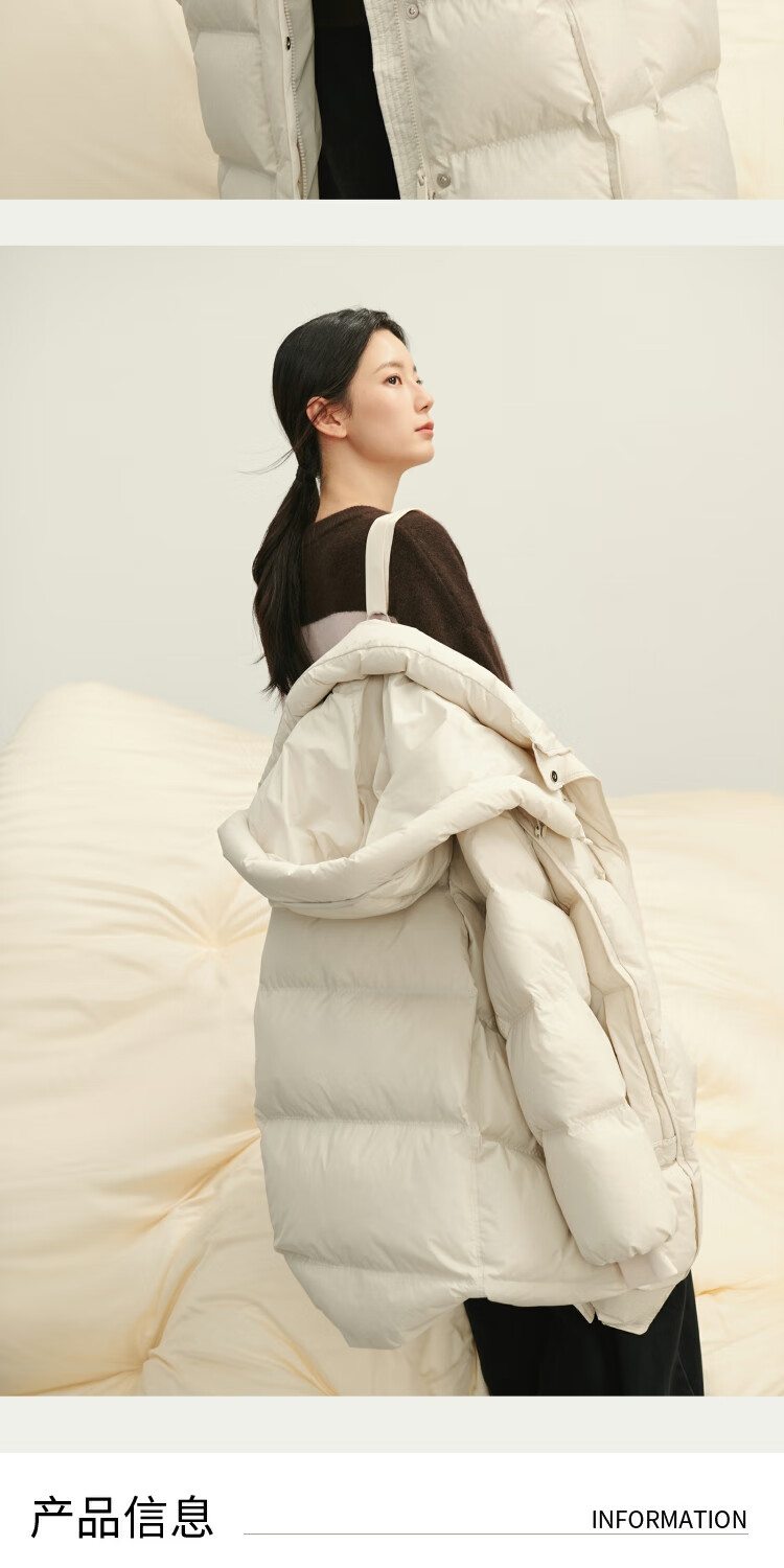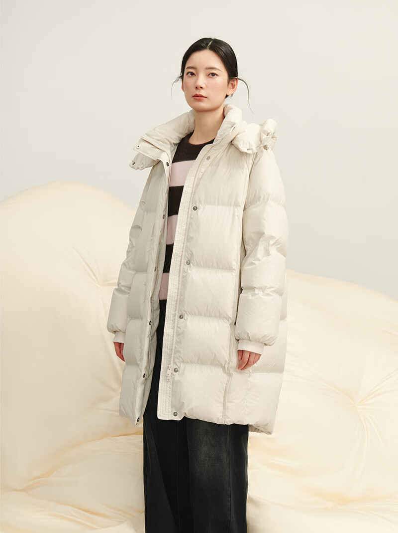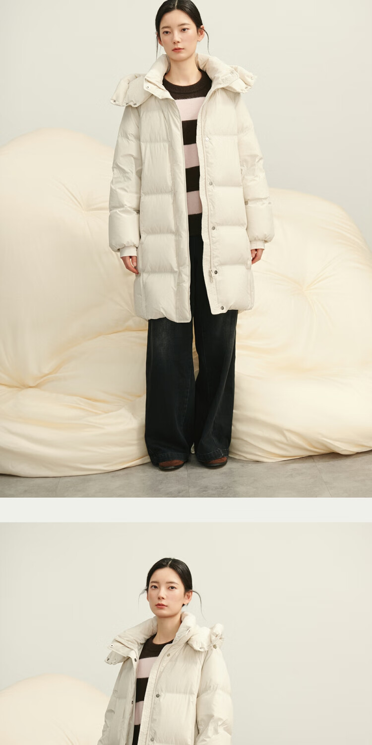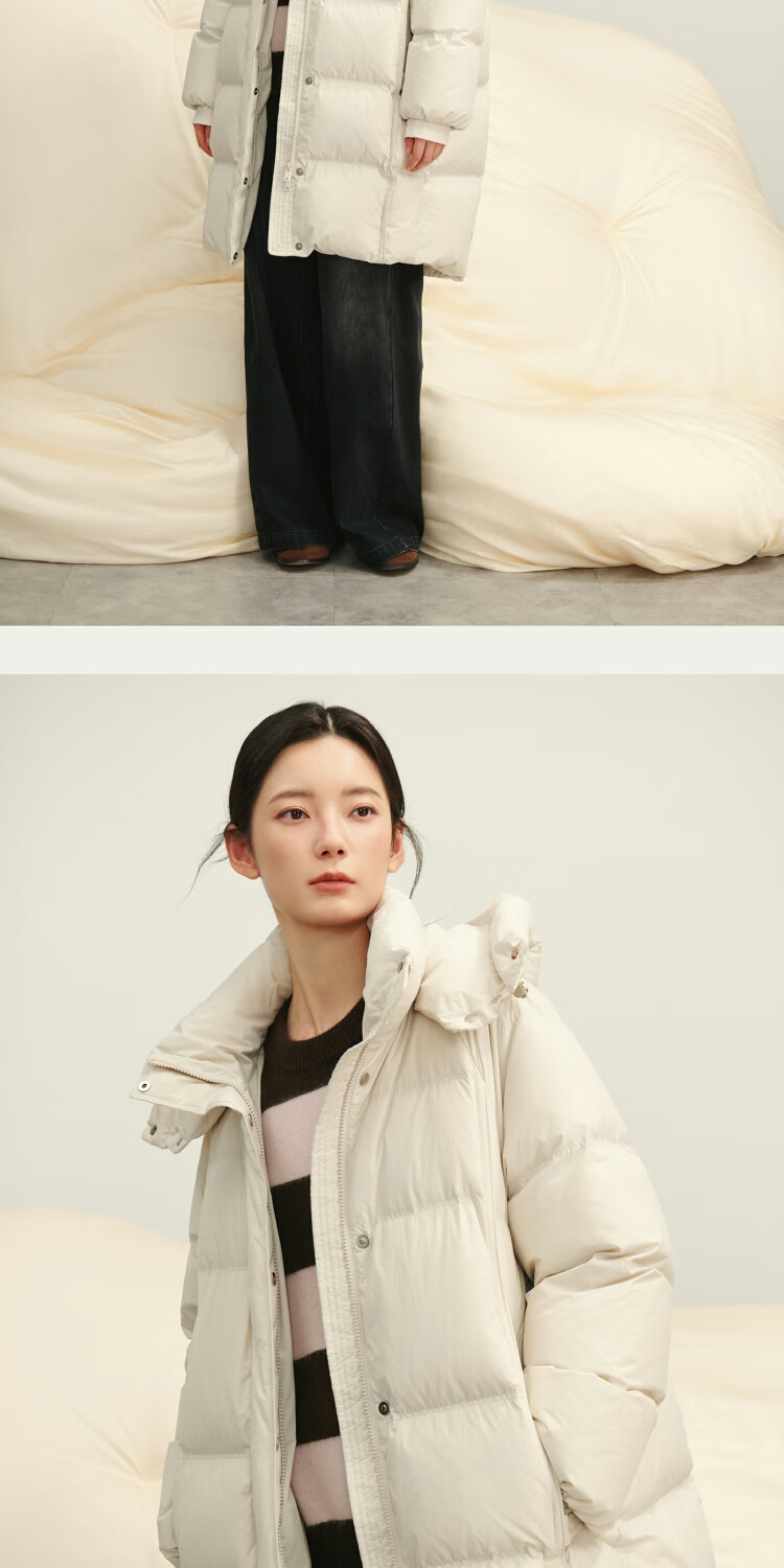 BSIEEBSiEE 2025 winter new thickened and warm mid-length hooded 90-fleece down jacket, apricot S